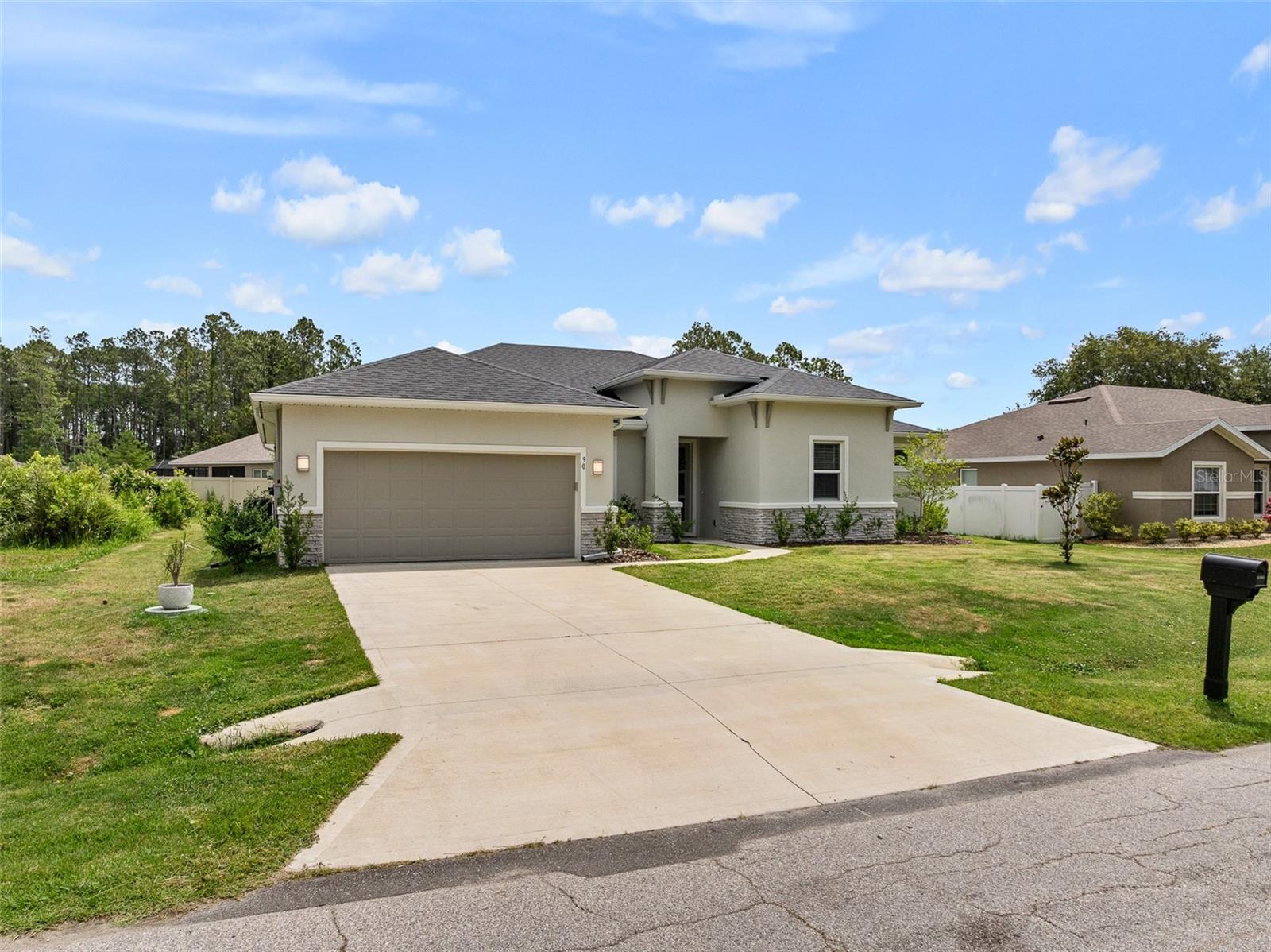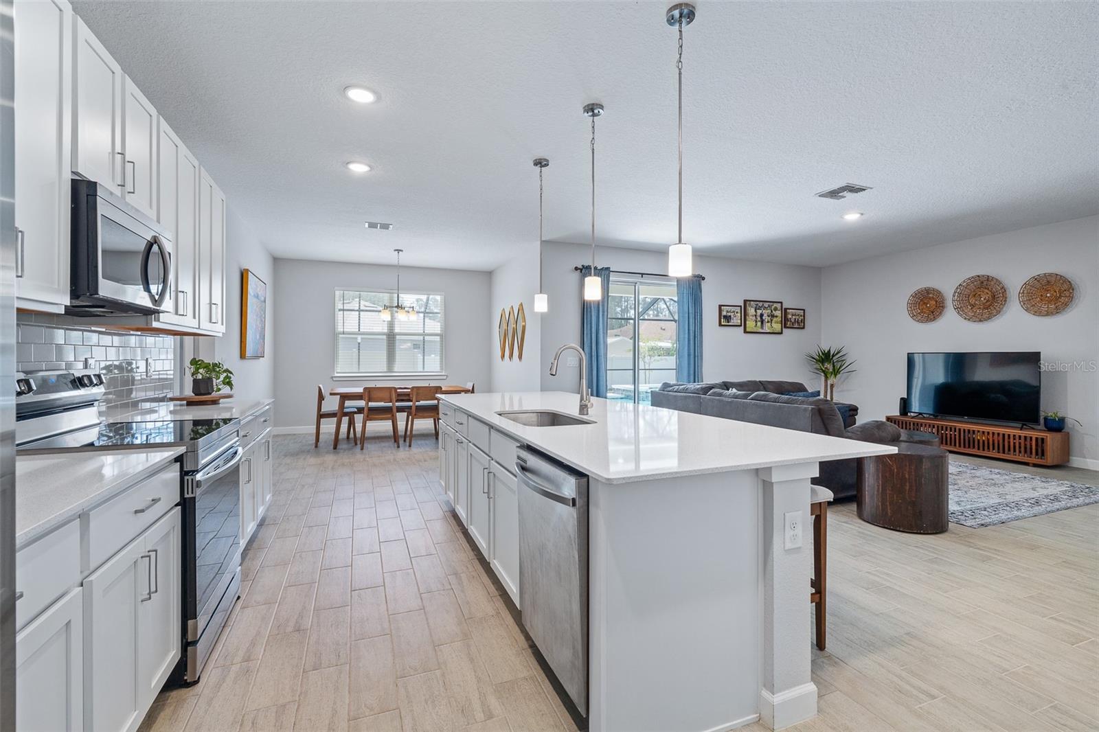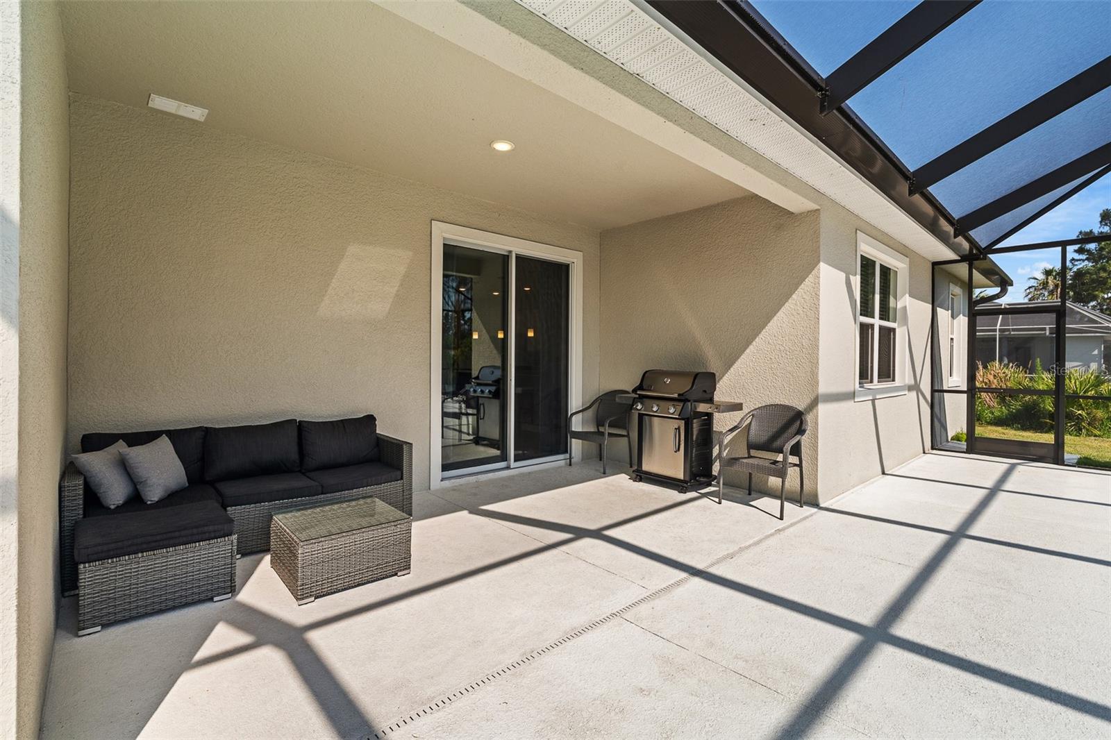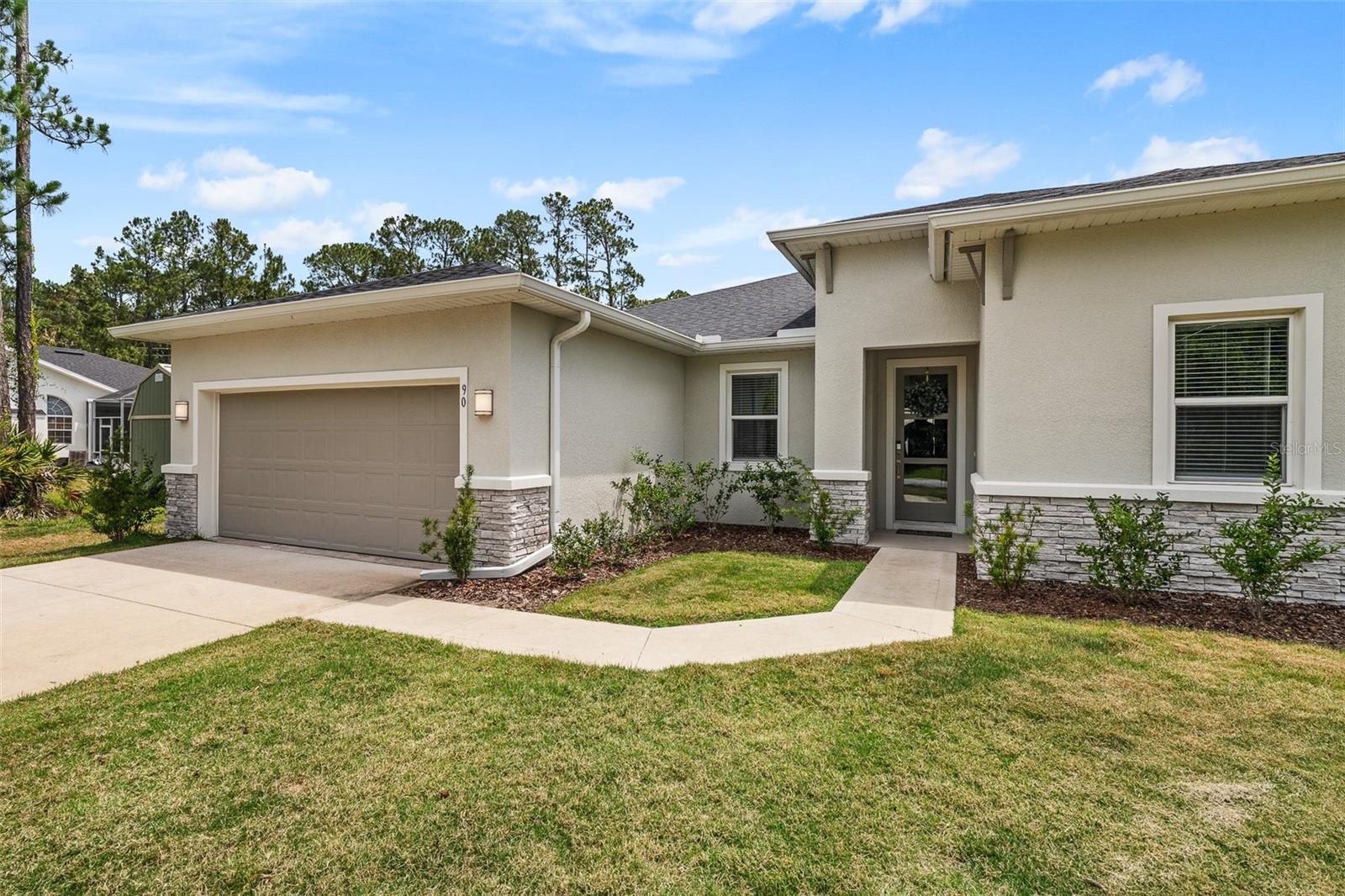 A sua casa dos sonhos aguarda e agora é oferecida a um preço fantástico !!! Você saberá que sua pesquisa é o momento em que você entra nessa casa moderna de tirar o fôlego construída em 2023, completa com uma nova piscina e spa novinhos! Meticulosamente mantido, esta casa de bloqueio de concreto Brite oferece uma espaçosa planta aberta, com mais de 2.300 pés quadrados, que inclui quatro quartos, três banheiros completos e um escritório versátil ou espaço flexível. O design do conceito aberto mostra uma espaçosa área de estar que inclui uma abertura deslizante de grandes dimensões para o Lanai coberto. Um amplo gabinete rastreado envolve a piscina e o spa de água salgada de primeira linha, completa com uma prateleira solar, tornando esta casa perfeita para entretenimento! Notable features include quartz countertops throughout, stainless steel appliances, 42-inch real wood soft-close cabinets, luxury tile plank flooring throughout the entire home, an irrigation system, an oversized garage, and 9'4" ceilings with a tray ceiling in the primary suite. The primary suite also boasts a spacious walk-in closet that is so large it could be mistaken for an additional bedroom. One of the secondary bedrooms even features its own Banho de segurança! Praia.