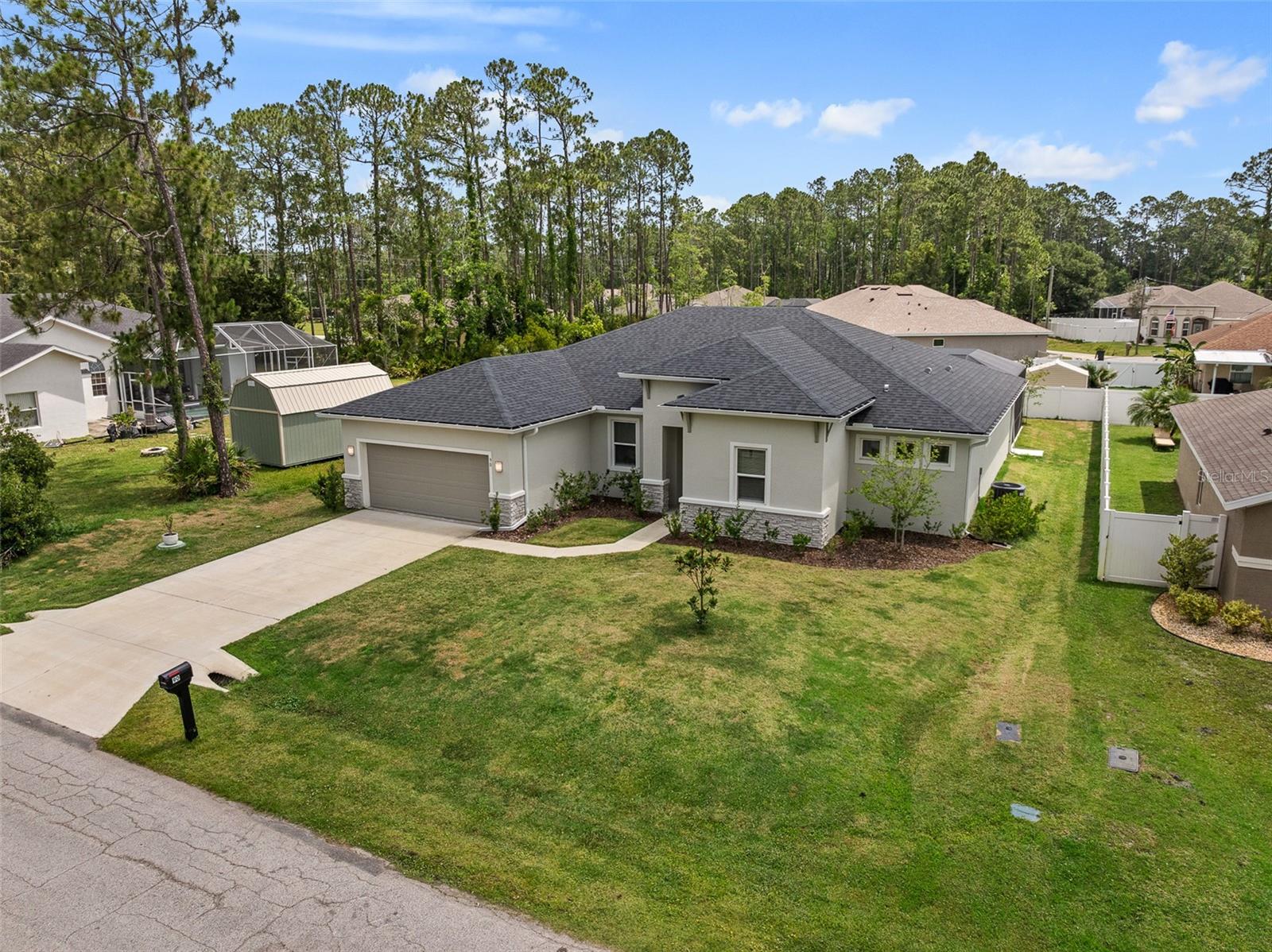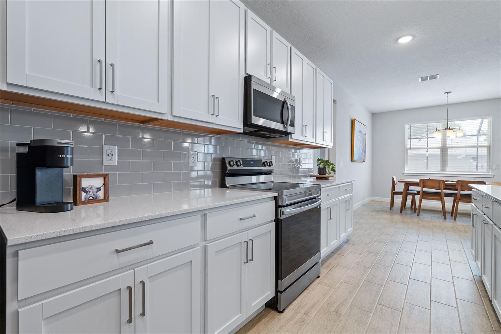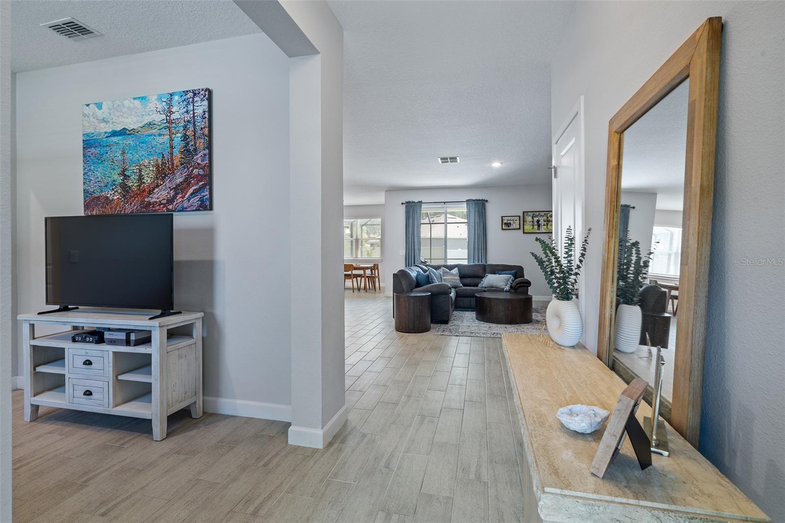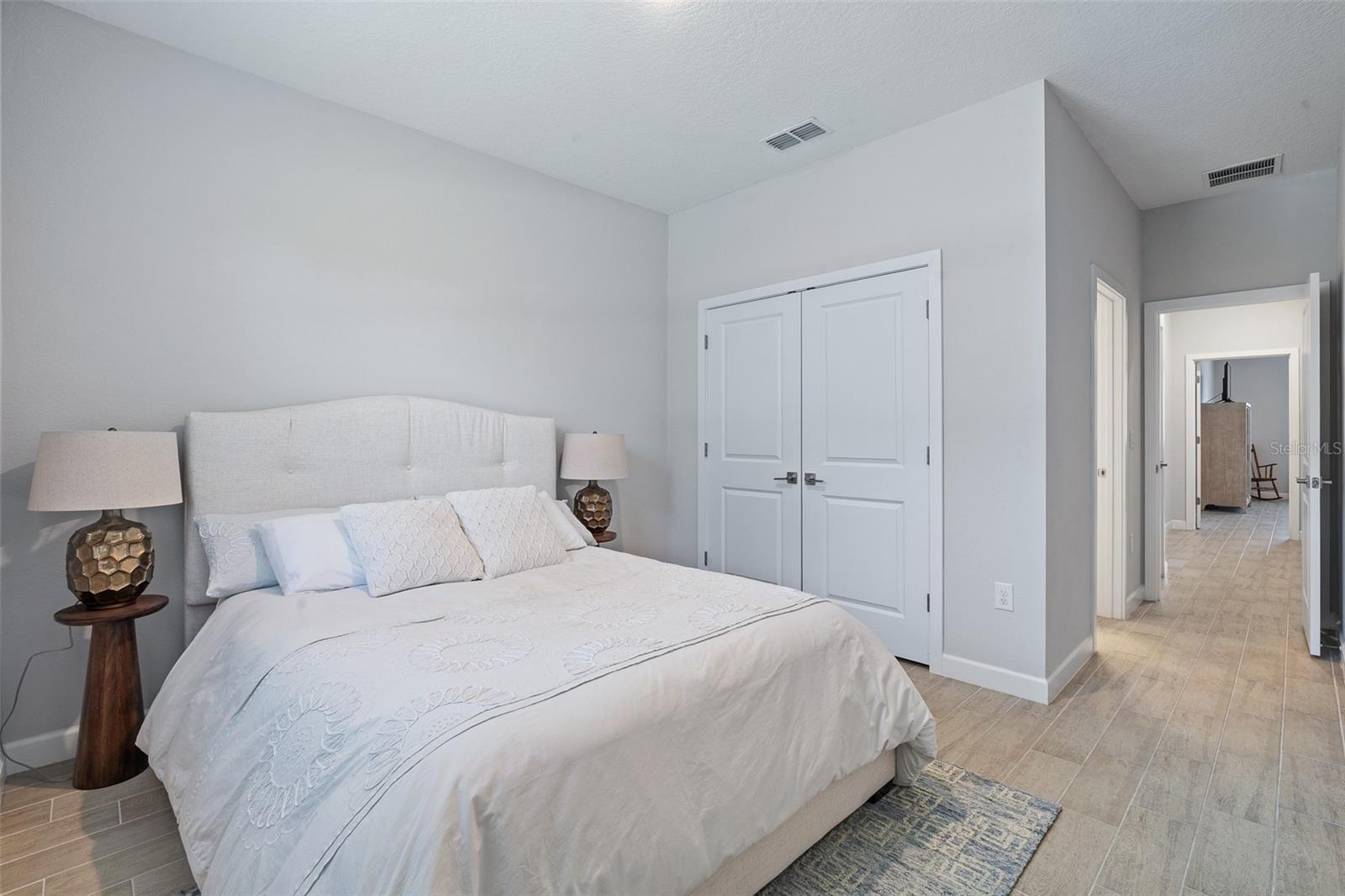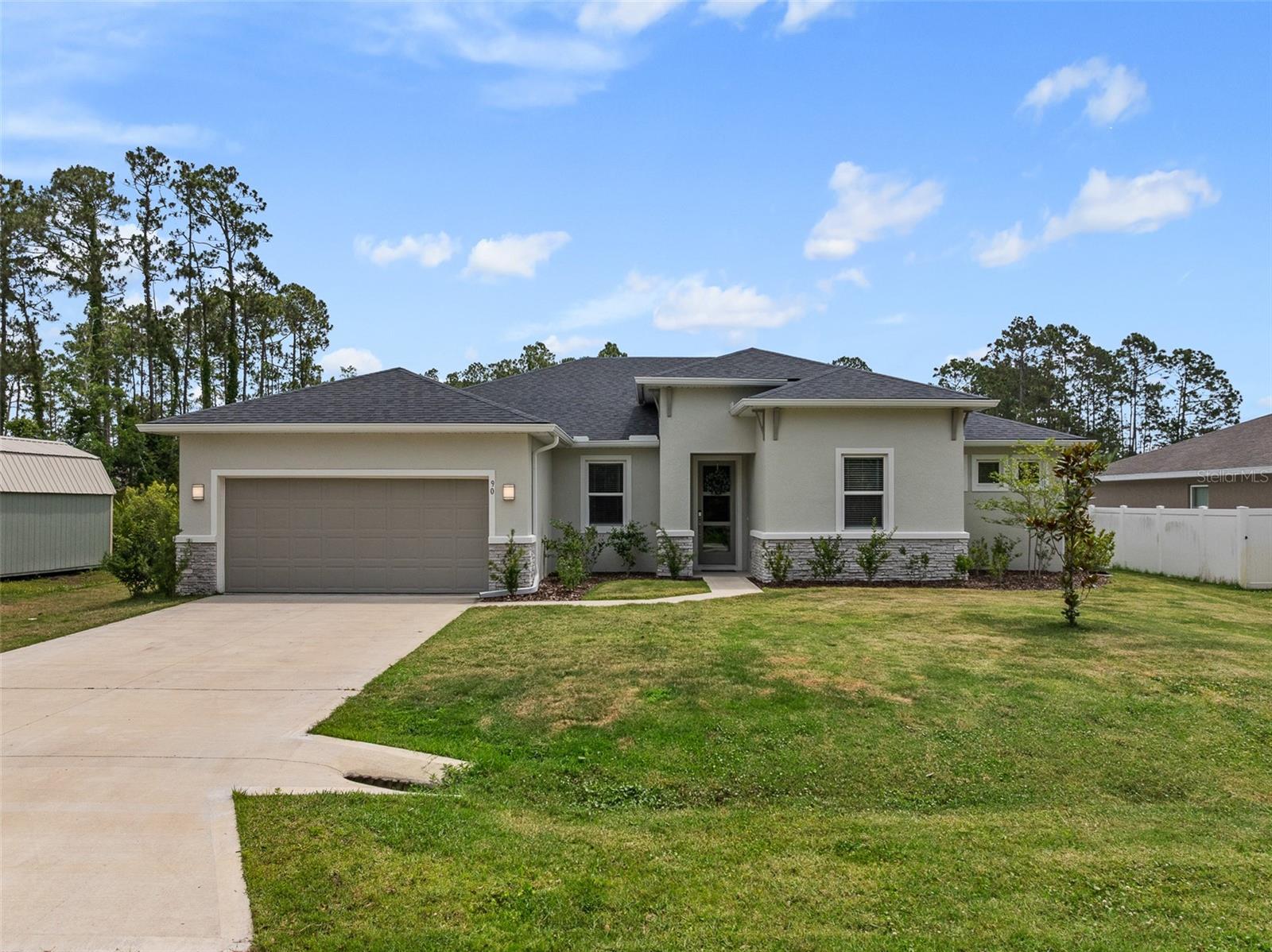 A sua casa dos sonhos aguarda e agora é oferecida a um preço fantástico !!! Você saberá que sua pesquisa é o momento em que você entra nessa casa moderna de tirar o fôlego construída em 2023, completa com uma nova piscina e spa novinhos! Meticulosamente mantido, esta casa de bloqueio de concreto Brite oferece uma espaçosa planta aberta, com mais de 2.300 pés quadrados, que inclui quatro quartos, três banheiros completos e um escritório versátil ou espaço flexível. O design do conceito aberto mostra uma espaçosa área de estar que inclui uma abertura deslizante de grandes dimensões para o Lanai coberto. Um amplo gabinete rastreado envolve a piscina e o spa de água salgada de primeira linha, completa com uma prateleira solar, tornando esta casa perfeita para entretenimento! Notable features include quartz countertops throughout, stainless steel appliances, 42-inch real wood soft-close cabinets, luxury tile plank flooring throughout the entire home, an irrigation system, an oversized garage, and 9'4" ceilings with a tray ceiling in the primary suite. The primary suite also boasts a spacious walk-in closet that is so large it could be mistaken for an additional bedroom. One of the secondary bedrooms even features its own Banho de segurança! Praia.
