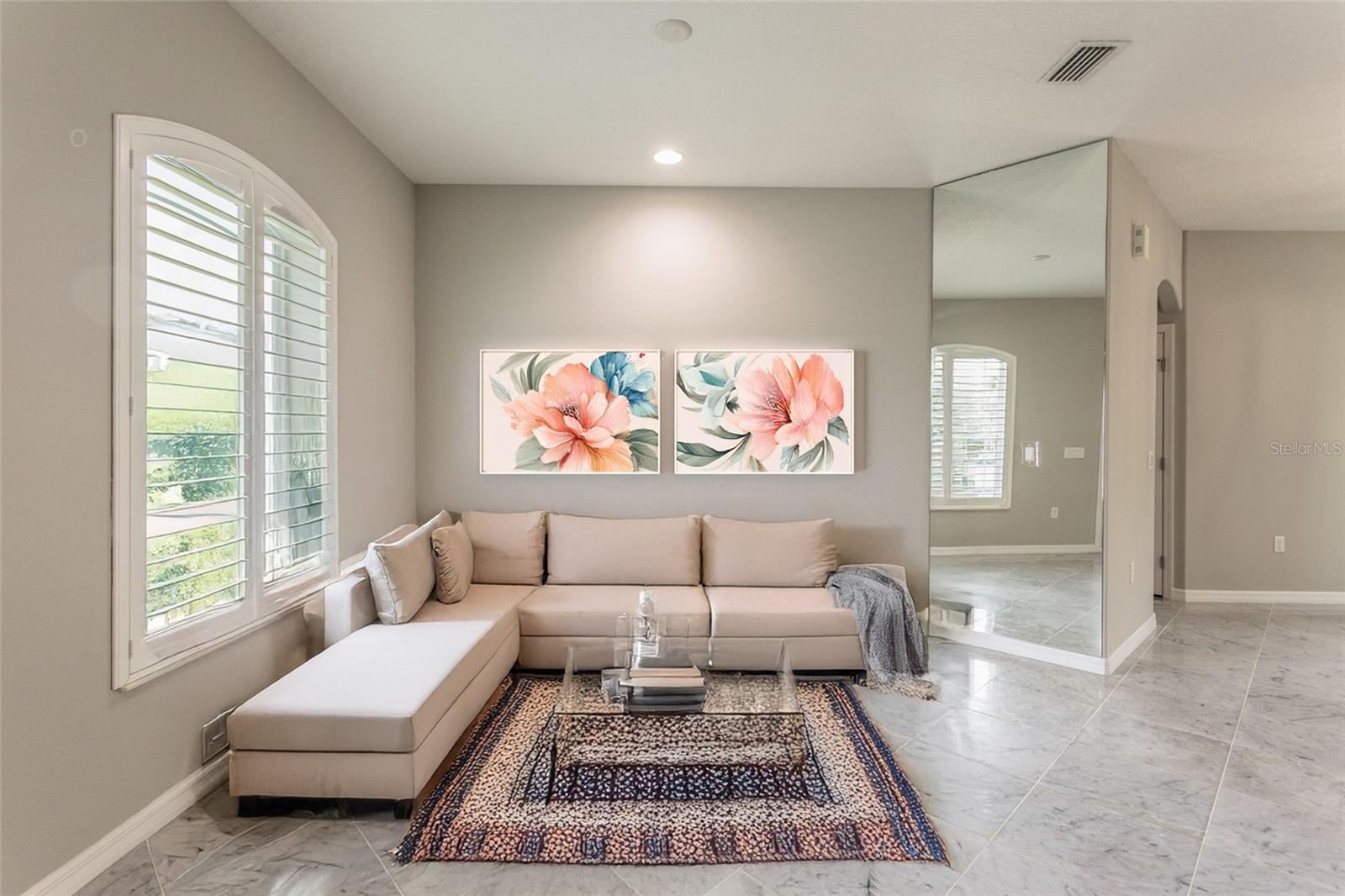 Persianas contra furacões, iluminação, caixa de correio privada, calhas de chuva, calçada, portas de correr