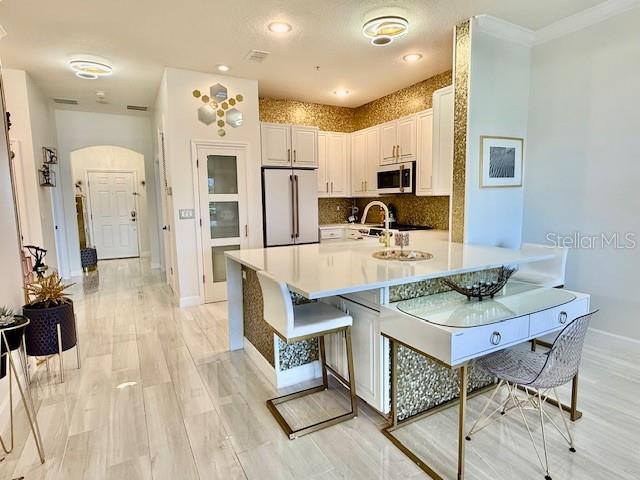 Viva de férias durante todo o ano neste magnífico e elegante e elegante e elegante 3 quartos, 2 banheiros com vistas deslumbrantes do campo de golfe e do oceano da sua varanda de grandes dimensões. Enjoy breathtaking sunrises from your balcony which overlooks the Hammock Beach's world famous Ocean Course designed by Jack Nicklaus.The spacious floor plan had a massive interior design remodel with gorgeous finishes, new stunning elevated ceramic tile throughout, all new appliances, faucets, enlarged shower in master retreat, remodeled bath and vanity with tons of storage and closet space. Backsplash personalizado na cozinha e na parede estética da vida oferece um prazer adicional a esta obra -prima moderna. As vistas deslumbrantes da sua cozinha perfeitamente colocada com ilha de grandes dimensões facilitam o entretenimento e relaxante. Dois quartos adicionais são perfeitos para hóspedes ou um escritório com uma banheira completa e banheira de imersão. A lavadora e a secadora está dentro da unidade, o que simplifica a vida! A unidade fica a poucos passos da piscina da praia e da frente do oceano, centro de amenidade, academia, parque aquático, sala de jogos e café. A Cinnamon Beach oferece tudo o que você precisa para viver como se estivesse de férias o ano todo. Este condomínio é para o casal que quer viver a vida ao máximo em luxo ou alugar sua unidade enquanto eles viajam, pois você tem a oportunidade de alugar a curto ou longo prazo quando se for embora! Aproveite esta unidade inacreditável, com preços à direita e pronta para que você entre e viva no imediato sem manutenção adicional. Basta trazer seus pertences e preparar -se para viver a vida do condomínio dos seus sonhos! Este condomínio tem o preço de venda e atualmente é o condomínio com preços com preços do prédio!