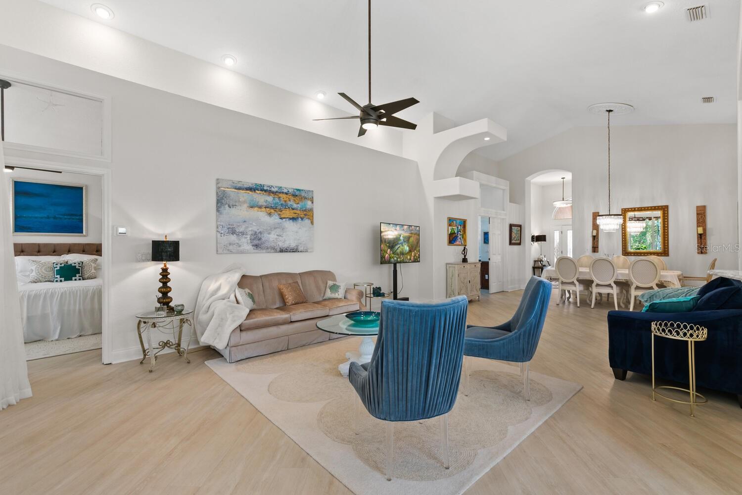 Esta bela casa de estilo Mediterrâneo está situada na comunidade Village View de Grand Haven, oferecendo uma vida fácil com manutenção de quintal incluída. Construído em 2003, esta cama de 3, 3 banheiros, com 1980 pés quadrados, tem mais de US $ 50.000 em melhorias recentes e oferece novas ladrilhos de vinil de luxo, complementando cada quarto, tetos altos abobadados, pintura de interiores, cozinha remodelada, banheiros remodelados, prostitutas de plantações personalizadas, além de novas luminárias e fixações de ventiladores em toda a casa. O quarto principal tem seu próprio banheiro privativo, com lindos ladrilhos no chão e nas paredes e tem uma banheira de imersão, chuveiro e vaidades duplas. A cozinha possui novas bancadas em granito, armários de madeira sólidos brancos e recém-pintados e aparelhos de aço inoxidável. Em 2021-2022, eles adicionaram uma nova geladeira, nova máquina de lavar e secador, novo refrigerador de vinho de temperatura dupla embutida, novo aquecedor de água elétrica de 50 galões e uma nova unidade AC de 3,5 toneladas com uma bomba de calor. Além disso, todo o exterior da casa foi pintado. A cozinha leva à varanda pavimentada e rastreada de grandes dimensões. A tela Lanai foi adicionada em 2021 e está completa com belo toldo, conexão de TV ao ar livre e lareira. Calçada de pavimentação. O quintal é privado. O gramado completo, a manutenção de arbustos e árvores e irrigação é tratado pela comunidade com taxas HOA por apenas US $ 93/mês. Desfrute de uma trilha privada no View View Way que leva ao centro da vila. Grand Haven é uma bela comunidade revestida de árvores, oferecendo vários recursos de comodidade com 2 piscinas, o Café Center Village Plus Tiki Bar, 7 quadras de tênis iluminadas, quatro quadras de pickleball de 5 estrelas, basquete, 3 câmeras de croquet, várias quadras de bola, dois centros de fitness de pilhas, clubes, clubes, clubes!