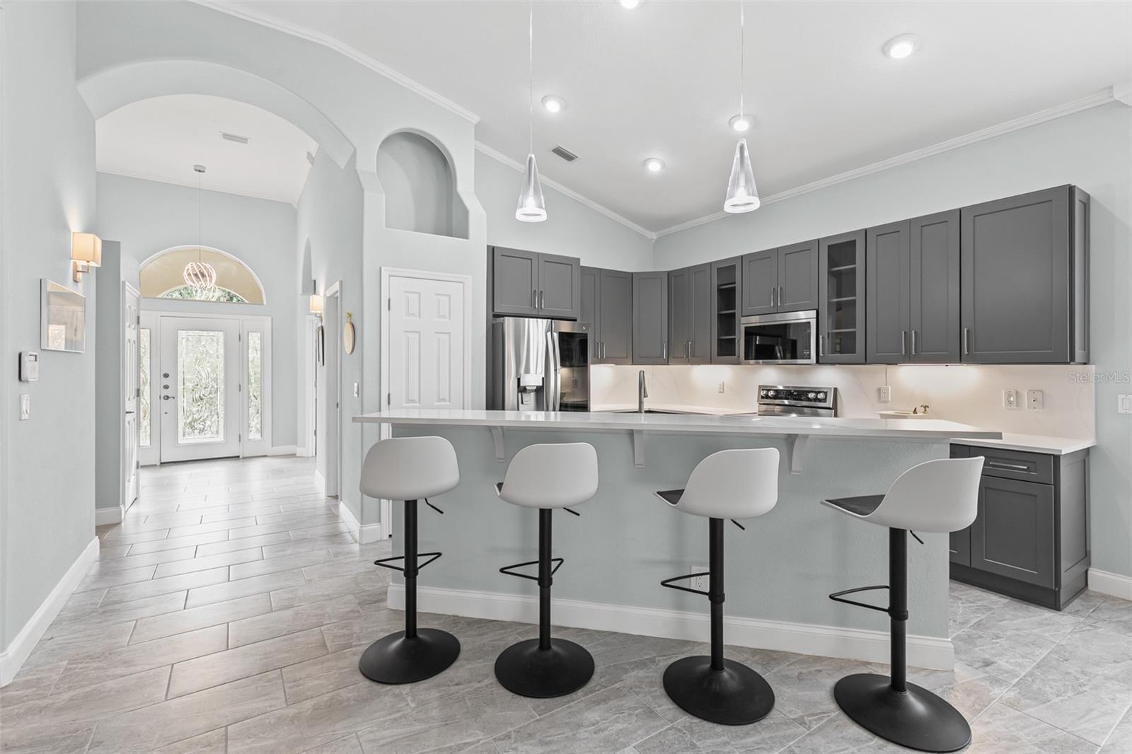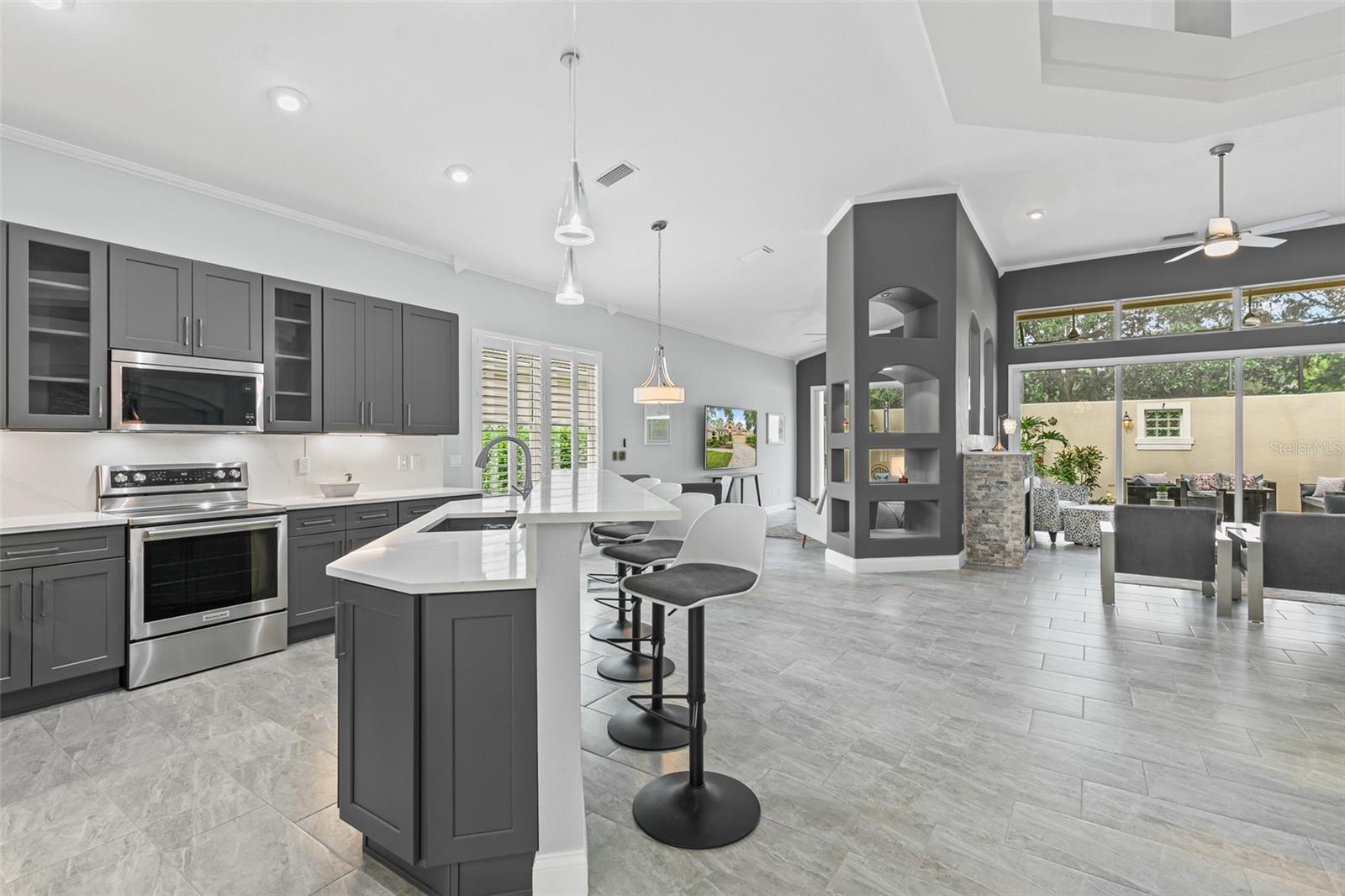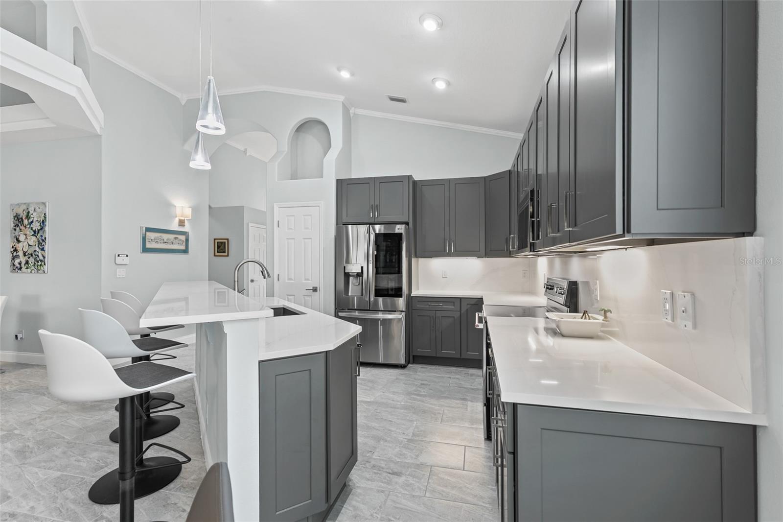 Procurando uma casa contemporânea totalmente renovada em Grand Haven, é isso! Esta casa no estilo mediterrâneo de 2 camas de 2 banheiros, com 2093 pés quadrados, mostra uma variedade de atualizações modernas e elegância atemporal para conforto e estilo. Ser apreciado como uma segunda casa, com uso mínimo, mantém sua condição intocada. Melhorias recentes em 2022 aprimoram o apelo e a funcionalidade geral da casa, garantindo uma experiência pronta para mover-se. A tinta interna (2022) apresenta (2022) (paredes, rodapés, portas, acabamentos e tetos), pisos de ladrilhos de porcelana elegantes por toda parte, luminárias atualizadas, lustres e ventiladores de teto caçadores com controles remotos. A cozinha do chef é uma peça de exibição, apresentando uma grande ilha, bancadas de quartzo e backsplash, armários de agitadores, uma pia composta de quartzo, novos acessórios e complementados por applicadores de KitchenAid (2024) fogão elétrico, lava -louças e microondas. Refrigerador LG 2021. A área de estar gira em torno de uma atraente lareira a gás de pedra com uma manta de quartzo. Ambos os banheiros possuem novas vaidades, espelhos, acessórios e banheiros. O terceiro quarto com portas francesas foi usado como escritório. O armário principal do quarto é aprimorado com armários da Califórnia (2023). Atualizações adicionais incluem abril (2022) Aquecedor de água quente, piso polyaspartic na garagem e lanai. A garagem também é equipada com armários de armários da Califórnia (2024). O A/C (2024) é uma eficiência de alta eficiência com um inversor de velocidade variável e termostato de Wi-Fi inteligente e também 2024 externo recém-pintado e lavado com pressão. 2025 Títulos de cupim transferíveis de 10 anos. Manutenção mensal de US $ 81. Grand Haven oferece agências mundiais, incluindo piscinas comunitárias, tênis, fitness center, restaurantes e um campo de golfe de 18 buracos Jack Nicklaus com o Clubhouse, Pro Shop and Restaurant. A associação é opcional. Casa também disponível para locação. ML#FC312828