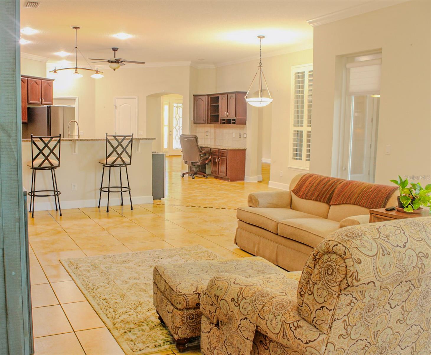 Esta casa não é a única coisa bonita nesta propriedade – a própria comunidade de Grand Haven é um empecilho! Você vai adorar estar a menos de 15 minutos da praia, das lojas, dos restaurantes e de tudo o que Palm Coast tem a oferecer. A única coisa melhor do que a localização é voltar para casa neste retiro de mais de 3.000 pés quadrados que foi claramente projetado para conexão e relaxamento. Vida ao ar livre, do seu jeito. Saboreie seu café da manhã no aconchegante pátio da frente enquanto conversa com vizinhos amigáveis ou retire-se para o quintal para um pouco de paz e privacidade. A área de estar ao ar livre é perfeita para grelhar, se divertir ou relaxar – e com o toque de um botão, a tela retrátil oferece sombra ou sol sob demanda. No interior, o espaço brilha igualmente. Com quatro quartos, três banheiros completos e tetos altos com sancas, esta casa combina elegância com vida fácil. A suíte principal é o seu refúgio de spa pessoal - com banheira de hidromassagem profunda, chuveiro separado, pia dupla com bancada de granito, armários de madeira escura e não um, mas dois armários espaçosos. Projetado para reuniões A cozinha é o sonho de qualquer cozinheiro, oferecendo eletrodomésticos de aço inox, forno duplo, cooktop de vidro e até adega refrigerada. O porcelanato flui pelas principais áreas de estar – salas de jantar, família e de estar – unindo a casa com um estilo simples. Dois quartos compartilham um banheiro inteligente Jack-and-Jill com pias separadas, enquanto o quarto quarto e o banheiro próximo formam a suíte de hóspedes perfeita. Espaços bônus que elevam seu estilo de vida. Um escritório bem iluminado com piso de madeira e prateleiras embutidas oferece a configuração ideal para trabalhar em casa (ou refúgio de hobby). A enorme garagem para dois carros com piso pintado oferece armazenamento e espaço extra para seus brinquedos da Flórida. Esta não é apenas uma casa – é um estilo de vida. Grand Haven oferece comodidades em estilo resort, trilhas para caminhada, golfe e uma atmosfera comunitária acolhedora que faz com que todos os dias pareçam férias.