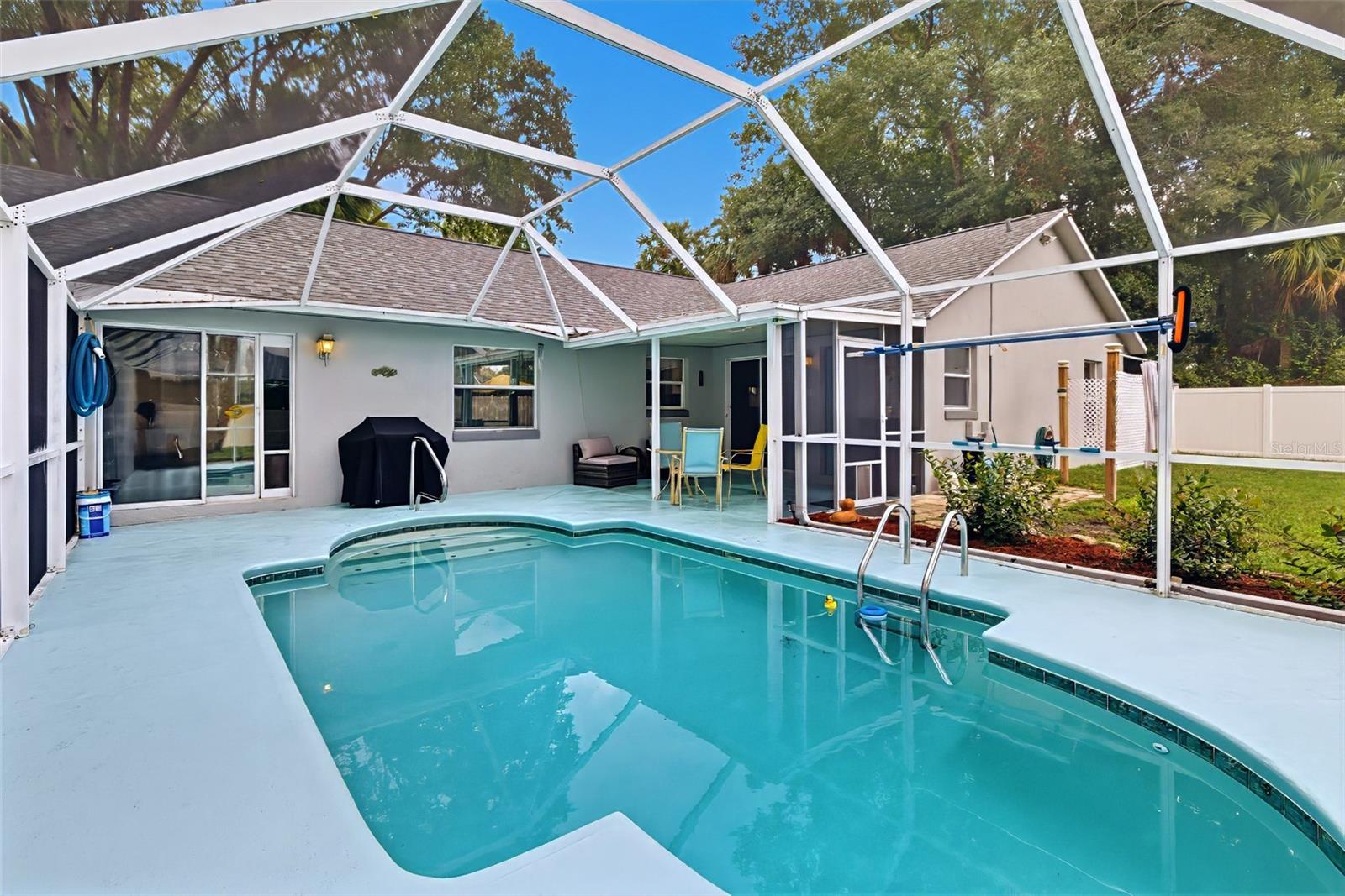 Situado em um lote de canto desejável, esta casa de piscina de blocos de concreto oferece privacidade, funcionalidade e diversão sem fim ao ar livre - tudo em uma comunidade sem HOA. Com um exterior recém -pintado, uma piscina brilhante e uma planta baixa, esta casa combina conforto com o estilo de vida da Flórida. Paleta de cores agradável em toda a casa. Três quartos, 2 banheiros permitem muito espaço para familiares e amigos. A suíte primária apresenta controles deslizantes para a piscina, um generoso closet, um banho no estilo de spa com vaidades duplas, banheira de imersão e chuveiro. Separe o quarto da família com acesso à piscina - perfeito para entretenimento. Cozinha de cozinha com aparelhos mais novos (2023), área de jantar separada adjacente com vistas para o quintal. Pisos de vinil e ladrilho para facilitar a manutenção. Lavanderia dentro de casa (não na garagem). Duas garagens de carros com tela deslizante, permitindo projetos de clima frio ou apenas assistindo ao bairro. A piscina ressurgiu em 2023; Motor, bomba e temporizador com menos de 3 anos de idade. Deck da piscina recentemente repintou para um visual novo e convidativo. Grande pátio cercado com cerca de privacidade de vinil de 1,80 metro-perfeita para animais de estimação e brincadeiras. Oásis do quintal inclui palmeiras altas, gazebo, fogo e galpão grande. Portas para animais de estimação para maior conveniência. Esta planta versátil faz da vida interna/externa uma alegria! Perto de fazer compras, jantar e praias. Centalmente, localizado para aquelas viagens de um dia a Santo Agostinho ou Daytona!