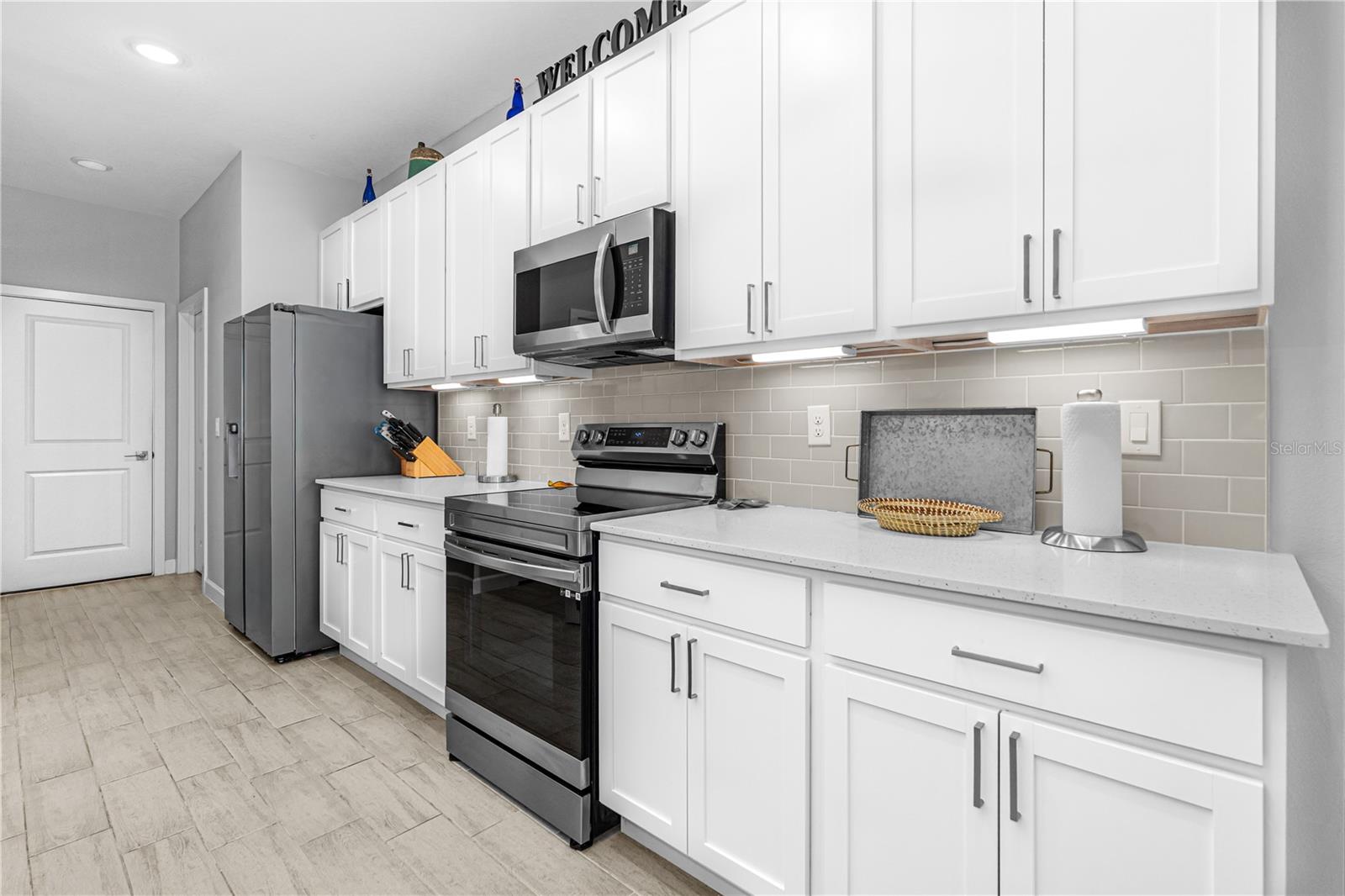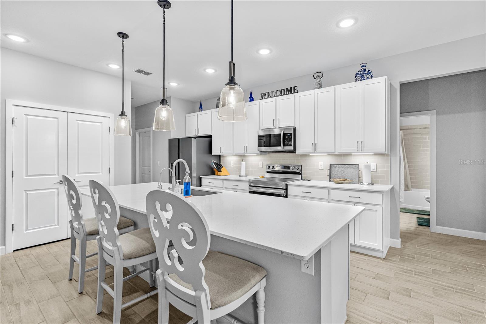 Descubra a vida moderna na Flórida! Experimente conforto, eficiência e beleza natural nesta casa Brite Built de nível único movida a energia solar. Idealmente localizada perto de lojas, restaurantes e recreação, esta residência oferece o equilíbrio perfeito entre conveniência e privacidade. O quintal, que faz fronteira com uma reserva tranquila, cria um retiro tranquilo rodeado pela natureza. Cuidadosamente paisagístico com plantas nativas para atrair pássaros e polinizadores, o quintal também conserva a água de irrigação para uma vida ecologicamente correta. Desfrute de entretenimento ao ar livre no amplo pátio pavimentado ou relaxe na varanda com tela de epóxi e ventilador de teto - perfeito para café da manhã ou churrascos à noite. A árvore cítrica madura até produziu laranjas este ano! Sem taxas HOA e uma conta de energia média baixa de apenas US$ 25,66, esta casa mantém baixas suas despesas mensais. No interior, o layout de conceito aberto inclui 4 quartos espaçosos, 3 banheiros completos e uma sala flexível versátil - ideal para um escritório doméstico ou escritório. A lavanderia interna oferece uma pia para maior comodidade. A garagem para dois carros possui piso epóxi, armazenamento superior, área de descanso, esquentador elétrico híbrido e sistema de amaciante de água para toda a casa. A cozinha do chef apresenta armários de fechamento suave com prateleiras extensíveis, iluminação sob o gabinete e sistema de osmose reversa. Uma impressionante ilha de quartzo de 3 metros ancora o espaço, perfeita para refeições casuais e entretenimento. O porcelanato durável com aparência de madeira flui por todos os 2.306 pés quadrados, complementado por armazenamento abundante, incluindo armários California atualizados em todos os quartos. A espaçosa suíte principal tem vista para o quintal sereno e possui um closet grande, pia dupla, box amplo com box de vidro e um vaso sanitário privativo. Aproveite as flores de foguete, Carolina jessamine e jasmim confederado do lado de fora da sua janela durante todo o ano. Construída com qualidade e cuidado, esta casa ainda carrega sua garantia estrutural de 10 anos - um verdadeiro testemunho de paz de espírito duradoura. Atualizações incluídas: Painéis solares – próprios e incluídos Armários Califórnia em todos os 4 quartos Porta de pátio de vidro deslizante melhorada Pisos de garagem e varanda em epóxi Lanai totalmente fechado Pavimentação de pátio e calçada paisagística Plantações nativas de quintal Iluminação sob o armário da cozinha Ventiladores de teto na sala, quarto principal e varanda Luminárias atualizadas na cozinha, sala de jantar e entrada. Arrecadação superior da garagem + parede de pegboard Proteção contra surtos em toda a casa Capacetes para calha de chuva Implementações de armários de cozinha Abridor de garagem inteligente Garantia estrutural de 10 anos