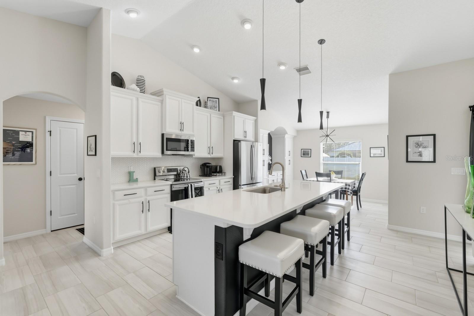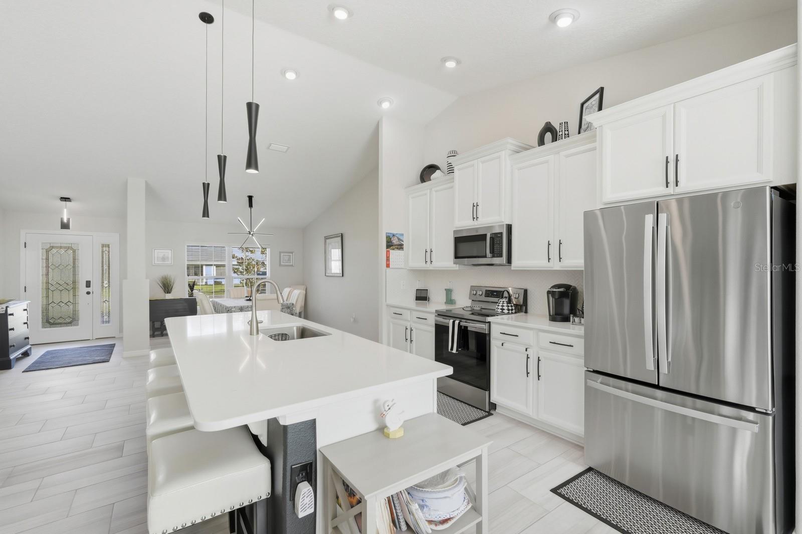 Modelo Willow imaculado, construído pela Seagate, localizado no desejável bairro de Pine Lakes! Esta casa de blocos de concreto pronta para morar em 2021 apresenta design atemporal, acabamentos elegantes e atualizações cuidadosas. Este layout de conceito aberto e cheio de luz é aprimorado por tetos abobadados e impressionantes pisos de cerâmica falsa de madeira nas principais áreas de estar. A cozinha gourmet possui bancadas de quartzo, backsplash elegante, armários brancos e eletrodomésticos de aço inoxidável. A luxuosa suíte do proprietário parece um retiro com carpete macio, dois closets espaçosos e um banheiro principal tipo spa, completo com uma pia dupla personalizada em forma de L com tampo de quartzo. Uma sala bônus flexível com armário oferece o espaço perfeito para um escritório em casa, escritório ou sala de ginástica. Aproveite a vida na Flórida na varanda coberta estendida com uma laje de concreto de 15 cm e toldo retrátil à prova de vento; ideal para relaxar ou entreter. A lavadora e a secadora estão convenientemente colocadas em pedestais na lavanderia, oferecendo espaço de armazenamento extra. O grande quintal parcialmente vedado é perfeito para uma futura piscina. Atualizações adicionais incluem US $ 5.000 em iluminação de design, janelas resistentes a furacões, filtragem e amaciante de água para toda a casa, sistema de irrigação, câmeras Blink and Ring e muito mais. Perto de parques, golfe, lojas e a poucos minutos de Flagler Beach. Experimente uma casa longe da média, pensada para quem valoriza qualidade, cuidado e estilo em cada detalhe.