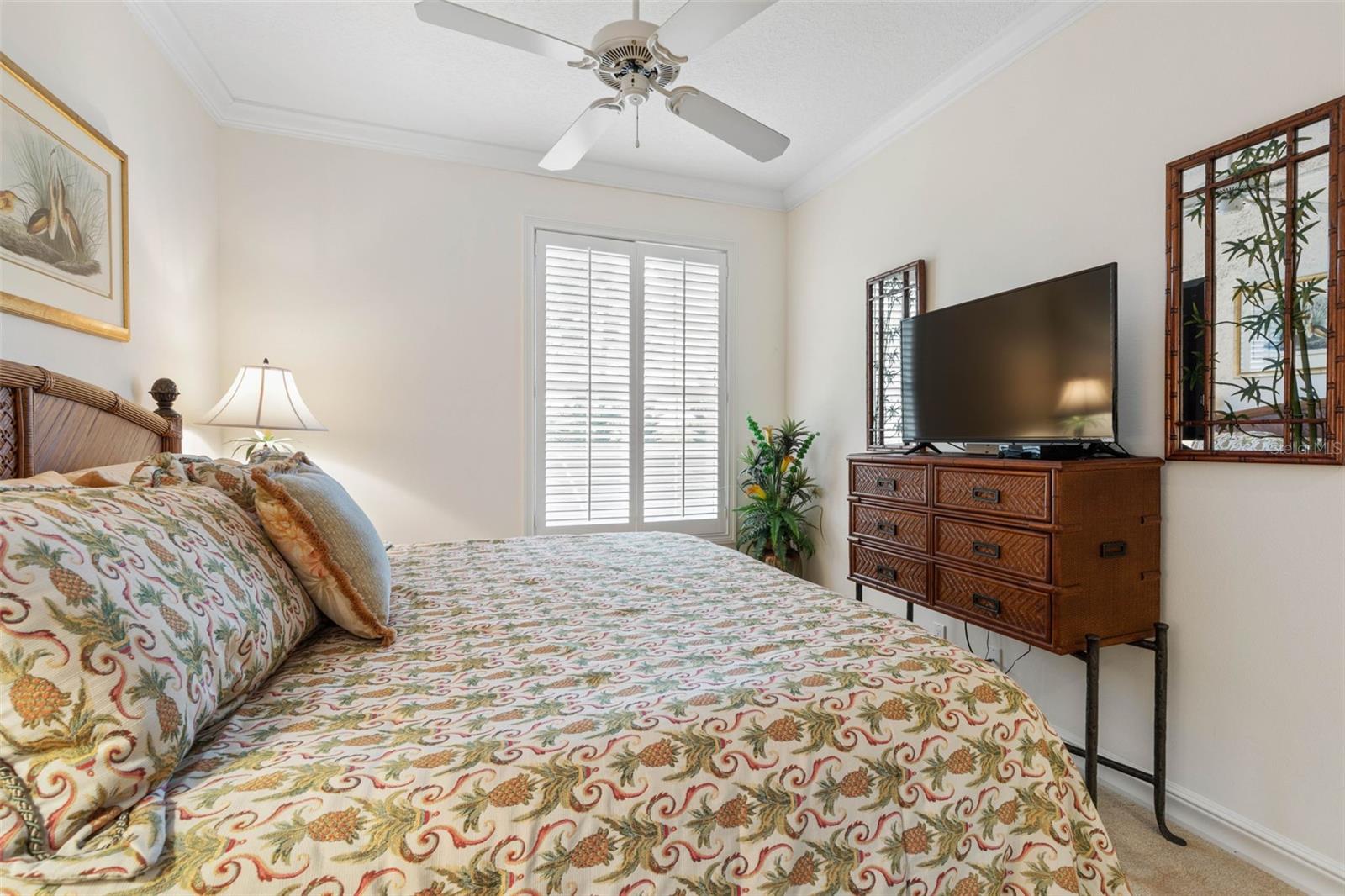 Experimente a vida costeira refinada nesta residência 3BR/2.5BA, oferecendo pouco menos de 2.400 pés quadrados dentro do exclusivo condomínio fechado de Hammock Dunes. Perfeitamente posicionada ao longo dos exuberantes fairways do campo de golfe exclusivo da comunidade, esta elegante casa captura a essência do luxo da Flórida com vistas deslumbrantes, um novo telhado e uma varanda em estilo resort com piscina cintilante, spa e área coberta expandida, ideal para entretenimento durante todo o ano. No interior, tectos altos, luz natural abundante e uma planta aberta criam uma atmosfera acolhedora mas sofisticada. A cozinha bem iluminada oferece armazenamento generoso, fornos de parede dupla, balcão seco e balcão elevado para café da manhã com vista para a sala de estar, para que você nunca perca um momento. A espaçosa suíte principal se abre para a piscina e possui closets personalizados com prateleiras de madeira e um banheiro lindamente reformado com box amplo, pias duplas e penteadeira dedicada. No andar de cima, os hóspedes desfrutarão de privacidade com dois quartos confortáveis, um banheiro atualizado com box amplo e muita luz natural. O HOA inclui manutenção de gramado e paisagismo, oferecendo uma vida despreocupada e de baixa manutenção em um dos enclaves mais desejáveis de Palm Coast. A poucos minutos da costa do Atlântico e do Emerald Distinguished Hammock Dunes Club, os residentes podem desfrutar de acesso opcional a comodidades de classe mundial, incluindo dois campos de golfe profissionais (The Links Course along the Atlantic e The Creek Course de Tom Fazio), tênis, pickleball, fitness, restaurantes e muito mais.