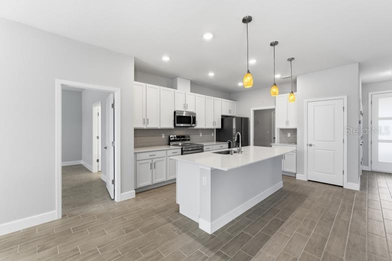 Lindamente construída em 2024 pela Brite Homes, esta casa em construção em bloco foi meticulosamente mantida e está realmente pronta para morar para seus próximos proprietários. Oferecendo 3 quartos, 2 banheiros, com mais de 1.900 pés quadrados, a casa apresenta um conceito aberto bem projetado, planta dividida, ideal para a vida cotidiana e para entretenimento. O melhor de tudo é que não há taxas HOA. Ao chegar, você apreciará o exterior limpo e moderno da casa, com estuque com detalhes em pedra, meio-fio de concreto, calhas completas e paisagismo cuidadosamente cuidado. Um sistema completo de sprinklers e um pátio totalmente cercado melhoram a atratividade e a funcionalidade do meio-fio. Perto da sala principal, uma varanda coberta tem vista para um quintal espaçoso com muito espaço para uma futura piscina. Passe pela porta da frente e entre em um interior claro e arejado, com tetos de 9'4" e moderno piso de tábuas. A luz natural preenche a área de estar aberta, complementada por iluminação LED com baixo consumo de energia. A cozinha fica no centro da casa e oferece bancadas de quartzo, backsplash de azulejos de metrô, eletrodomésticos de aço inoxidável e uma grande ilha com assentos de bar, todos abertos para a área de estar principal para um fluxo sem esforço. Logo além da área de estar, um espaço bônus versátil oferece flexibilidade para um escritório doméstico, área criativa ou espaço de estar adicional. A suíte principal é privativa e possui teto falso, closet e banheiro privativo com box amplo de azulejos, box de vidro e bancadas de quartzo. O banheiro secundário inclui uma combinação de banheira/chuveiro com azulejos subterrâneos e acabamentos coordenados. Os destaques adicionais incluem persianas, lavanderia dedicada com pia, sistema de filtragem de água para toda a casa e osmose reversa na pia da cozinha. Convenientemente localizada perto de parques, praias, escolas, lojas e restaurantes, esta casa oferece o equilíbrio perfeito entre conforto, conveniência e vida moderna na Flórida.