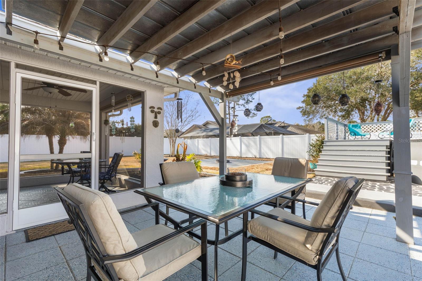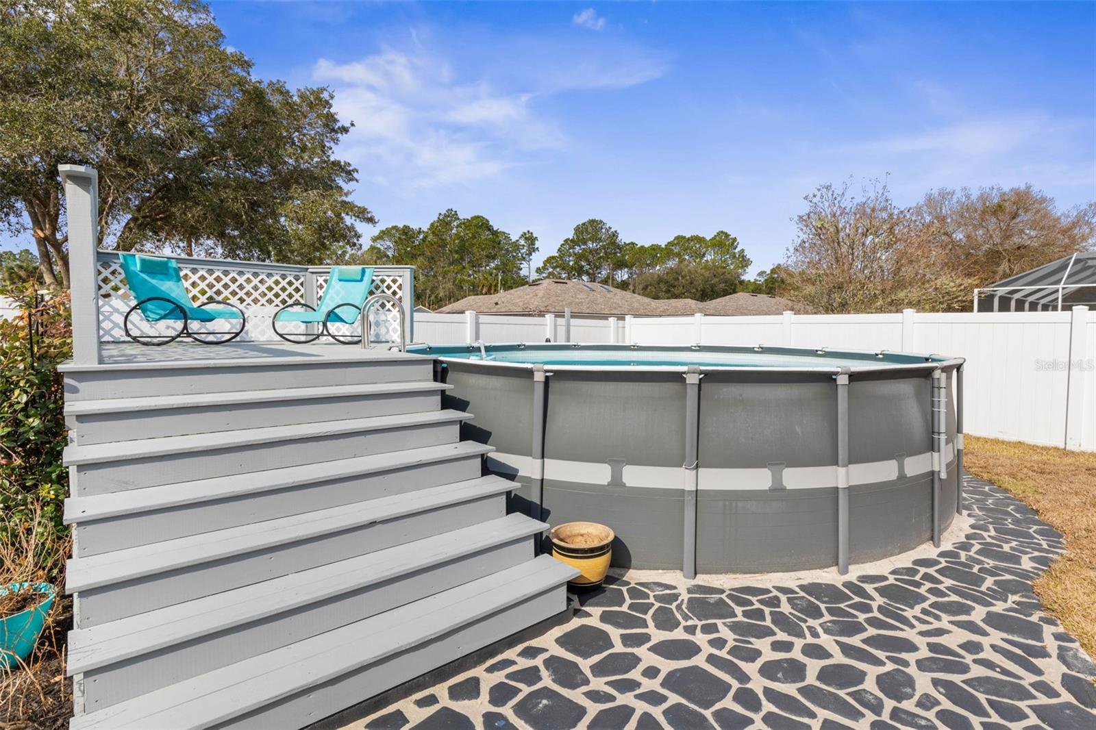 ENCONTRE PAZ, PRIVACIDADE E SUA FATIA DE PARAÍSO EM PALMYRA! Bem-vindo ao 23 Palmyra Lane, onde CONDIÇÃO PRISTINA e ORGULHO DE PROPRIEDADE são evidentes desde o momento de sua chegada. Combinada com cuidado meticuloso e atualizações modernas de bom gosto, esta casa parece PRATICAMENTE NOVA! No interior, você encontrará uma planta dividida cuidadosamente projetada com 3 quartos e 2 banheiros completos, proporcionando funcionalidade e privacidade. O luxuoso piso de pranchas de vinil flui por toda a sala de estar e quartos, enquanto os azulejos duráveis e atraentes realçam a cozinha e os banheiros. A espaçosa suíte principal serve como um retiro tranquilo, completa com closet, iluminação de corda e um banheiro privativo lindamente atualizado com um box amplo deslumbrante do chão ao teto. As portas francesas do quarto principal abrem diretamente para o seu oásis privado no quintal, criando uma conexão perfeita entre o conforto interno e o relaxamento ao ar livre. Saia e experimente um verdadeiro santuário ao ar livre. O quintal possui uma piscina acima do solo com deck personalizado, perfeita para se refrescar nos dias quentes da Flórida. Uma área de fogueira lindamente pavimentada convida noites aconchegantes sob as estrelas, enquanto espaços adicionais pavimentados sob a pérgula e na churrasqueira criam ambientes ideais para entretenimento, jantar ou simplesmente relaxar. O quintal totalmente cercado oferece privacidade e muito espaço para brincar, jardinar ou relaxar. Os destaques adicionais da casa incluem um telhado mais novo (2018), sistema AC atualizado (2020), eletrodomésticos de aço inoxidável mais novos, fiação de 220 V para banheira de hidromassagem instalada e manutenção meticulosa por toda parte. Óptima localização: perto de escolas, comércio, campos de golfe e da PRAIA! Ligue para agendar um tour privado hoje!