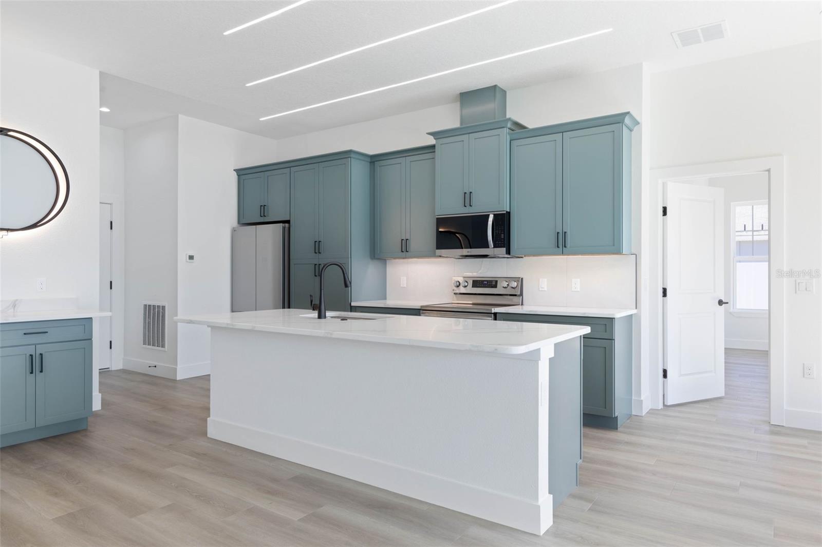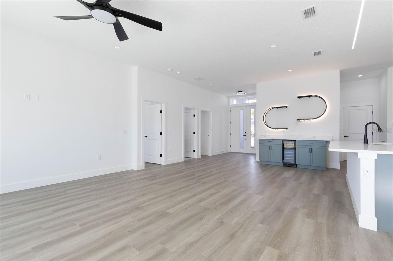 Acabada de ser concluída – nova construção moderna no altamente desejado bairro de Indian Trails! Prepare-se para ficar impressionado com esta casa contemporânea de um nível que oferece design excepcional, layout flexível e acabamentos de luxo por toda parte. Apresentando uma planta dividida com 3 quartos, 3 banheiros completos e uma garagem para 3 carros, este layout inteligente é perfeito para duas suítes principais ou uma configuração ideal de suíte para sogros. Além disso, aproveite calhas perfeitas instaladas na frente e atrás da casa. Entre em um espaço iluminado e de conceito aberto com tetos de 10 pés, bancadas de quartzo, armários com fechamento suave e uma despensa escondida espetacular. A cozinha gourmet inclui um pacote completo de eletrodomésticos em aço inoxidável, iluminação LED especial e uma adega refrigerada - um sonho para entretenimento e vida cotidiana. Uma impressionante porta de vidro deslizante de 12' x 8' cria uma vida interna/externa perfeita e enche a casa com luz natural. A suíte principal oferece um closet espaçoso e um banheiro de design com espelhos LED antiembaçantes. A suíte secundária e o terceiro quarto proporcionam conforto e privacidade com tetos de 9’4” e seus próprios banheiros lindamente decorados. Construída com blocos sólidos em um lote de 0,23 acres, esta casa oferece 1.810 pés quadrados de área útil e 2.782 pés quadrados sob telhado. A impressionante varanda frontal de 12 pés oferece um apelo ousado, enquanto a garagem para três carros, pátio coberto, quintal cercado, armazenamento no sótão e paisagismo limpo e de baixa manutenção completam o pacote. Com localização central em Palm Coast, perto de lojas, restaurantes, quilômetros de trilhas panorâmicas para caminhadas e ciclismo, European Village e a poucos minutos das belas praias da região. Esta nova casa deslumbrante é verdadeiramente única - agende hoje mesmo seu tour privado. Isso vai fazer você dizer UAU!