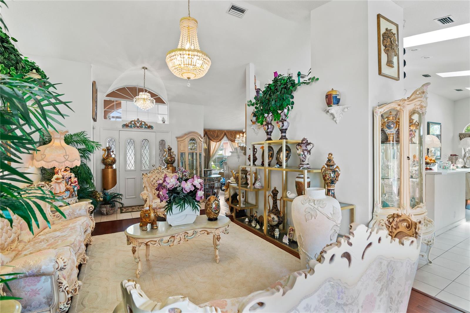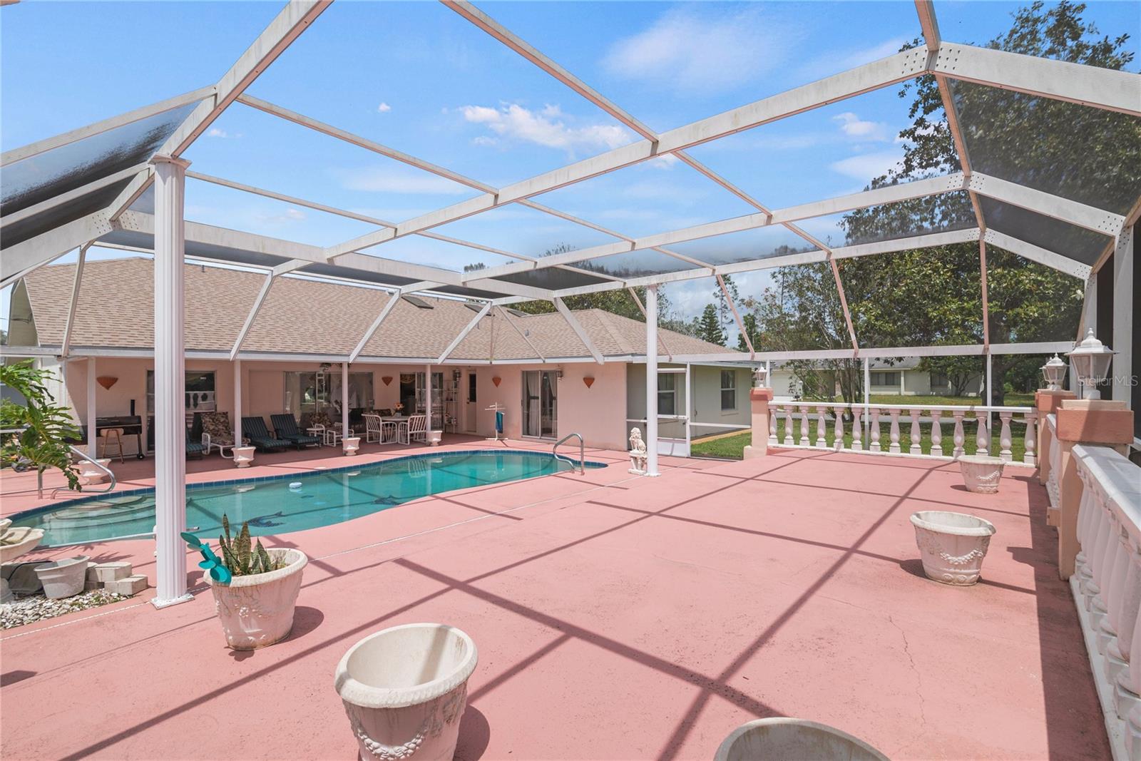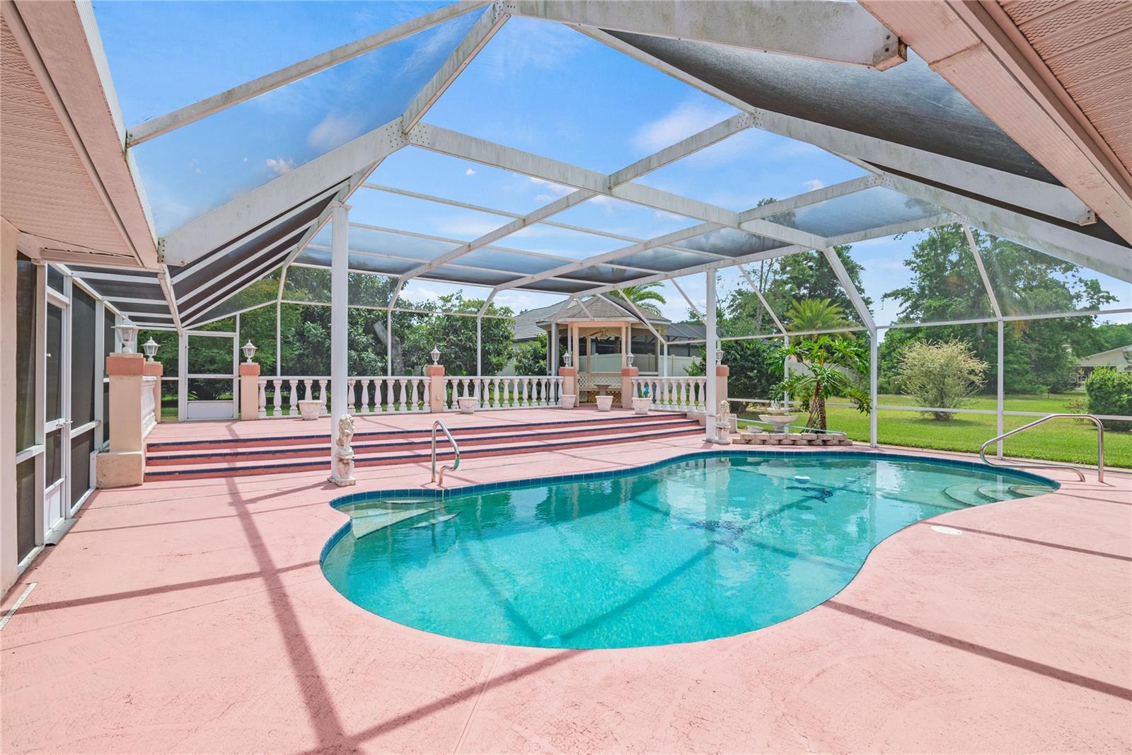 Esta bela obra -prima consiste em 4BDRMs, 3 banheiros, piscina ingressada com extensa área de entretenimento, o Gazebo, todos exibidos, a entrada circular para o excesso de estacionamento localizado neste lote de canto premium apenas para mencionar alguns! Esta propriedade convida uma nova família ... Quando você se aproxima dessa garagem a meia circular com 2 entradas, você notará que é lindamente paisagístico com árvores/flores maduras, ornamentos de animais, iluminação externa requintada em toda a propriedade. Ao entrar nesse plano dividido em casa ... você entra pelo vestíbulo fechado, onde pode relaxar e usar para outros fins e seguir para a sala de estar formal, sala de jantar formal, entrar na cozinha com uma barra de café da manhã e um recanto de café da manhã, todos os que estão ligados à sala de família Ajacent para conversa e comunicação com amigos e familiares. Home possui uma lareira a gás e clarabóias Aloquent para ajudar a iluminar e aprimorar a sala da família e a cozinha. WE CONTINUE TO THE RIGHT BEGINNIG THE SPLIT PLAN OF 3 LARGE BDRMS AND 2 BATHS, ONE CONVENIENTLY SITUATED AS A POOL-BATH LEADING TO THE EXQUISITE ENTERTAINMENT AREA WITH AN EXTRA LARGE DECK WITH STEPS LEADING TO THE A HUGE SCREENED IN GAZEBO AREA FOR FAMILY, FRIENDS AND NEIGHBORS FOR EXTRA ENTERTAINING... AND AS YOU ENTER BACK INSIDE TO THE LEFT... THERE'S THE MASTER SUITE WING WITH A POOL VIEW AND PRIVATE ACCESS ALONG WITH IT'S PRIVATE BATHROOM, CONVENIENCE AND PRIVACY!