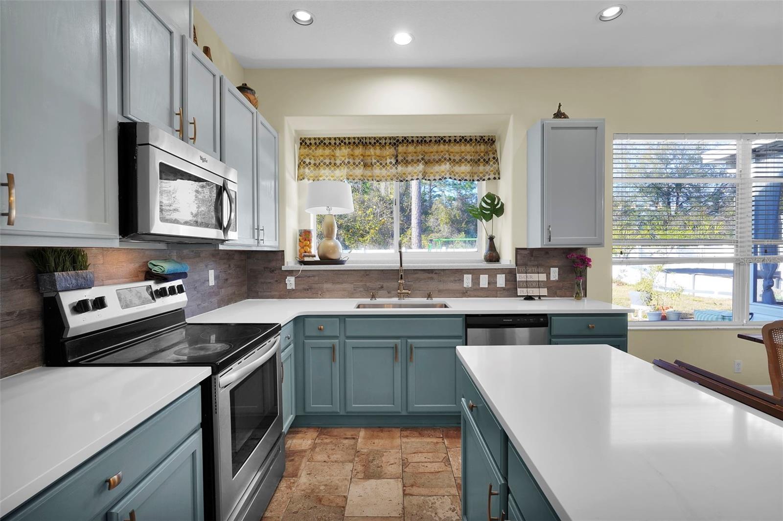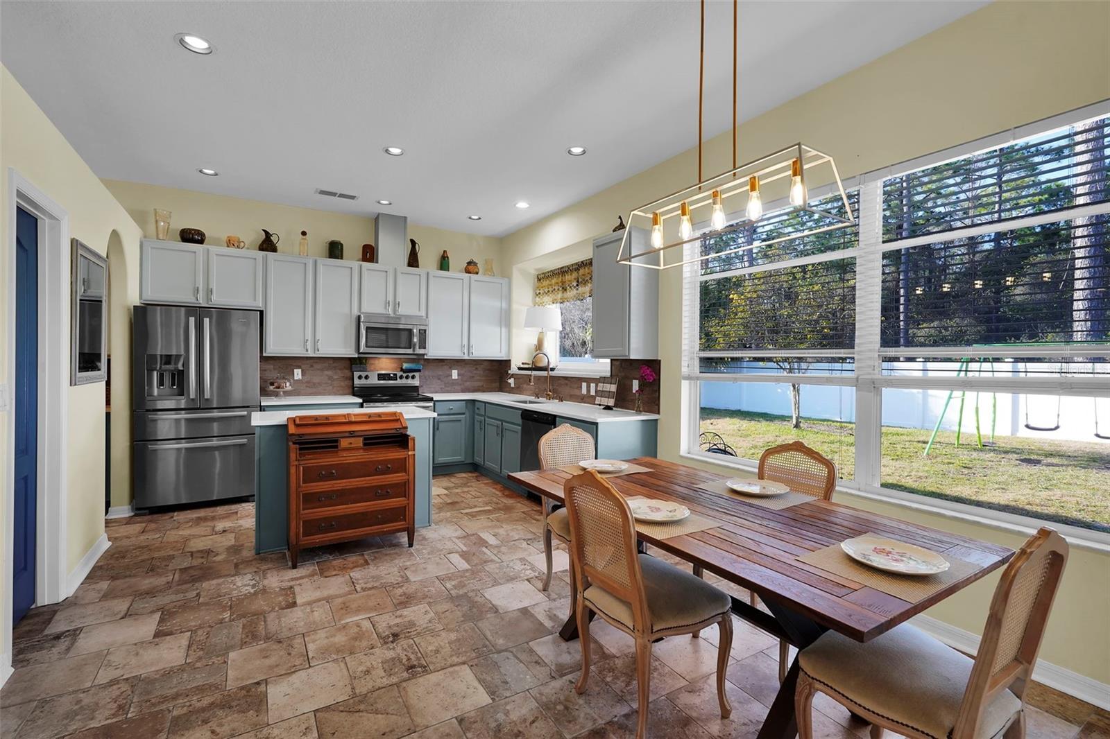 Não perca esta espaçosa casa de 4 quartos e 3 banheiros no altamente desejável bairro de Pine Lakes! Com quase 2.600 pés quadrados de espaço de estar, esta casa é carregada com atualizações recentes, incluindo um telhado novinho em folha (julho de 2024) com clarabóias, tapetes frescos e iluminação moderna. A cozinha aberta apresenta lindas bancadas de quartzo, uma ilha, um forno de convecção, uma despensa de mordomo e uma torneira sem mãos, tornando-a perfeita para qualquer chef doméstico. A sala da família possui incorporação e clarabóias personalizadas, enquanto as salas de vida e jantar formais oferecem amplo espaço para entretenimento. Esta casa também inclui janelas coloridas para o leste/oeste e uma lavanderia dedicada, garantindo conforto e conveniência por toda parte. Além disso, muitos móveis domésticos estão abertos a ficar com a oportunidade certa. Saia de uma varanda de tela privada, levando a um quintal totalmente cercado com uma piscina acima do solo, perfeita para reuniões ou um mergulho refrescante. Você também encontrará árvores de limão, limão e kumquat, além de um grande galpão para armazenamento adicional. A suíte primária é um verdadeiro retiro com closetes duplos, carpete novo e um banheiro privativo com vaidades duplas, uma banheira de imersão, chuveiro separado e armário de água. A casa também possui uma garagem de 3 carros, ideal para veículos, barcos ou carrinhos de golfe, além de armazenamento no sótão e uma garagem circular para estacionamento extra. A segurança é de primeira linha com termostato de ninho, câmera do Google Doorbell, luz de segurança de movimento traseiro e um sistema de irrigação bem para o gramado. Localizada perto de escolas, compras, instalações médicas, parques estaduais e belas praias, esta casa é obrigatória!
