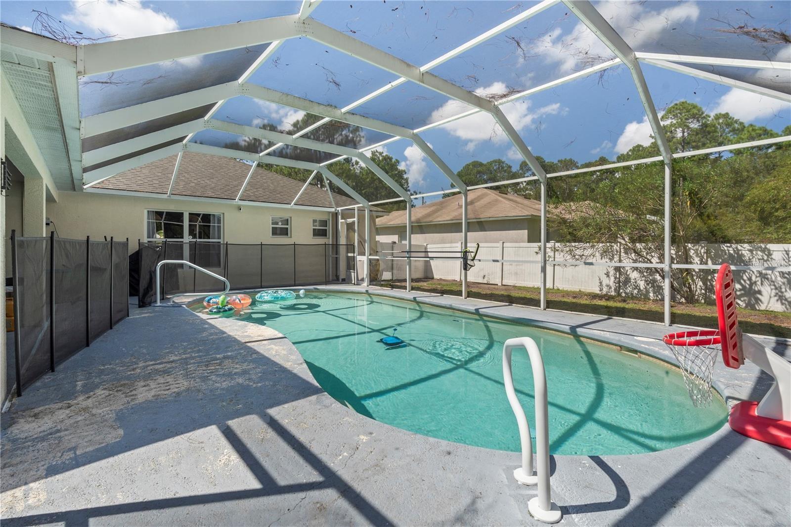 CASA ALUGUEDA ATÉ MEADOS DE 2026 **Aproveite o empréstimo VA assumível do vendedor, com uma taxa de juros de 3,99%.** Impressionante casa com piscina de 4 quartos com atualizações modernas e localização privilegiada! Esta casa lindamente conservada de 4 quartos e 2 banheiros tem tudo que você precisa e muito mais! Abrangendo 2.256 pés quadrados, esta joia pronta para morar possui um telhado 2021, A/C 2020 e eletrodomésticos com 3 anos de idade, garantindo conforto e eficiência modernos. Entre em um convidativo layout de conceito aberto com tetos abobadados, criando uma atmosfera iluminada e arejada. A planta dividida cuidadosamente projetada oferece privacidade, com a espaçosa suíte master com dois closets e um luxuoso banheiro master completo com banheira de imersão e chuveiro separado. A cozinha atualizada é o sonho de qualquer chef, com eletrodomésticos em aço inox e duas despensas para amplo armazenamento. Desfrute do conforto durante todo o ano com uma garagem aquecida e refrigerada, perfeita para uma oficina ou espaço adicional. O sistema de sprinklers bem mantém o paisagismo exuberante vibrante e de baixa manutenção. Saia para o seu retiro tropical privado, com uma piscina coberta com aquecimento solar - perfeita para relaxar ou se divertir. O quintal totalmente cercado dá acesso a áreas reservadas em dois lados, oferecendo privacidade extra. Uma entrada circular acrescenta conveniência e estacionamento adicional. Situada em uma localização privilegiada, esta casa fica a apenas 10 minutos de Flagler Beach e a poucos minutos de lojas e restaurantes. Não perca esta oportunidade incrível – agende sua exibição privada hoje mesmo!