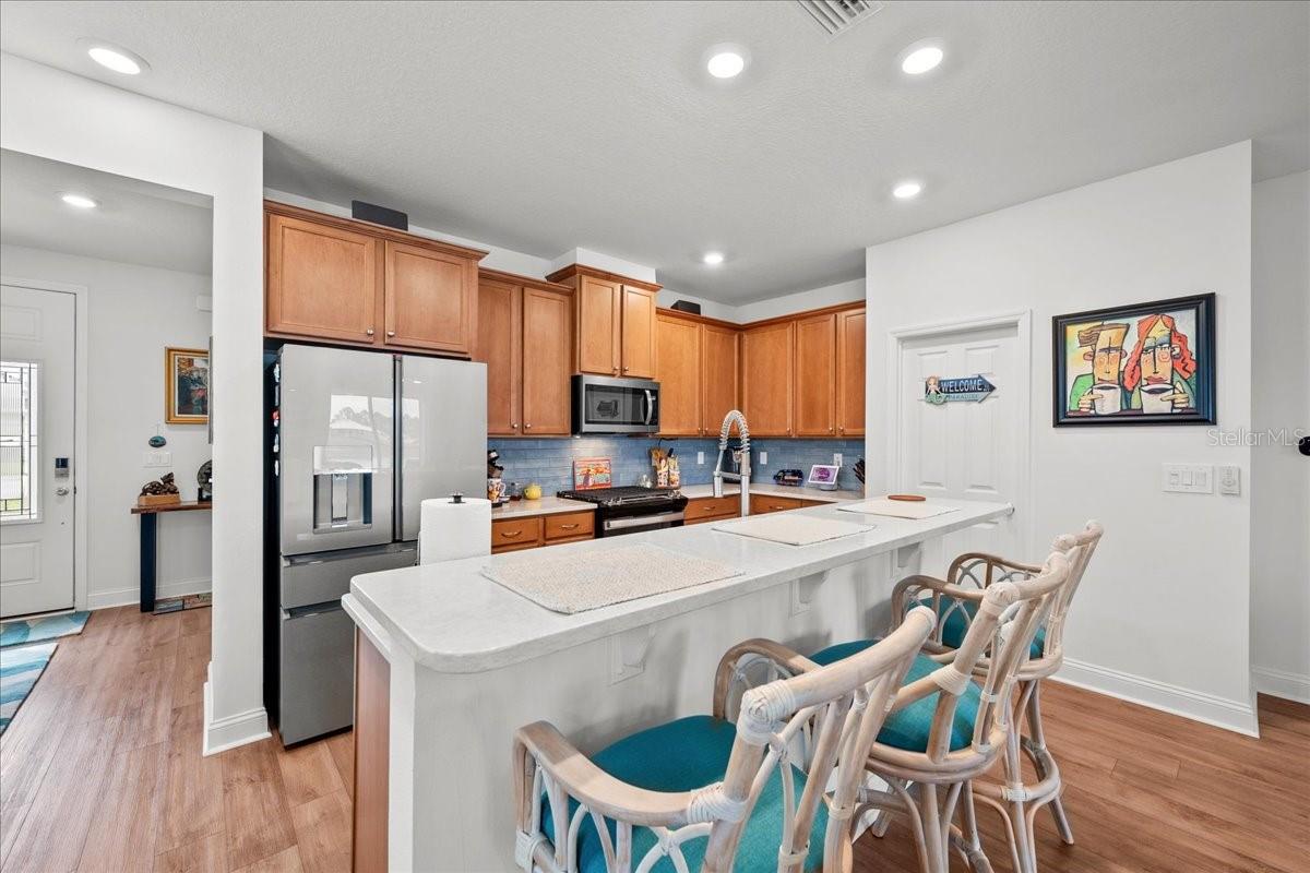 A impressionante casa construída em 2023 com 4 quartos, 2 banheiros e uma espaçosa planta aberta. Desfrute de acabamentos interiores atualizados, incluindo ventiladores decorativos de teto com controle remoto e controlados em todos os quartos e ladrilhos de banho luxuosos. A cozinha do chef possui armários de close macio de 42 '', bancadas de quartzo e um elegante backsplash. Relaxe na suíte master com um grande armário, vaidade dupla e chuveiro/banheira separada. A casa oferece uma varanda selecionada com vistas para a lagoa, tetos de 9 pés por toda parte e um controle deslizante de entrada de 8 pés e traseiro. A garagem tem 22 pés de profundidade com armazenamento extra, um loop de água macia e pré-picante para uma pia. Os recursos adicionais incluem uma conexão de gerador portátil de 50 A com supressão de surtos e escadas de garagem para acesso ao sótão. Esta casa está realmente pronta para todas as atualizações que você vai adorar!