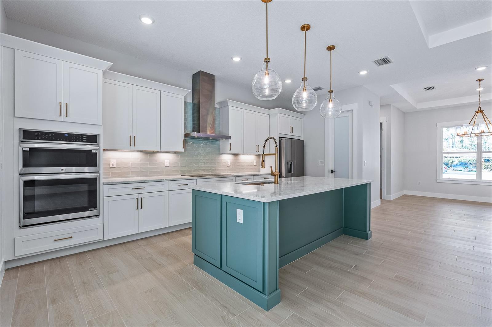 Em construção. Nova construção de luxo no coração da seção E de Palm Coast. Lote privado sem saída de grandes dimensões com vista para a conservação. Outro belo projeto costeiro (The Antigua) da Coastlantic Home Builders, esta casa dos sonhos de 3 quartos e 3 banheiros está repleta de atualizações projetadas para capturar aquela sensação costeira. Construída em bloco e construída com os mais altos padrões, esta casa tem uma grande varanda frontal coberta, detalhes em metal no telhado, detalhes finos em estuque e uma enorme varanda traseira com muito espaço para uma piscina. Calçada pavimentada e varandas cobertas; culminado com um pacote aprimorado de paisagem tropical. O interior é iluminado e arejado, com muitas janelas que trazem luz natural. Porcelanato de 40" com aparência de madeira em toda a casa, armários superiores de 42" com grandes molduras em forma de sanca, portas e acabamentos em estilo artesanal; com bancadas de quartzo premium. O pacote de eletrodomésticos premium inclui combinação de forno de convecção/microondas com recurso de fritar, lava-louças, descarte, fogão de vidro e geladeira com porta francesa. Os azulejos decorativos e as paredes dos banheiros continuam a sensação costeira em toda a casa. O escritório/arrumos tem vista para a área da varanda frontal e pode ser facilmente um 4º quarto com armário incluído. Acabamento de acordo com os altos padrões da Coastlantic Home Builders, usando produtos de pintura premium, incluindo piso de garagem em epóxi para cobrir tudo. É uma casa imperdível.