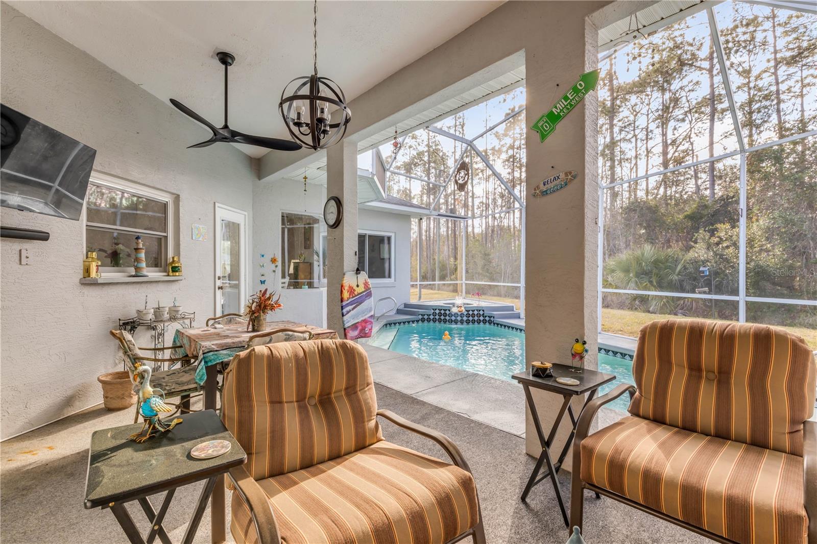 Situada no final de um beco sem saída tranquilo, esta casa de 4 quartos e 2 banheiros, lindamente conservada, dispõe de uma piscina de água salgada com uma fonte e oferece 2.313 pés quadrados de espaço aberto e iluminado, projetado para conforto e vida fácil na Flórida. As portas de entrada duplas dão-lhe as boas-vindas a uma espaçosa área de estar principal, onde a área de jantar e a sala de estar fluem juntas sem esforço, criando uma atmosfera convidativa para reuniões grandes e pequenas. Um pouco além, a cozinha de tamanho generoso apresenta amplos armários e balcões, eletrodomésticos de aço inoxidável e um layout que se conecta perfeitamente a uma área de jantar e sala de estar adicionais. Janelas abundantes em toda a casa inundam o espaço com luz natural, realçando a sensação de abertura e arejamento em todos os quartos. A suíte principal é um verdadeiro retiro, oferecendo acesso direto ao pátio e um banheiro privativo bem equipado com pia dupla, banheira de imersão e box amplo separado. Um quarto secundário cuidadosamente projetado inclui estantes de madeira personalizadas do chão ao teto, adicionando calor e funcionalidade. No coração da casa, a varanda protegida oferece um refúgio privativo ao ar livre, destacado por uma piscina de água salgada cintilante e um ambiente tranquilo no quintal. A propriedade também possui um sistema de irrigação bem alimentado, proporcionando irrigação eficiente do gramado sem impactar nos custos de serviços públicos. As atualizações recentes incluem um sistema HVAC substituído e atualizado com filtragem eletrostática (2021), janelas de painel duplo com classificação de impacto, persianas personalizadas, novo aquecedor de água, estantes de livros personalizadas e uma unidade de água salgada e bomba de piscina de velocidade variável. Idealmente localizada perto de supermercados, restaurantes e principais rodovias, esta casa realmente brilha por sua localização. Mais importante ainda, fica a poucos minutos das praias populares de Palm Coast e da costa atlântica, tornando a vida costeira facilmente acessível todos os dias. Economias hipotecárias podem estar disponíveis para compradores desta listagem.
