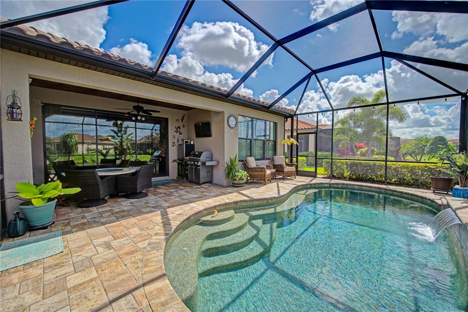 Uma listagem que você não vai querer perder! Esta casa elegantemente exibida inclui uma bela piscina com uma vista especial da água! O Arezzo tem 1920 pés quadrados de espaço e possui 3 quartos, além de uma sala de den/flex! Dê uma olhada nos nítidos armários de café expresso que serem iluminados sob a iluminação do gabinete na cozinha, que se abrem para a área da sala de jantar e também tem vista para a sala de estar e para a luxuosa área de piscina! As portas deslizantes o levam para a Lanai coberta que é encantada para uma cozinha ao ar livre. Esta casa de entrada lateral inclui telhado de azulejos, pavimentadores na calçada e calçada, além de pavimentadoras acessando a gaiola da piscina do lado de fora! A cozinha foi recentemente aprimorada por uma nova pia de aço inoxidável. Wainscoting desencadeia o espaçoso espaço de jantar. O teto da língua e da ranhura destaca a entrada e a lanai coberta. Persianas elegantes em todas as janelas! Moldagem da coroa, bem como as portas de 8 'atualizadas e o pacote de teto de bandeja. Observe a porta da frente de vidro com chumbo e a luz lateral. Painel de vidro As portas francesas levam ao Den/Flex Room ... O proprietário atual deixa as portas abertas e utilizou esse espaço flexível como um bar! Pias duplas no banheiro primário privadas, além de uma porta de chuveiro de vidro mais recente e um belo closet. O quarto 2 oferece acesso à porta de bolso ao banheiro 2 para uma sensação de banheiro privativo. Quarto 3 possui um belo armário de tamanho. Sem tapete ... Exclusivamente esta casa tem piso de azulejos em espaços e banheiros principais, que é colocado em um piso diagonal e vinil de luxo (LVT) nos quartos e covil. Acesso no sótão através de etapas de pulldown na garagem. A entrada de automóveis foi ampliada. Esplanade no Artisan Lakes é uma comunidade de resorts encantadora, com muitas atividades divertidas para escolher. O local da I-75 e I-275 permite acesso rápido a shoppings, praias, aeroportos, entretenimento e refeições! Proprietário original desta casa meticulosamente mantida ... venha conferir !!!