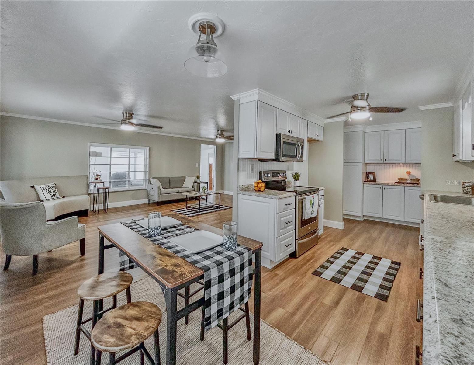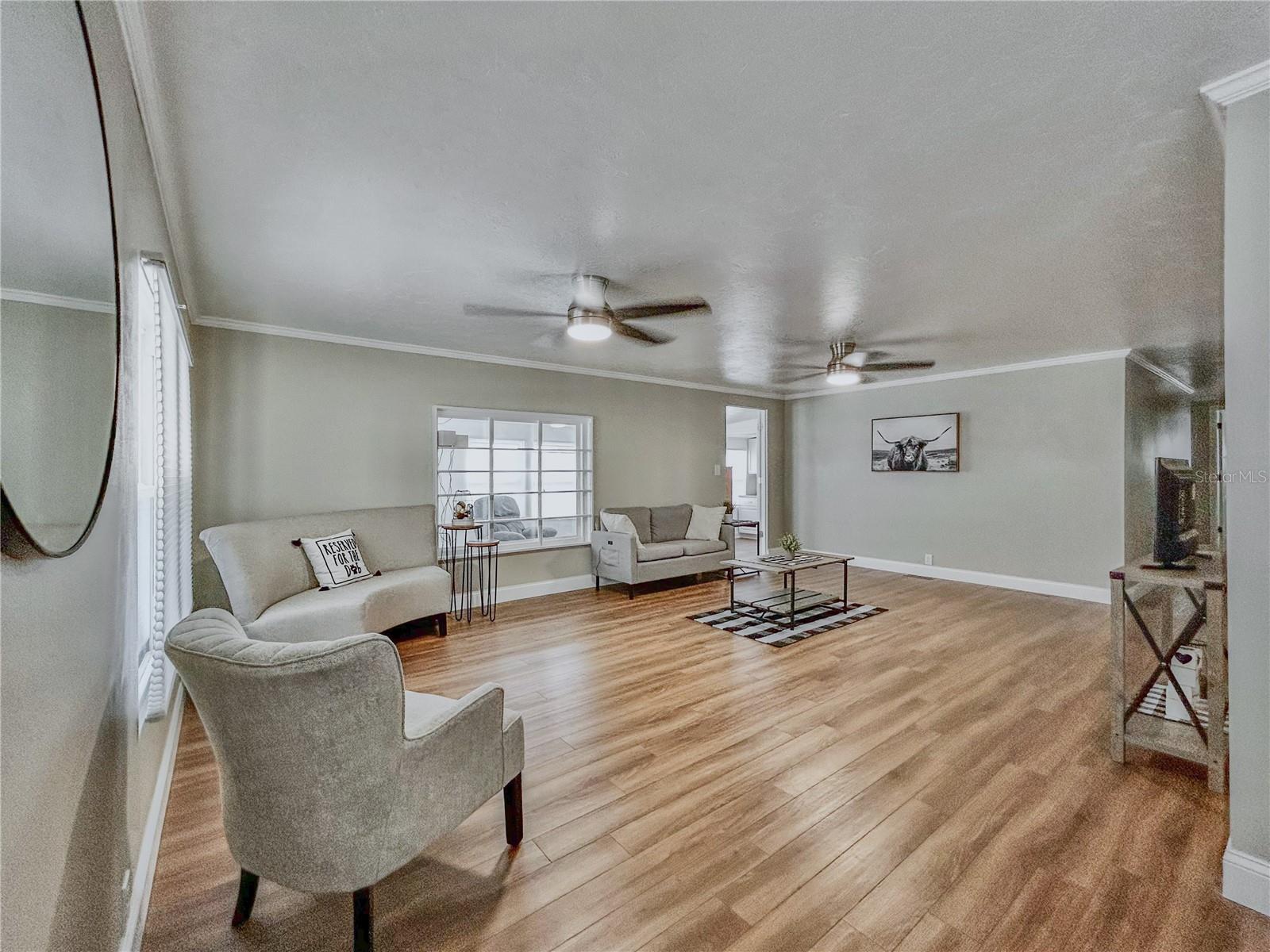 Bem-vindo ao 420 49TH STREET E Unidade #6, PALMETTO, Flórida 34221! Esta propriedade meticulosamente renovada apresenta uma série de modernos atualizações e toques atenciosos, tornando-o o lugar perfeito para chamar de lar. Entre para descobrir um interior lindamente redesenhado, onde nenhum detalhe foi esquecido. Você encontrará uma série de atualizações, incluindo novos pisos laminados de luxo, sancas, rodapés de alta altura e banheiros atualizados. Janelas mais novas e energeticamente eficientes inundam a casa com luz natural. Cada quarto acomoda confortavelmente uma cama king-size, oferecendo muito espaço para descanso e relaxamento. O espaço de armazenamento não é um problema, já que cada quarto tem um closet. O espaço aéreo se estende por 1.104 pés quadrados e essa dimensão não inclui nem mesmo o quarto Florida e a lavanderia com ar-condicionado. O coração da casa é a impressionante cozinha atualizada, completa com bancadas elegantes e backsplash de azulejos, armários contemporâneos e eletrodomésticos de aço inoxidável. O layout aberto possui uma quantidade abundante de armários que fluem perfeitamente para a sala de jantar e para a área de estar, criando um espaço ideal para a vida cotidiana. Um pátio cercado garante privacidade e segurança, enquanto o estacionamento para dois a três carros oferece comodidade para residentes e hóspedes. Sob a garagem, há um galpão de armazenamento para pequenos projetos e armazenamento excedente. A cobertura metálica foi instalada em 2015 e tem garantia vitalícia com garantia transferível, o que proporciona tranquilidade e durabilidade por muitos anos. Detalhes adicionais que você pode notar durante a remodelação incluem paredes isoladas e de drywall, revestimento de vinil isolado, novas luminárias e ventiladores, novas persianas e uma lavanderia interna com armários completos e pia. Além disso, com um novo sistema HVAC instalado em dezembro de 2023, você pode desfrutar de conforto e eficiência energética durante todo o ano. Com rodapé de bloco atualizado na base externa da casa, esta propriedade definitivamente tem grande apelo de meio-fio. Não perca a chance de adquirir esta casa impecavelmente reformada em um local desejável. Agende sua exibição hoje e faça deste o seu novo retiro na Flórida! A casa foi montada em algumas áreas. Móveis de quarto e duas poltronas reclináveis azuis na sala Flórida que combinam com a casa. As imagens não mostram nenhuma geladeira na cozinha, o vendedor instalará um novo eletrodoméstico de aço inoxidável em um futuro próximo. As venezianas da frente da casa foram danificadas no furacão mais recente e desde então foram removidas.