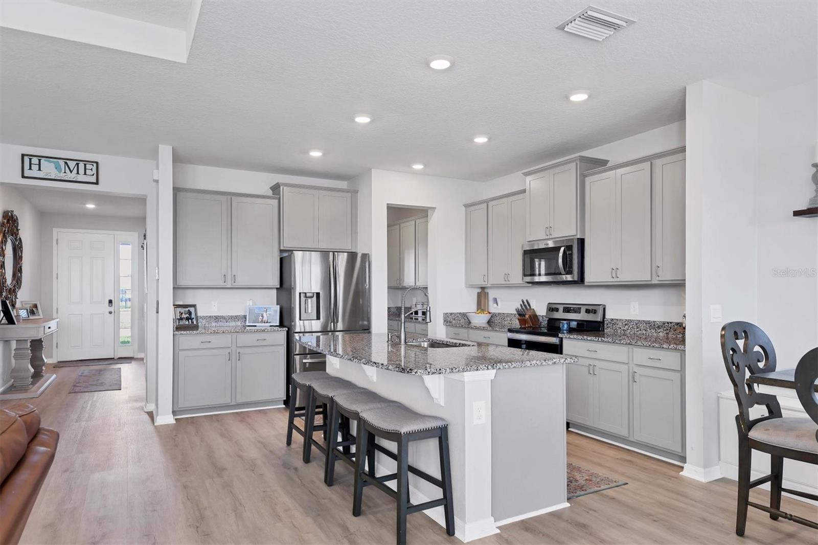 Localizado na altamente procurada comunidade de Silverstone North de Palmetto, Flórida, esta encantadora casa unifamiliar, construída em 2021, combina perfeitamente o conforto moderno com uma atmosfera acolhedora e convidativa. Com 4 quartos espaçosos e 3 banheiros espalhados por 3.313 pés quadrados, esta propriedade oferece amplo espaço para a vida familiar e o entretenimento. Entre para descobrir um interior cuidadosamente projetado, com piso de vinil de luxo durável e elegante em todas as áreas de estar, tornando -o bonito e fácil de manter. A planta baixa cria um fluxo contínuo entre os espaços, aprimorado por toques personalizados, como uma área de jantar aconchegante com embutidos personalizados, perfeitos para refeições em família ou reuniões casuais. Para quem trabalha em casa ou precisa de um espaço dedicado, o escritório privado com mesas e prateleiras embutidas oferece um retiro tranquilo e funcional. A cozinha é o coração da casa, com elegantes bancadas de pedra, muito armazenamento e um layout que facilita a preparação das refeições. Os armários de Walk-in fornecem soluções de armazenamento generosas, e a garagem anexa de 2 carros acrescenta ainda mais conveniência. A casa fica na rua tranquila, terminando em um beco sem saída e recua para um grande lago comunitário com um recurso sereno de água. Como parte da comunidade de Silverstone North, você terá acesso a comodidades incríveis, incluindo uma piscina espumante, uma cabana, uma trilha panorâmica e um lote. A localização do bairro é imbatível, a poucos minutos de restaurantes com melhor classificação, campos de golfe, parques, atrações culturais, lojas de compras, trilhas naturais, praias mundialmente famosas e a pitoresca Bradenton Riverwalk. Esta casa é mais do que apenas um lugar para se viver; É um lugar para fazer memórias duradouras. Agende sua visita hoje e veja por que essa propriedade é a opção perfeita para você!