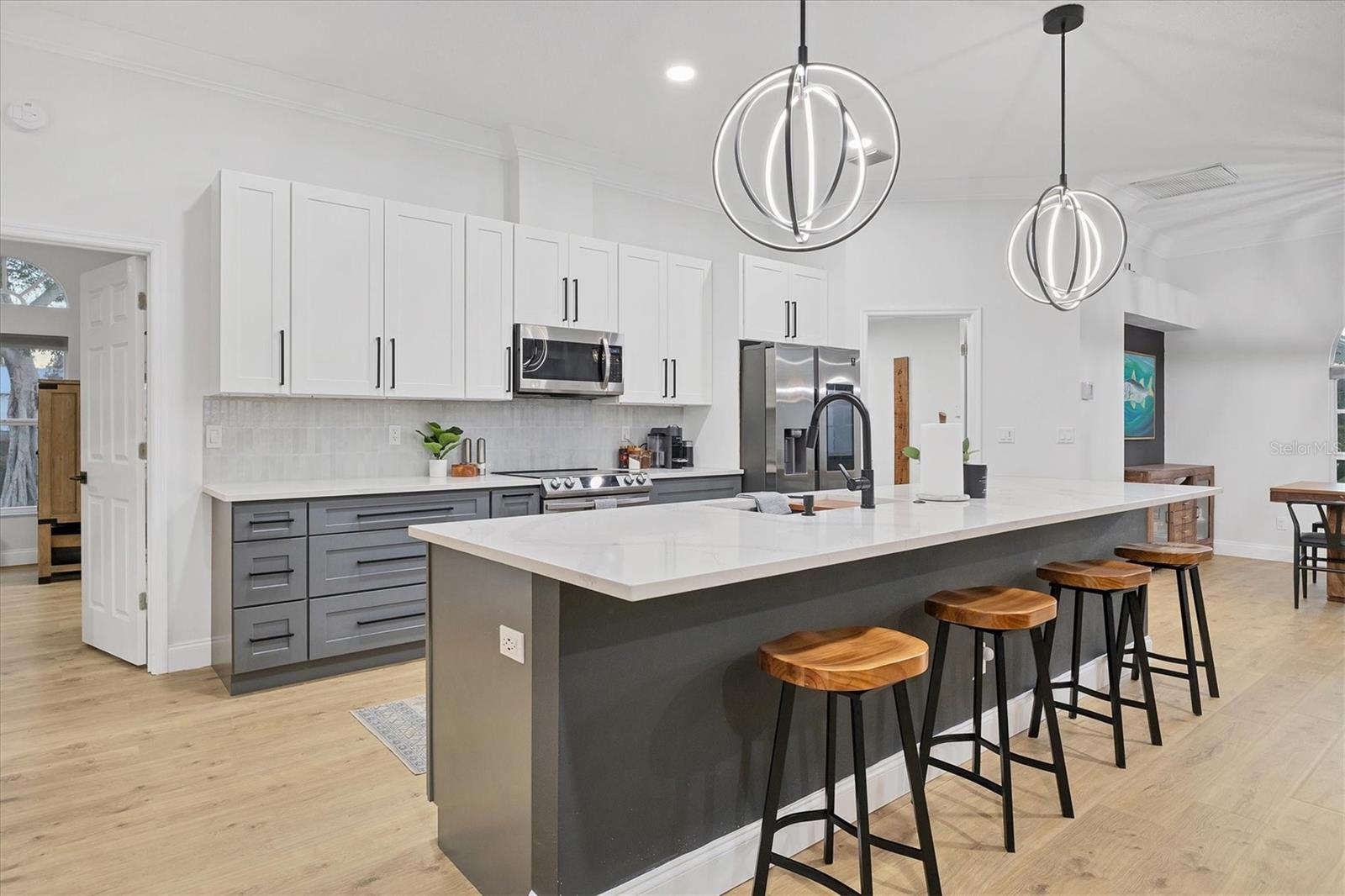 *** Voltar ao mercado devido ao financiamento dos compradores *** Não perca esta bela casa de movimentação na comunidade encantadora de Palmetto. Ao intervir, você apreciará a convidativa piso plano aberto, pisos laminados lindos, tetos altos e molduras da coroa. A cozinha recém -atualizada é completa com iluminação moderna, eletrodomésticos inoxidáveis, incluindo uma geladeira inteligente e uma ilha de grandes dimensões, ideal para hospedagem. Esta casa oferece três quartos, dois banheiros e uma sala de bônus/flexão versátil, ideal para um estúdio de arte, escritório em casa ou espaço para exercícios. Desfrute da liberdade de restrições sem escrituras, sem HOA e sem taxas de CDD, e barcos e trailers são bem -vindos. O lanai exibido é ideal para relaxar ou divertir. Experimente a conveniência de viver a poucos minutos da água. Devido à sua fundação de laje elevada, esta casa não sofreu nenhum dano nos dois furacões recentes, segundo o proprietário. Outras características incluem novo telhado em 2021, belo apelo de meio-fio, garagem para dois carros e lavanderia dedicada interna. Veja hoje!