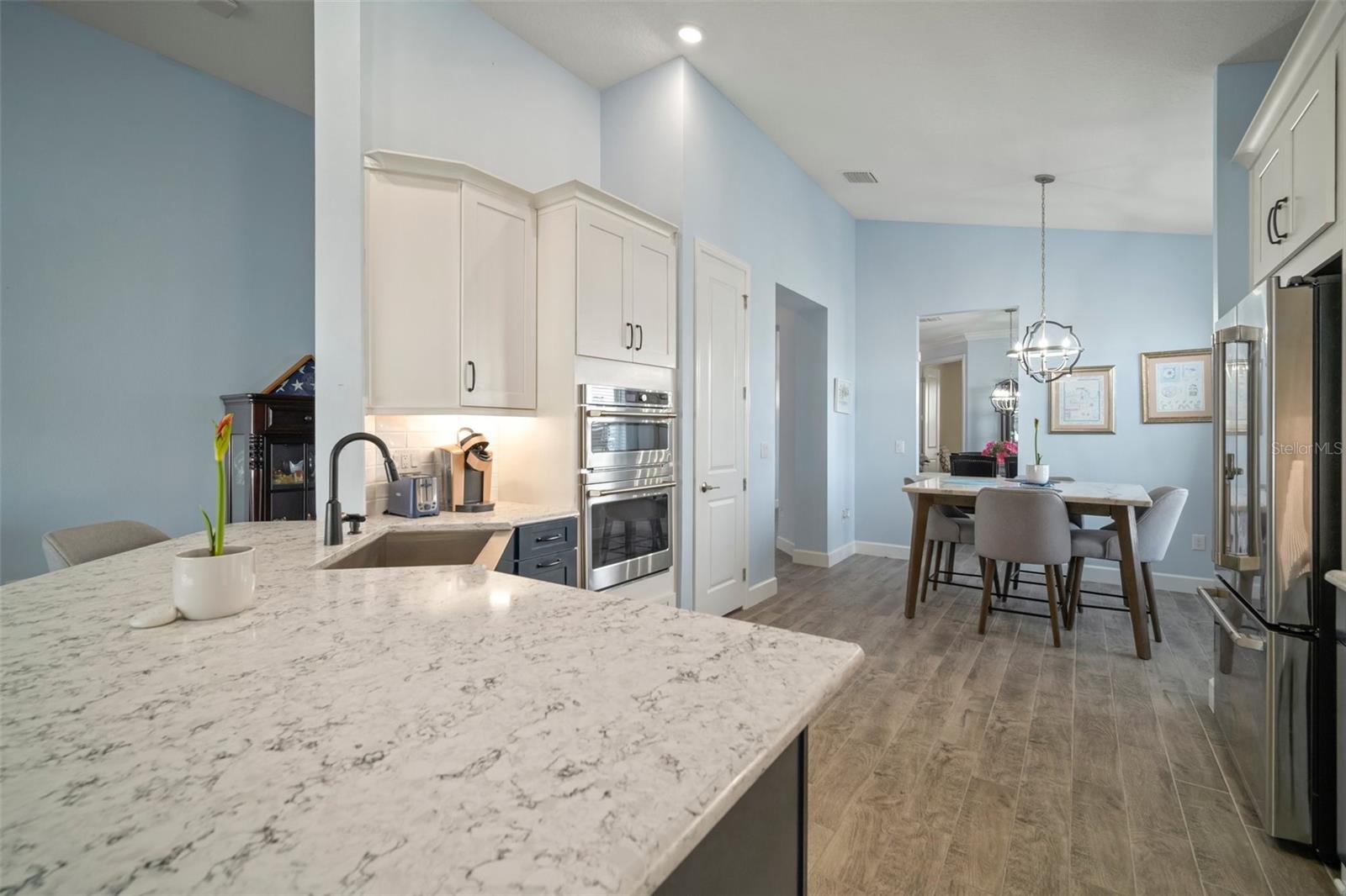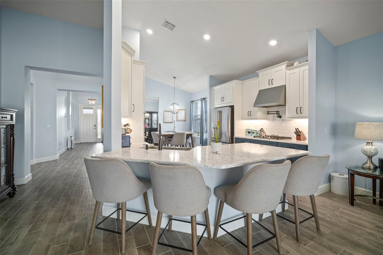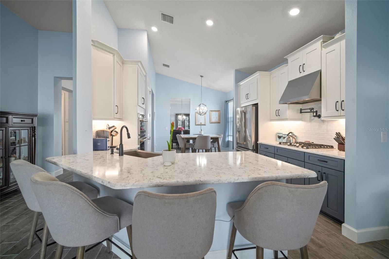 Bem-vindo ao Eaves Bend em Artisan Lakes, com a impressionante planta de piso de St. Thomas de Taylor Morrison. Ao chegar, você notará a expansiva garagem de três carros e paisagismo lindamente atualizado. Os aprimoramentos continuam em toda a casa. A cozinha a gás do chef possui aparelhos GE Café atualizados, incluindo um fogão de cinco queimadores com capuz, forno de parede e um forno de convecção/combinação de microondas. Ele também inclui uma pia de fazenda de aço inoxidável, bancadas de quartzo, preenchimento de panela e armários e gavetas de perto. Ambos os banheiros estão equipados com bancadas de quartzo, pias acima do balcão, torneiras atualizadas e armários e gavetas de perto. Na área de estar principal, você encontrará um piso de ladrilhos de cerâmica de tábuas de madeira, enquanto os três quartos apresentam carpete premium com proteção de proteção e teto Scotchgard. A sala inclui tons romanos com controle remoto para as portas de vidro deslizantes, o que leva a um pátio estendido. Este espaço ao ar livre é perfeito para entretenimento, completo com uma conexão a gás para uma grelha, uma geladeira e uma pia. A sala de jantar e a vitrine de cozinha atualizam os recursos de iluminação. Esta casa está equipada com um sistema de segurança vivant, um quintal cercado, um aquecedor de água sem tanques, um sistema de filtração de água em toda a casa e persianas de furacões. O bairro oferece acesso total a um clube recém -concluído, trilhas naturais, parques para cães, playgrounds, uma quadra de basquete e um campo de futebol. Os lagos artesanais estão convenientemente localizados perto da rodovia, fornecendo acesso rápido a São Petersburgo e Sarasota, juntamente com todas as atrações da região.