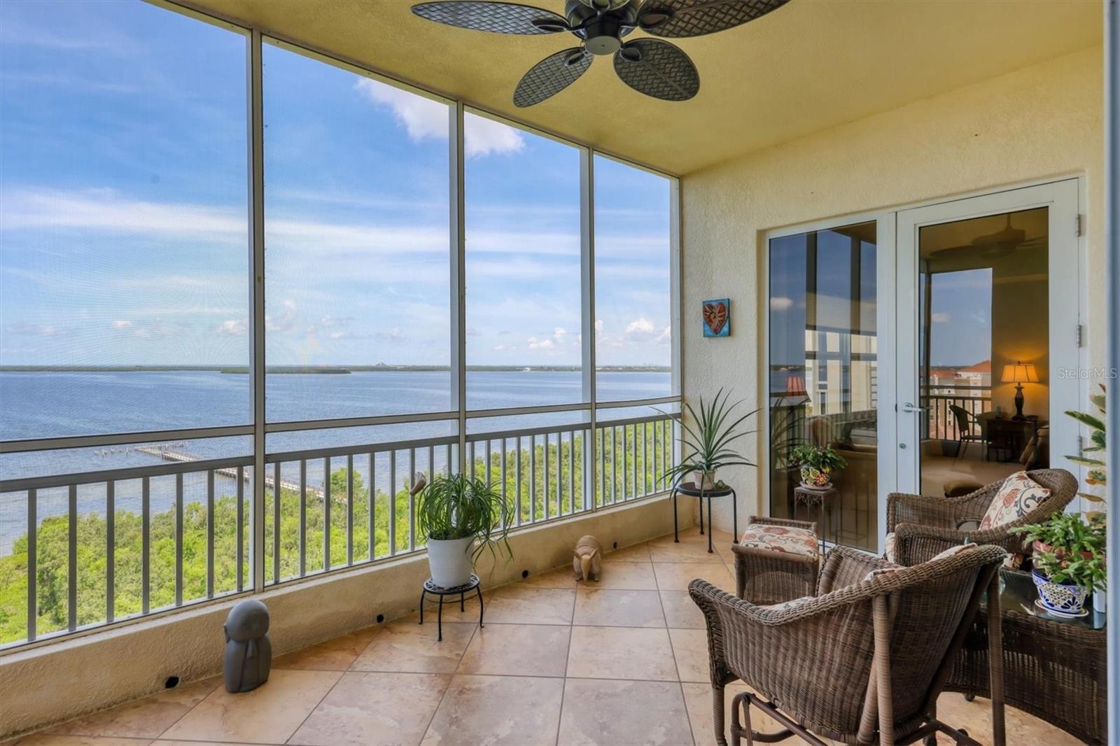 Pegue o pôr do sol espetacular e as vistas panorâmicas da água que permitem que você assista navios navegando sob a Lanai Selshine Skyway, a partir de seu lanai privado do 9º andar nesta luxuosa cobertura "Grand View", localizada na altamente procurada comunidade Terra Ceia Bay. Este espaçoso de 3 quartos + escritório/den, casa de 2,5 banheiros, oferece uma vida no estilo resort com elegância e conforto incomparáveis. Entre e seja recebido por tetos de 10 pés e controles deslizantes de impacto do chão ao teto que inundam a casa com luz natural e enquadre as vistas deslumbrantes. A planta baixa de conceito aberto oferece uma ampla área de estar, uma sala de jantar formal e um recanto de café da manhã aconchegante, perfeito para uma vida divertida e cotidiana. A cozinha do chef apresenta bancadas em granito, armários de madeira, uma grande despensa e utensílios de aço inoxidável-tudo o que você precisa para criar refeições memoráveis. Retire-se para a luxuosa suíte primária, completa com dois armários e um banheiro privativo inspirado em spa com uma banheira de jato, chuveiro separado e vaidades duplas. O layout de quartos divididos oferece a máxima privacidade para hóspedes ou família. Esta unidade inclui espaço de armazenamento extra no nono andar, além de uma garagem de um carro com armários de armazenamento adicionais. As comodidades adicionais incluem uma área de piscina bonita e privada completa com banheiros, chuveiro ao ar livre, spa, áreas de coleta, área de churrasco com assentos adicionais para piquenique e uma fogueira. Este condomínio fechado também inclui um píer de pesca e um calçadão de milha para apreciar o estuário e as vistas de mangue. Amenities with additional fees include, an 18-hole executive golf course, pickleball, tennis, full-service restaurant and pub, additional pool with tiki bar, fitness center, and many social activities to participate in. Located near the world-renowned beaches of Anna Maria Island, and within easy reach of the arts, dining, and shopping in Bradenton, St. Pete and Sarasota, this home offers a rare blend of tranquility, convenience, and Luxo.