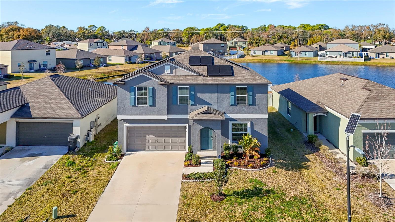 Bem-vindo a um dos melhores valores em Palmetto, Flórida. Construída em 2023 com mais de 2.500 pés quadrados, esta casa de quatro quartos e dois banheiros e meio oferece construção moderna, um layout funcional e um terreno tranquilo com vista para o mar, tudo por menos de US$ 400.000 no condado de Manatee. No interior, o design de conceito aberto conecta a cozinha, o jantar e a sala de família para uma vida cotidiana perfeita e divertida. A cozinha apresenta acabamentos modernos, backsplash de designer recentemente adicionado, amplos armários e uma grande ilha central. A luz natural preenche o espaço e chama a atenção para as vistas tranquilas do lago. Uma sala de bônus flexível perto da entrada funciona perfeitamente como home office, sala de jantar, academia ou sala de jogos, com um lavabo conveniente no primeiro andar. No andar de cima, um loft espaçoso oferece espaço adicional, enquanto todos os quatro quartos estão situados de forma privada no segundo nível. A suíte principal oferece um banheiro privativo bem equipado e um amplo closet. Os restantes quartos partilham uma casa de banho completa e proporcionam flexibilidade para familiares ou convidados. Nos fundos, pavimentações de pátio recentemente adicionadas expandem seu espaço de entretenimento ao ar livre, tudo com vista para um lago tranquilo que adiciona privacidade e vistas abertas. Localizado em Palmetto, FL 34221, com acesso rápido à I 75, você está a poucos minutos do Lakewood Ranch, do Ellenton Premium Outlets, do centro de Bradenton e a uma curta distância de carro das praias da Ilha Anna Maria. Lojas, restaurantes e conveniências diárias estão por perto. Construções mais recentes com esse tamanho, número de quartos, lote com vista para o mar e faixa de preço são cada vez mais raras no condado de North Manatee. Agende sua exibição privada hoje e experimente o valor por si mesmo.