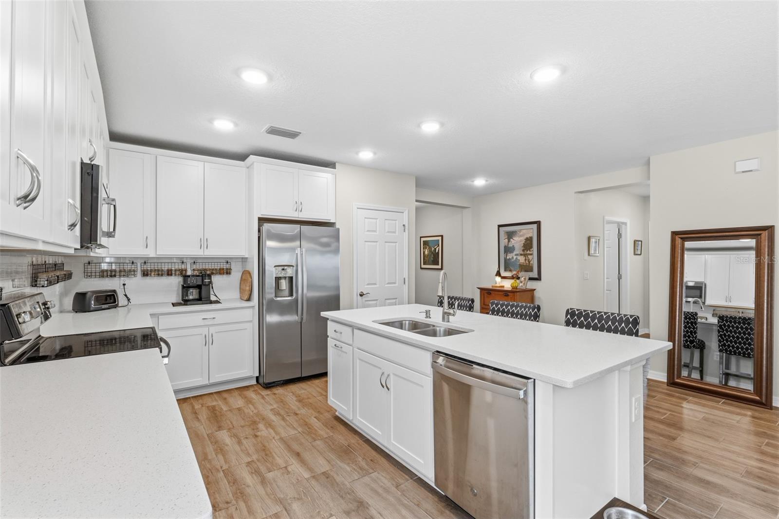 Bem-vindo ao 5418 Badini Way, onde design inteligente, atualizações de qualidade e ambiente sereno se unem para criar uma experiência de vida excepcional. A partir do momento em que você chega, o paisagismo tropical exuberante e a atratividade convidativa dão o tom. No interior, uma planta aberta e cheia de luz apresenta piso de cerâmica de design, tetos de bandeja e ventiladores de teto atualizados que melhoram o estilo e o conforto. A casa oferece uma ampla gama de melhorias, incluindo sistemas de armários personalizados, peitoris de janelas de mármore, calhas de chuva, calçada e pátio selados, proteção contra surtos em toda a casa, piso de garagem revestido de epóxi com armazenamento suspenso, varanda com tela e interior pintado profissionalmente. A popular planta baixa Palisades oferece um layout funcional e bem equilibrado. Um quarto quarto privativo está posicionado na frente da casa, enquanto dois quartos adicionais estão localizados em um corredor separado, oferecendo flexibilidade e privacidade. A área de estar central é ancorada por uma cozinha bem equipada com armários de 42 polegadas, eletrodomésticos atualizados, bancadas de quartzo e uma ilha espaçosa, ideal tanto para a vida cotidiana quanto para entretenimento. As áreas de jantar e as grandes salas fluem perfeitamente e se abrem para uma ampla varanda com tela, projetada para maximizar a vida interna e externa. Com vista para uma reserva privada e um quintal cercado, este ambiente tranquilo é perfeito para relaxar ou receber hóspedes. A suíte principal fica escondida na parte traseira da casa, oferecendo um retiro tranquilo com vistas tranquilas, um espaçoso banheiro privativo com box amplo e um closet personalizado. Localizados dentro do condomínio fechado de Trevesta, os moradores desfrutam de uma variedade de comodidades, incluindo piscina estilo resort, academia, clube, trilhas para caminhada e áreas recreativas. O acesso conveniente às principais rodovias facilita o acesso a lojas, restaurantes e praias da Costa do Golfo. Esta casa bem conservada apresenta uma excelente oportunidade para desfrutar de conforto, conveniência e do estilo de vida da Flórida em um ambiente lindamente projetado.