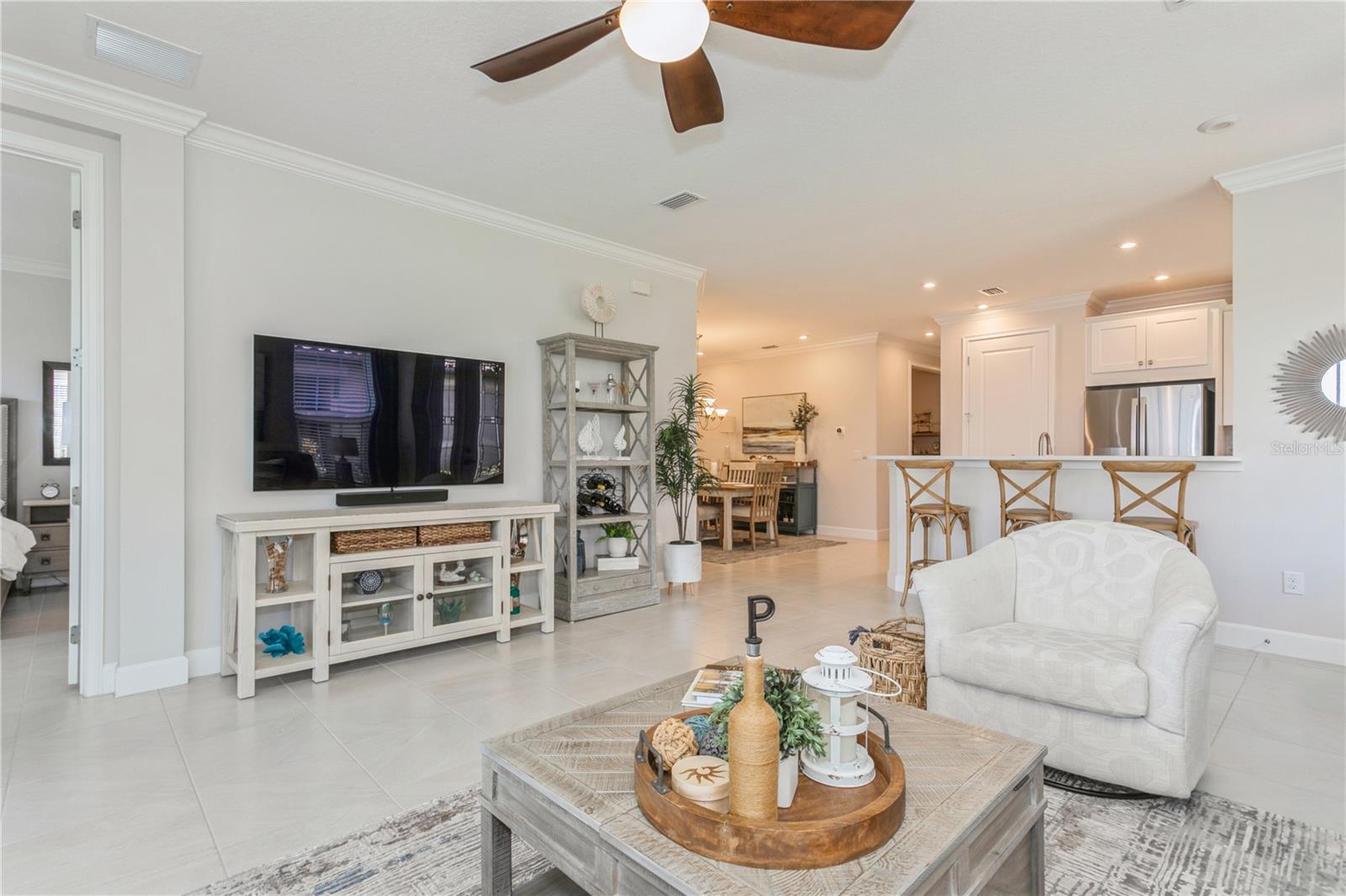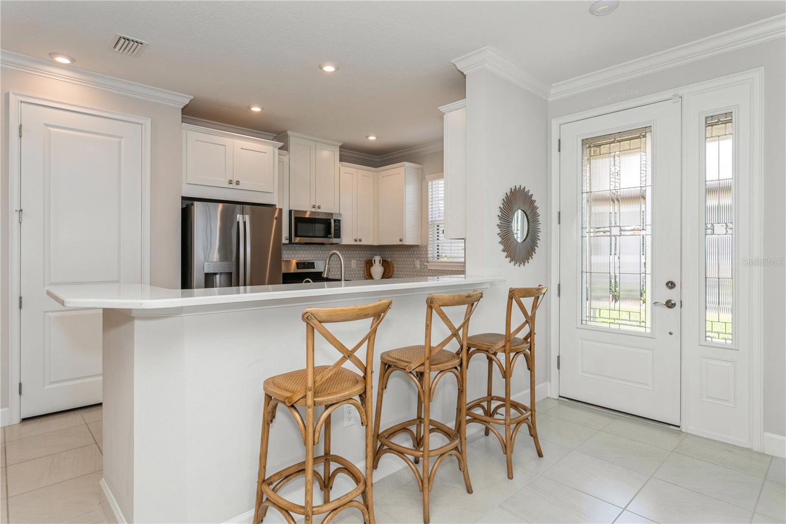 Bem -vindo ao estilo resort que vive no seu melhor no altamente desejável comunidade fechado na Esplanade of Artisan Lakes! Esta villa sem manutenção pareada intocada fica em um lote principal! Ao entrar na casa, você será cativado pela abertura da planta com tetos altos, ladrilhos de cerâmica por toda parte, portas de 8 pés e moldagem por coroa! A espaçosa sala de estar possui deslizantes triplos que levam a um lanai estendido com uma das vistas mais desejáveis da água nesta comunidade de Esplanade! A cozinha gourmet com vista para a sala encantará o chef da casa com utensílios de aço inoxidável, backsplash de ladrilhos atualizados e bancadas de quartzo. A sala de jantar de grandes dimensões da cozinha faz desta área o sonho de um artista! O quarto principal com privilégio inclui um chuveiro sem moldura, pias duplas, bancadas de quartzo e um closet muito espaçoso. No extremo oposto da casa, há um quarto secundário para os hóspedes com segurança, outro meio banho e um escritório/covil de grandes dimensões com controles deslizantes de bolso que fornece privacidade extra. A lavanderia foi atualizada com uma pia de utilidade e armários para armazenamento extra. A garagem é isolada, com pisos epóxi e muito espaço para nossos carros! Aproveite suas noites na Lanai estendida com pavimentadoras com vista para a extensa vista serena da água! A comunidade Esplanade oferece um coordenador de atividades no local, piscina de estilo resort com cabanas, spa e piscina de resistência, quadras de tênis e pickleball, academia moderna, bola de bocha, parque de cães e muitas trilhas para caminhada. Sua taxa HOA também inclui manutenção de quintal, TV a cabo e internet. A localização conveniente e fácil acesso a lojas, restaurantes e grandes rodovias tornam esta casa muito desejável. Agende uma visualização hoje e experimente o estilo resort viva em primeira mão!