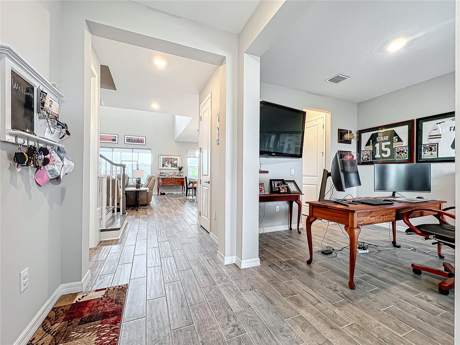 Situada na pitoresca Eave's Bend em Artisan Lakes, esta casa deslumbrante, com menos de um ano de idade, combina luxo moderno com design atencioso, perfeita para quem aprecia uma vida de qualidade. Com 4 quartos, 3,5 banheiros e um loft versátil e sala flexível que pode ser facilmente convertido em um 5º quarto, esta residência oferece espaço generoso para familiares e convidados. A suíte principal no primeiro andar garante comodidade e privacidade, com banheiro privativo lindamente decorado. A garagem é um verdadeiro trunfo, equipada com piso extra resistente, aspirador de parede instalado, suporte para cabo elétrico de 100 pés e lavadora de alta pressão, atendendo a todas as suas necessidades de manutenção e hobby. O espaço exterior é igualmente impressionante, com elegantes rebordos paisagísticos nos quintais da frente e de trás. O quintal é totalmente cercado por uma resistente cerca de alumínio com dois portões, oferecendo segurança e acessibilidade. Aqui, você encontrará uma vista serena do lago que proporciona um cenário tranquilo para sua vida diária. A casa foi projetada para relaxamento e entretenimento, com uma varanda protegida e um pátio de concreto estendido. A varanda é completa com churrasqueira, pia e geladeira, tornando-a um local ideal para cozinhar e jantar ao ar livre. Para o lazer, aproveite o conjunto de mesa de sinuca interna/externa e mesa de pingue-pongue, garantindo diversão para todas as idades. Suportes de TV em todos os cômodos permitem entretenimento personalizado em toda a casa. Esta propriedade excepcional em Eave's Bend em Artisan Lakes é uma joia rara, oferecendo uma mistura de comodidades modernas, vistas deslumbrantes e um ambiente comunitário vibrante. Não perca a oportunidade de chamar esta linda casa de sua!