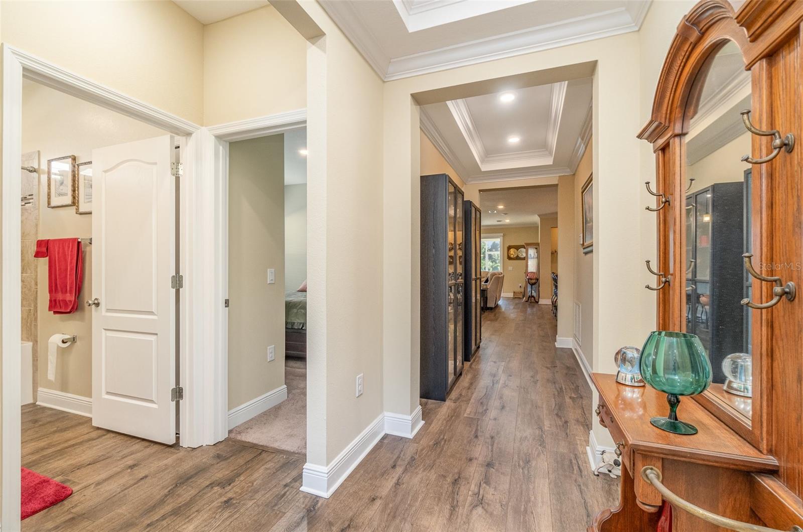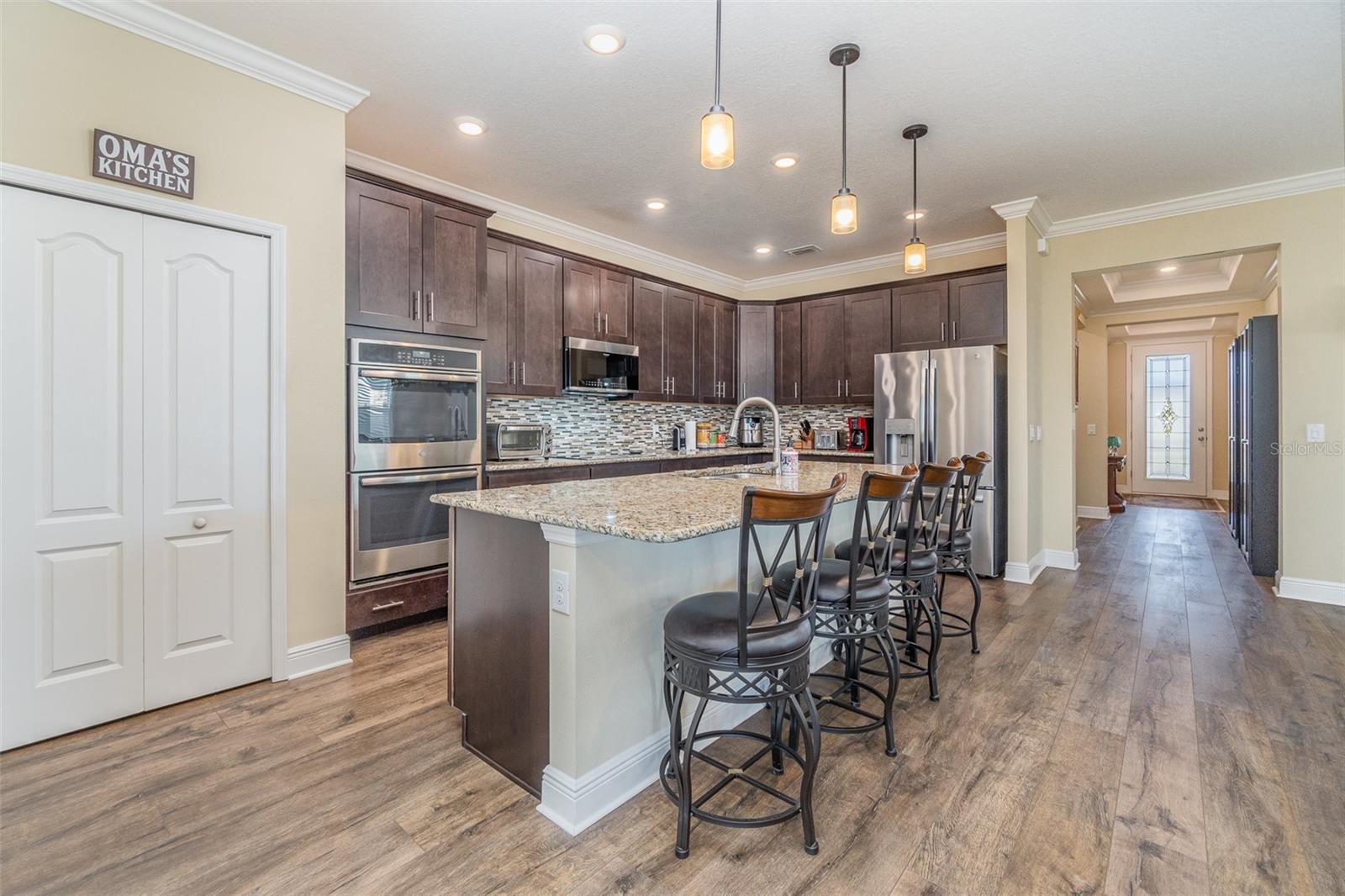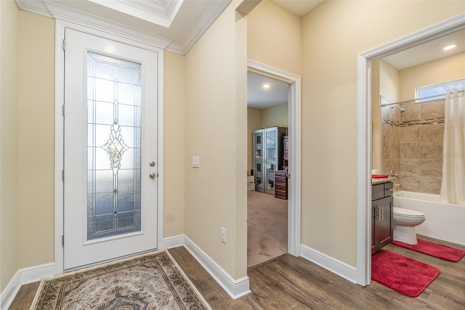 Esta linda casa de 4 quartos e 2 banheiros, construída em 2019, está pronta para morar e oferece uma variedade de atualizações e recursos! Situado num terreno completamente vedado com vista serena para o mar e sem vizinhos nas traseiras, irá desfrutar de muita privacidade. A fachada de pedra confere à casa um visual estiloso e elegante, enquanto a cozinha gourmet de design é o verdadeiro sonho de qualquer cozinheiro, completa com armários soft-close, grande despensa, bancada em granito e eletrodomésticos em aço inox. As principais áreas de estar e o quarto principal apresentam luxuoso piso de vinil com rodapés altos, enquanto os outros três quartos são acarpetados para maior conforto. A casa também possui tetos de 2,5 metros na sala de estar, no corredor e no quarto principal, dando-lhe uma sensação aberta e espaçosa. O quarto principal tem um grande closet, ventilador de teto, vista para o mar e um banheiro luxuoso com pias duplas, banheira de imersão e um chuveiro grande e lindamente revestido com três chuveiros, incluindo um chuveiro suspenso - perfeito para relaxar. Desfrute da vida ao ar livre na grande varanda dos fundos, perfeita para apreciar a vista para o mar enquanto se refresca na sombra. O espaçoso quintal cercado oferece muito espaço para uma piscina e espaço para seus amigos peludos correrem. Com uma conveniente planta dividida em 3 vias e uma lavanderia interna, esta casa tem tudo que você precisa para uma vida moderna. Localizado em um bairro tranquilo sem saída, sem trânsito, fica a apenas uma curta distância de carro da Skyway Bridge, do Ellenton Outlet Mall e dos principais destinos culturais, como São Petersburgo, Lakewood Ranch e dos aeroportos internacionais de Tampa. Esta casa tem tudo: privacidade, luxo e conveniência!