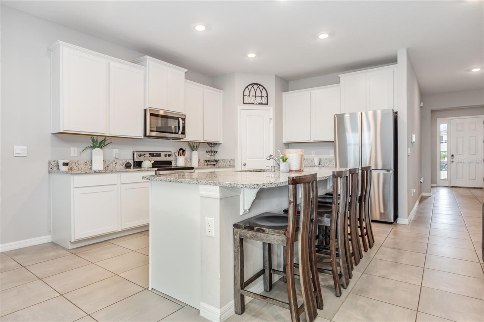 Bem-vindo ao 5620 Night Owl Terrace, uma casa de um andar lindamente projetada, aninhada na desejável Comunidade Norte de Silverstone de Palmetto, Flórida. Construído em 2022 por D.R. Horton, esta residência oferece 4 quartos, 2,5 banheiros e 2.045 pés quadrados de espaço de vida cuidadosamente planejado. O layout de conceito aberto da casa apresenta uma cozinha espaçosa equipada com utensílios de aço inoxidável, incluindo uma máquina de lavar louça, alcance e microondas. A cozinha flui perfeitamente para as grandes áreas de estar e jantar, criando um espaço ideal para entreter ou relaxar com a família. As portas deslizantes levam a um lanchone coberto com uma bela vista para o lago, perfeita para desfrutar do estilo de vida ao ar livre da Flórida. A suíte primária está situada na parte de trás da casa, oferecendo privacidade e tranquilidade. Inclui dois closet e um banheiro privativo com bancadas de pedra. Na frente da casa, dois quartos adicionais compartilham um banheiro completo, enquanto um quarto quarto pode servir como quarto de hóspedes ou cova opcional. Um banho de pó conveniente e lavanderia da garagem completam o interior. As comodidades comunitárias aprimoram a experiência de vida, com um playground e piscina. Localizados perto da I-75, os moradores têm fácil acesso a escolas locais, compras, refeições e belas praias da Costa do Golfo