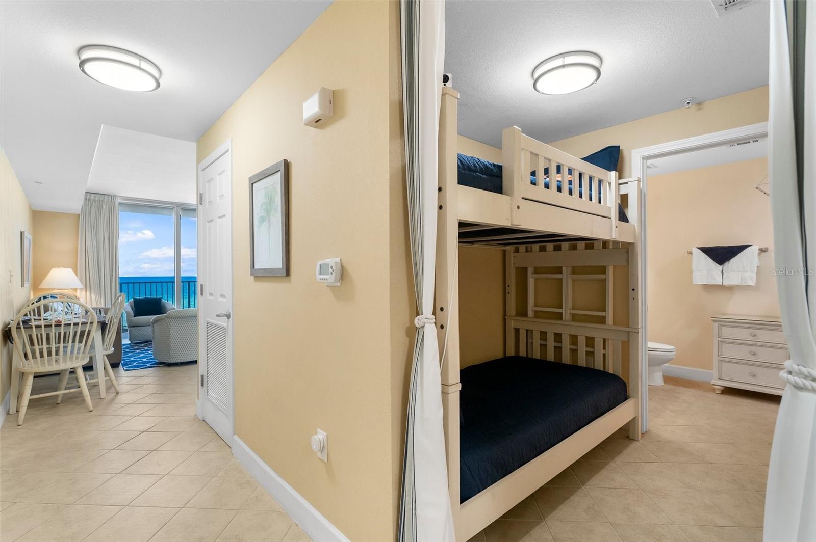 Não procure mais! Vistas de tirar o fôlego esperam você no Tidewater Beach Resort. Este condomínio completo de 2 quartos e 3 banheiros está localizado no 4º andar, onde você obtém o melhor dos dois mundos: piso alto o suficiente para apreciar a vista do oceano da sua varanda privada e perto de elevadores para facilitar o acesso para apreciar a praia com o Areia entre os dedos dos pés! Múltiplas comodidades diferentes, incluindo piscinas internas e externas, banheira de hidromassagem, sala de arcade, fitness center e muito mais, a apenas uma curta viagem de elevador. Localizado, 2 andares acima da ponte de caminhada até a garagem oferecem acesso fácil para explorar as vistas, restaurantes e experiências de Panamá City Beach, como o Pier Park, nas proximidades. Totalmente mobiliado, Turn-tly-Key, Rental pronto! Nova lavadora/secadora empilhada, novo vizio 75 "Classe V-Series 4K UHD LED TV inteligente, novos ventiladores de teto modernizados, novas luminárias LED, New Moen Magnetix Handheld/chuveiro de chuva, bloqueio de porta de código de código de código. Esta unidade pode dormir 8 convidados, com os 2 quartos, a área de beliche e o sofá -dormir.