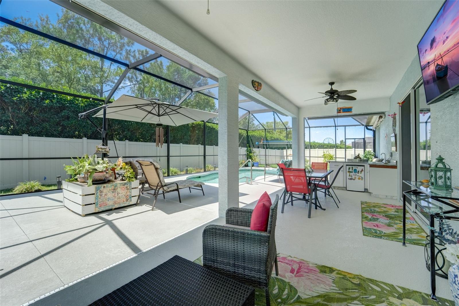 Esta residência com piscina de design requintado exala uma sensação de opulência e exclusividade, oferecendo muita privacidade em um ambiente pitoresco. Situada em uma ampla área residencial premium totalmente cercada que abrange 1/3 de acre, a propriedade é adornada com uma variedade de árvores frutíferas exuberantes, incluindo manga, banana, limão e coco, criando um oásis tropical. O meio-fio personalizado e a iluminação paisagística melhoram o exterior, enquanto uma varanda estendida e uma espaçosa área de piscina com bar embutido proporcionam o espaço perfeito para entretenimento luxuoso e reuniões familiares. O interior desta casa é uma vitrine de elegância e sofisticação moderna, com uma planta espaçosa que permite que a luz natural destaque os espaços de convivência. A cozinha é uma obra-prima da culinária, com bancadas de granito, eletrodomésticos de aço inoxidável, armários de madeira, backsplash de vidro e uma grande despensa. Um sistema de tratamento de água e um sistema de osmose agregam comodidade e luxo à casa. A casa inclui um escritório lindamente decorado com estantes embutidas, enquanto os azulejos e o luxuoso piso de vinil garantem fácil manutenção e um toque de requinte. O quarto principal possui um closet grande com organizadores, oferecendo amplo espaço de armazenamento. No exterior, uma piscina aquecida de água salgada proporciona um retiro sereno para relaxamento e diversão, rodeado por uma paisagem exuberante para o máximo isolamento. Esta excepcional casa com piscina oferece uma rara combinação de estilo, conforto e conveniência, tornando-a uma verdadeira joia que certamente impressionará. Piso epóxi NOVO na garagem. Localizado a poucos minutos de lojas, restaurantes, Ft. Hammer Bridge, campos de golfe e praias de renome mundial, esta propriedade resume o que há de melhor na vida de luxo. Não perca a oportunidade de personalizar esta deslumbrante residência, pois ela está destinada a cativar e encantar nos próximos anos.