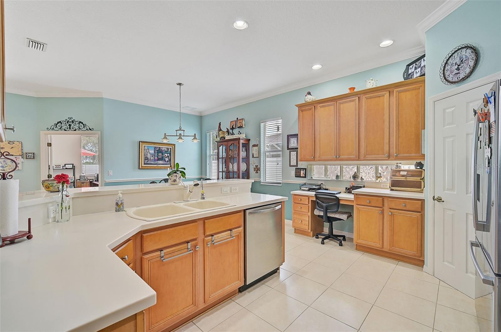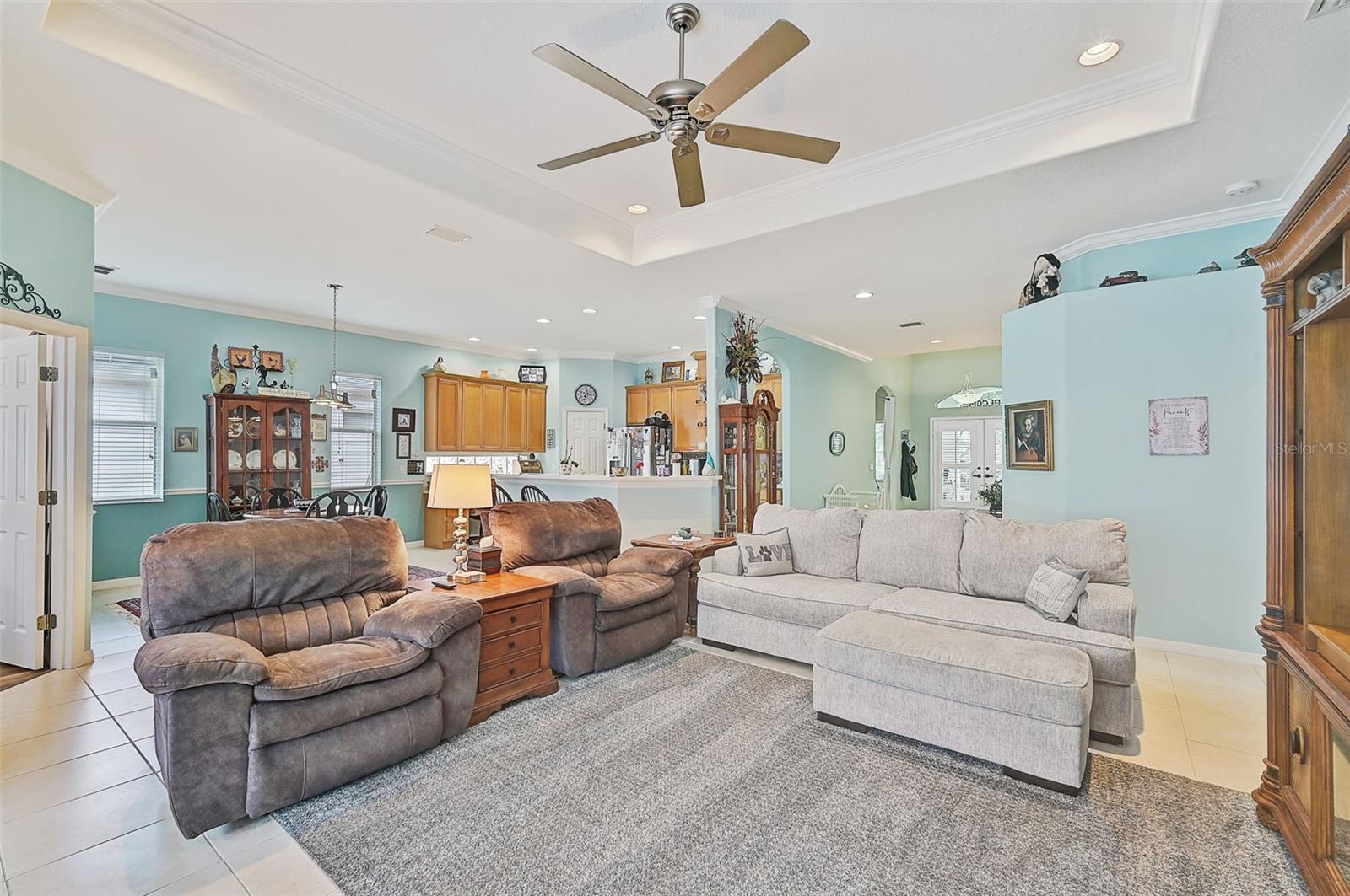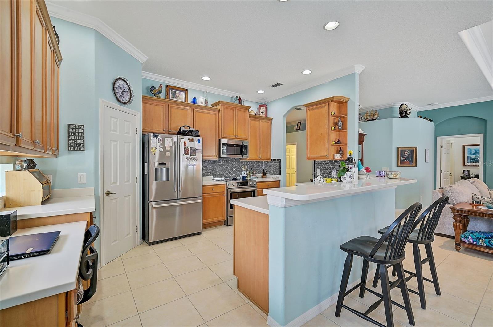 ** Oportunidade maravilhosa ** Esta casa encantadora oferece uma planta aberta e uma configuração de quarto dividido, composto por 3 camas + escritório/den, 2 banheiros e garagem de 3 carros em um terreno de mais de um quarto de hectare! This wonderfully appointed home features a spacious kitchen with solid wood cabinets and stainless steel appliances, impressive primary bedroom suite with multiple walk-in closets, custom-tiled shower, soaking garden tub and dual vanities, tile and luxury vinyl plank flooring, crown moldings, etc. The Spacious and PRIVATE backyard features a NEW 6ft Vinyl Fence (2023) and additional 12ftx45ft Open Air Patio (2023). Outras atualizações recentes incluem novo telhado (2022), aquecedor de água (2024), interior e exterior recém-pintados (2023), calhas (2023), etc. Chelsea Oaks é uma comunidade fechada e segura que oferece fácil acesso a distritos de varejo próximos, I-75, as praias mais bem classificadas da área, e muito mais! ** deve ver **