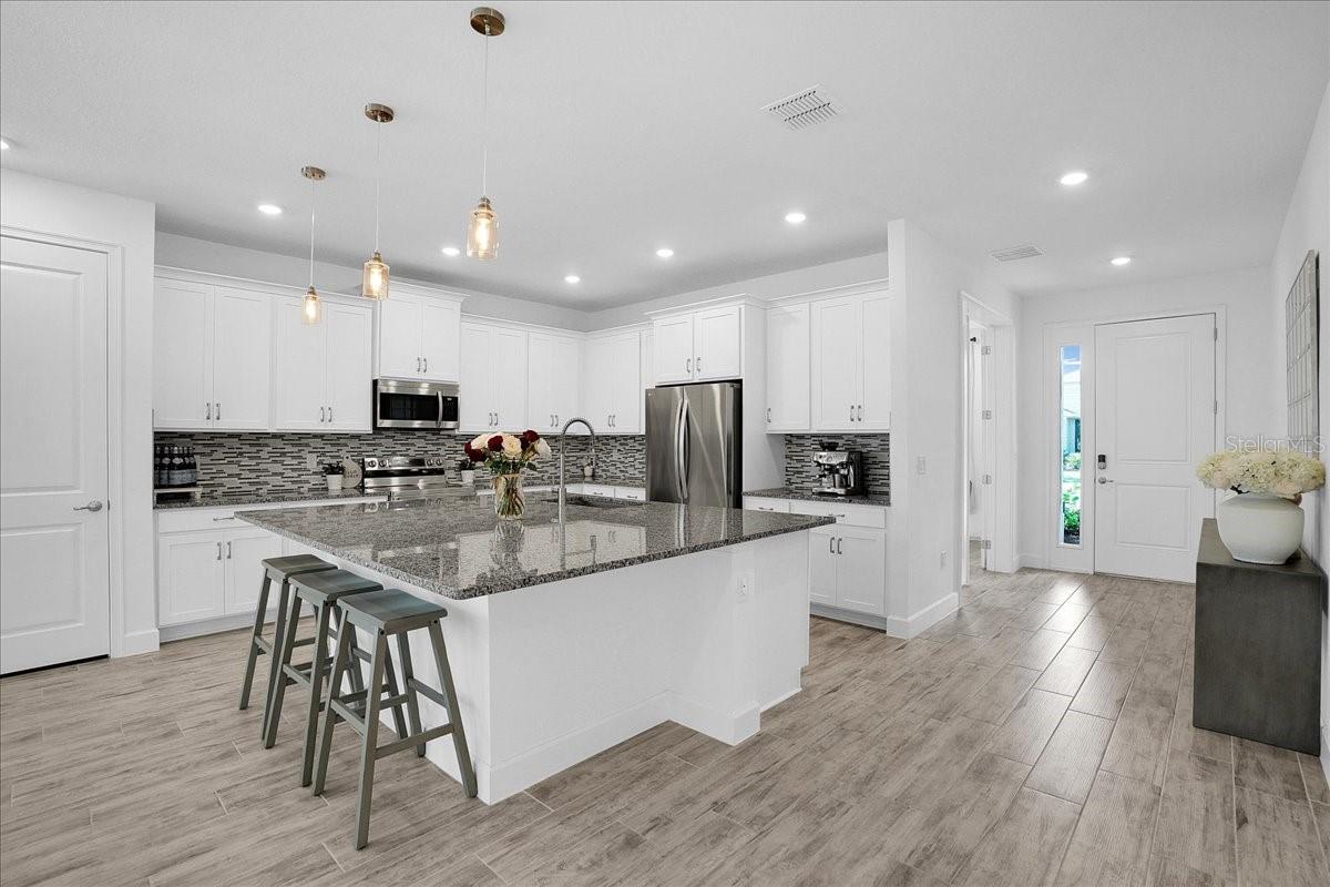 Impressionante casa de 4 quartos em North River Ranch-seu sonho aguarda!? Entre na elegância com este belo modelo de Hampton da Park Square, construído em 2022. Com 2.375 pés quadrados de espaço de vida cuidadosamente projetado, esta casa apresenta 4 quartos espaçosos, 3 banheiros luxuosos e um escritório/deno versátil ideal para trabalho remoto ou relaxamento silencioso. No coração da casa fica uma cozinha gourmet, completa com armários de 42 polegadas cobertos com elegantes molduras de coroa-um sonho para qualquer chef ou artista. A expansiva planta aberta é perfeita para hospedar, enquanto a grande suíte primária oferece um retiro sereno com um teto de bandeja, um closet de grandes dimensões e um banheiro em suíte, semelhante a um spa, com pias duplas, bancadas de quartzo e um grande chuveiro. Desfrute de uma vida elevada com tetos altos de 9 pés, portas atualizadas de 8 pés e pisos elegantes de azulejos por toda parte-nenhum tapete à vista. As expansivas portas de vidro deslizantes levam a um lanai selecionado e a um oásis de quintal para paisagismo recentemente, onde as palmeiras exuberantes criam um cenário tropical privado, perfeito para relaxar, divertir ou imeritar o sol da Flórida. A vida no estilo resort com taxas baixas de HOA aguarda em North River Ranch, oferecendo duas piscinas brilhantes, um centro de fitness de última geração, parque de cães, campos de futebol, trilhas para caminhada e vários playgrounds. Camp Creek, um centro inspirado em alojamento com uma sala de estar aconchegante, café, escritório de negócios, espaços de trabalho e uma piscina refrescante. Não perca a chance de possuir esta casa deslumbrante em uma das comunidades mais vibrantes da região. Programe sua turnê hoje e comece a viver o estilo de vida que você merece!
