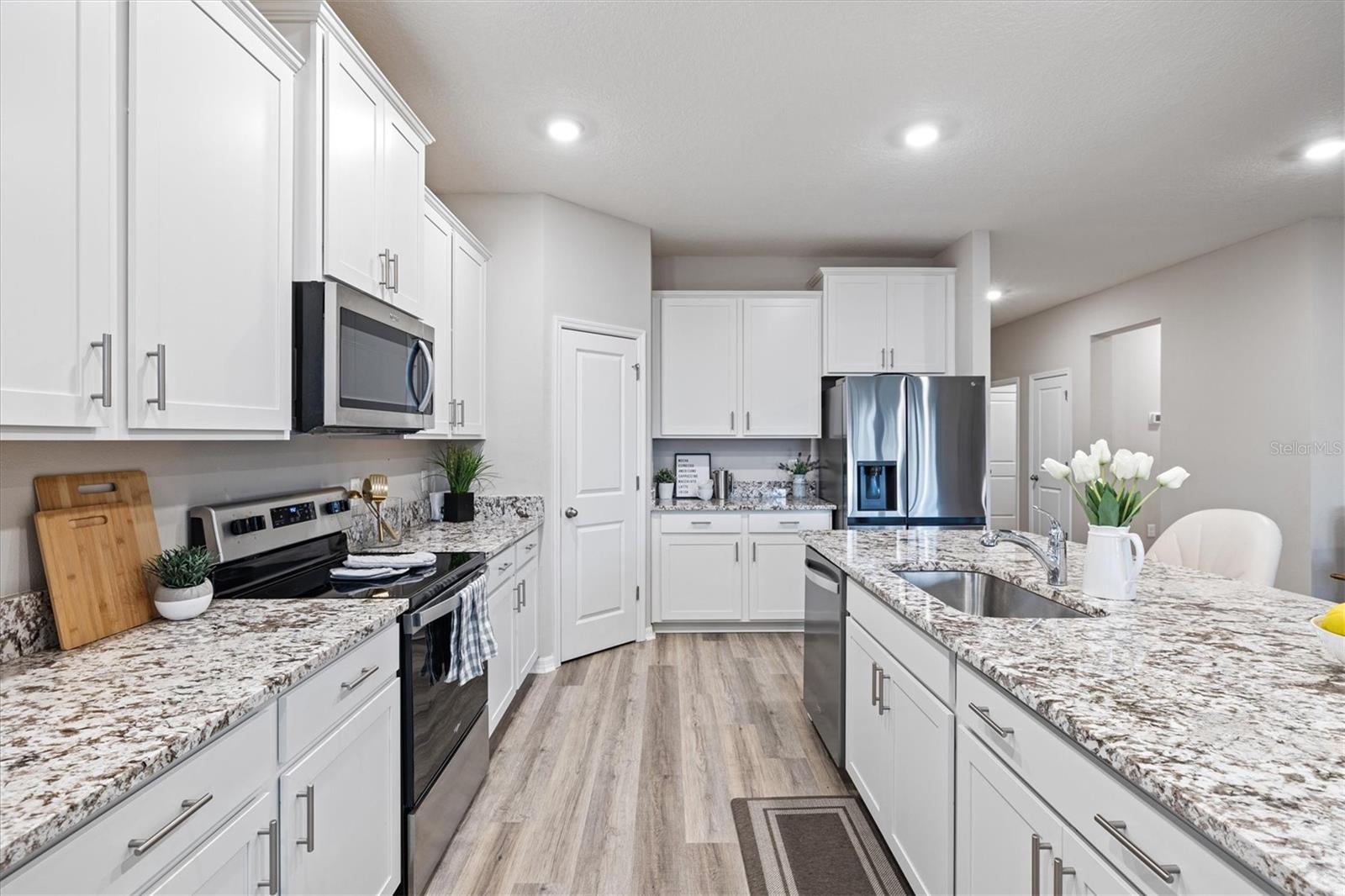 Bem-vindo a este modelo Lantana melhor do que o novo 2022 na comunidade Bella Lago, procurada! Este impressionante 4 quartos, 2,5 banheiros, 2.045 m². Ft. A casa está repleta de atualizações e oferece vistas serenas para a privacidade final. Entre para encontrar um layout de conceito aberto com tetos altos e pisos de vinil de luxo por toda parte. A cozinha possui bancadas de quartzo, armários brancos, aço inoxidável. Aparelhos, despensa e uma grande ilha central, perfeita para entretenimento. A espaçosa suíte primária inclui um luxuoso banheiro privativo, com vaidades duplas, um grande closet, um chuveiro de azulejos e banheira de imersão. Desfrute de paz de espírito com proteção de onda doméstica inteira e um sistema de filtragem de água inteira! Saia para a Lanai examinada e aprecie as vistas tranquilas da reserva. O quintal é perfeito para relaxamento, animais de estimação ou divertido. Viver em Bella Lago significa acesso a comodidades em estilo resort, incluindo um clube, academia totalmente equipada, duas piscinas, um playground e um parque para cães. Esta casa está pronta e não vai durar muito! Ligue ou envie uma mensagem hoje para agendar sua exibição privada antes de se for!