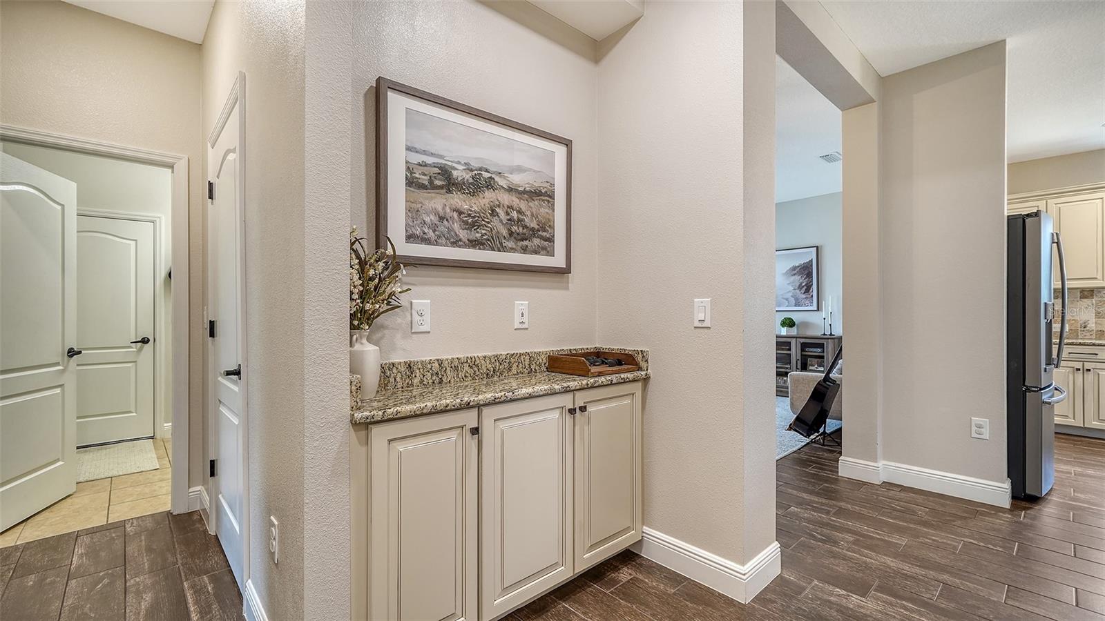 Bem -vindo ao seu sonho à beira do lago! Esta impressionante residência de 4 quartos e 2 banheiros fica em um lote exclusivo de .221 acres, com vistas deslumbrantes do lago. O exterior meticulosamente projetado possui uma encantadora varanda coberta e um espaçoso pátio traseiro exibido, perfeito para desfrutar do pôr do sol sereno à beira -mar. Entre e seja cativado pelo coração da casa - uma bela cozinha gourmet. Possui armários atualizados, aparelhos de aço inoxidável elegantes, bancadas de granito reluzentes, um backsplash de travertino, e não um, mas duas despensas de armazenamento. Um nicho de barra seca oferece o espaço perfeito para entretenimento, enquanto a iluminação embutida acrescenta elegância. A peça central é uma grande ilha de cozinha, tornando -a funcional e elegante. A cozinha flui perfeitamente para a sala de família aberta, onde portas de vidro de bolso deslizantes o convidam para o amplo pátio de tela. A partir daqui, desfrute de vistas pacíficas do lago que certamente impressionarão você e seus convidados. Não se esqueça da luxuosa suíte master, que é um verdadeiro retiro, com um fã de teto premium, armários de seus e hers e um banheiro parecido com um spa com vaidades duplas. No andar de cima, um loft versátil oferece inúmeras possibilidades - pode ser uma sala de jogos, escritório em casa ou sala de mídia, adaptada ao seu estilo de vida. Esta casa não é apenas sobre vida interna; Está repleto de comodidades comunitárias! Dê um mergulho na piscina e no spa, acenda a churrasqueira a gás na área de coleta da comunidade ou mantenha a forma no centro de fitness privado. Seus pequenos vão adorar a área de recreação e, para entusiastas do ar livre, quilômetros de trilhas naturais aguardam, perfeitos para passeios matinais ou jogadas noturnas. A comunidade também oferece uma quadra de vôlei de areia e um caiaque no rio pitoresco de centeio, fornecendo entretenimento interminável para toda a família. Localizado em um local privilegiado, você terá acesso fácil a Tampa, Sarasota e Bradenton, tornando esta casa não apenas um retiro, mas também um centro conveniente para todas as suas necessidades de estilo de vida. Com seu design impressionante, recursos da comunidade de primeira linha e localização imbatível, esta propriedade tem tudo o que você procura-e mais. Não perca a oportunidade de fazer com que este lago geme sua casa para sempre!