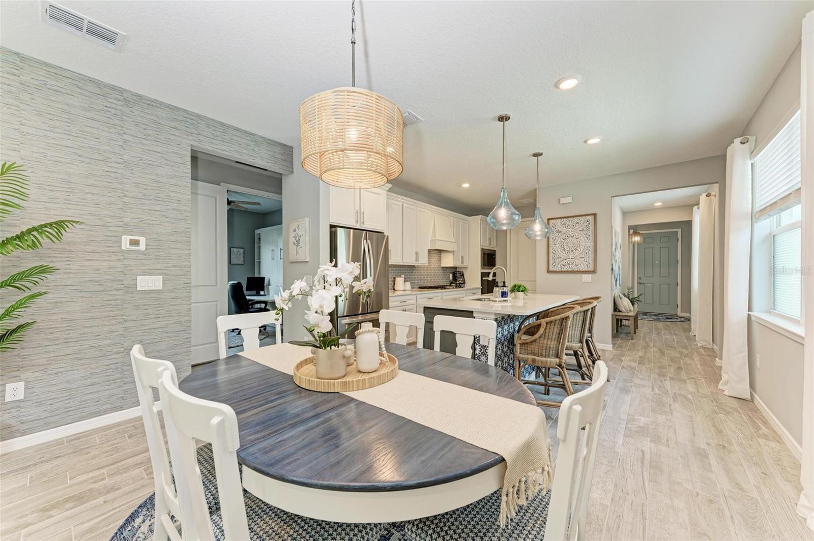 Bem -vindo ao Del Webb Bayview em Parrish, uma vibrante comunidade de mais de 55 anos, idealmente localizada a apenas 30 minutos de Tampa, St. Pete e Sarasota. Este requintado modelo Hallmark Home de Pulte oferece o estilo de vida perfeito da Flórida com comodidades de estilo resort, incluindo um restaurante comunitário e refeições à beira da piscina, além de diretores de estilo de vida em tempo integral para uma vida social ativa e envolvente. Esta casa lindamente atualizada de 3 quartos e 2 banheiros possui pisos de ladrilhos de prancha, janelas de impacto e ventiladores de teto. O layout aberto flui perfeitamente do hall de entrada para a cozinha arejada, jantar e sala de reuniões, todos levando a um lanei coberto equipado para uma cozinha ao ar livre. Relaxe na piscina aquecida com uma cachoeira e aproveite a conveniência da manutenção do quintal e da Internet de alta velocidade incluída no HOA. A cozinha é o coração da casa com bancadas de quartzo, eletrodomésticos atualizados e uma espaçosa ilha central. A suíte do proprietário particular oferece vistas da piscina, um closet e um banheiro luxuoso. Com recursos adicionais como um quarto de Den/3º com portas francesas, esta casa é perfeita para residentes em tempo integral ou para aqueles que procuram um retiro de inverno. Experimente luxo e conveniência nesta casa quase nova em Del Webb Bayview. Bem -vindo à sua nova comunidade!