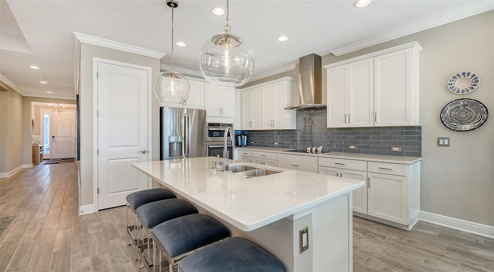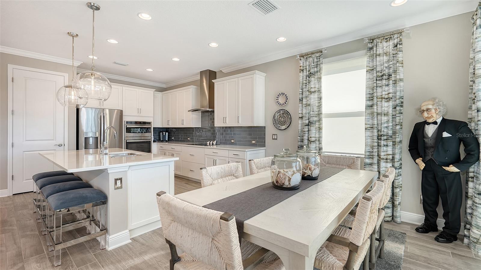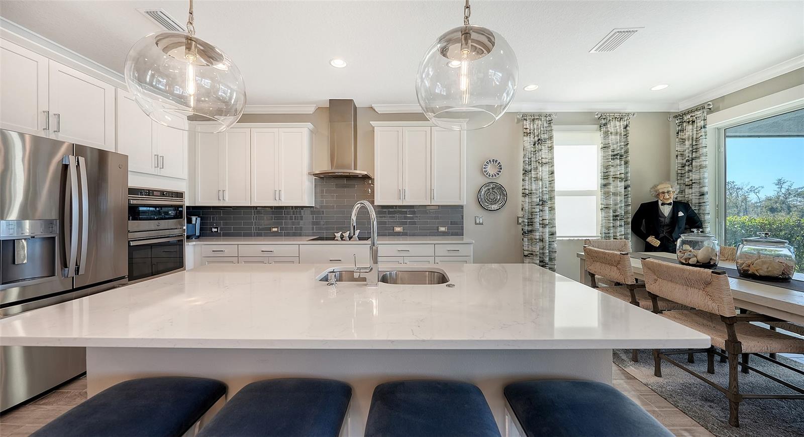 Melhoria de preços !! Não perca a oportunidade de fazer desta sua casa hoje !!! Sem taxas de CDD e baixos HOAs! Bem -vindo à comunidade desejável e distinta de rios gêmeos com lotes de propriedade. O modelo de cristal é uma elegante casa premiada, na chegada, você notará imediatamente a encantadora varanda da frente e um apelo de meio-fio convidativo. Esta bela casa costeira inclui quatro quartos, três banheiros completos e uma enorme cozinha gourmet de conceito aberto e uma sala grande com uma garagem de três carros. Ao caminhar pela porta da frente, você é recebido com um vestíbulo de detalhes de teto em mosaico personalizado e dois quartos com um banheiro completo, ideal para a família ou convidados que desejam seu próprio espaço. Caminhe-se ainda mais para a casa e entre na grande área de jantar da família, que se abre diretamente na cozinha gourmet com bancadas de quartzo, belos armários e utensílios de aço inoxidável equipados para atender à demanda de suas aventuras culinárias. As principais áreas de estar possuem ladrilhos de prancha, moldagem por coroa, iluminação de enlatadas e designers adicionais. A suíte primária fica no canto mais distante, dando a você máxima paz e privacidade. Ao intervir, você é recebido por uma área de refresco refinada e funcional projetada para elevar a vida cotidiana com armários personalizados, balcão de quartzo e um vinho embutido e geladeira de bebidas que proporcionam uma sensação luxuosa a essa adição única e convidativa. Desfrute do espaçoso closet com embutidos modulares, ideal para armazenamento duplo, um banho principal de luxo possui uma área de chuveiro fechada com belo telha ao teto, pias duplas com bancadas de quartzo e um armário de água separado. Entre na lanai espaçosa para uma piscina de TEC de seixos de água salgada aquecida e desfrute do pôr do sol espetacular ideal para uma experiência excepcional ao ar livre. Existem muitas atualizações para mencionar aqui, pergunte ao seu corretor de imóveis para a folha de recursos anexada. A comunidade oferece uma rampa de bar de barcos acessada para o River Manatee, a Community River House, duas docas, quadras de basquete e vôlei, campo de futebol, vários playgrounds, vários lagos, natureza, trilhas recreativas e quilômetros de calçadas, passeios de barco e caiaque para o rio Manatee, playgrounds, cortes atléticos e mais.