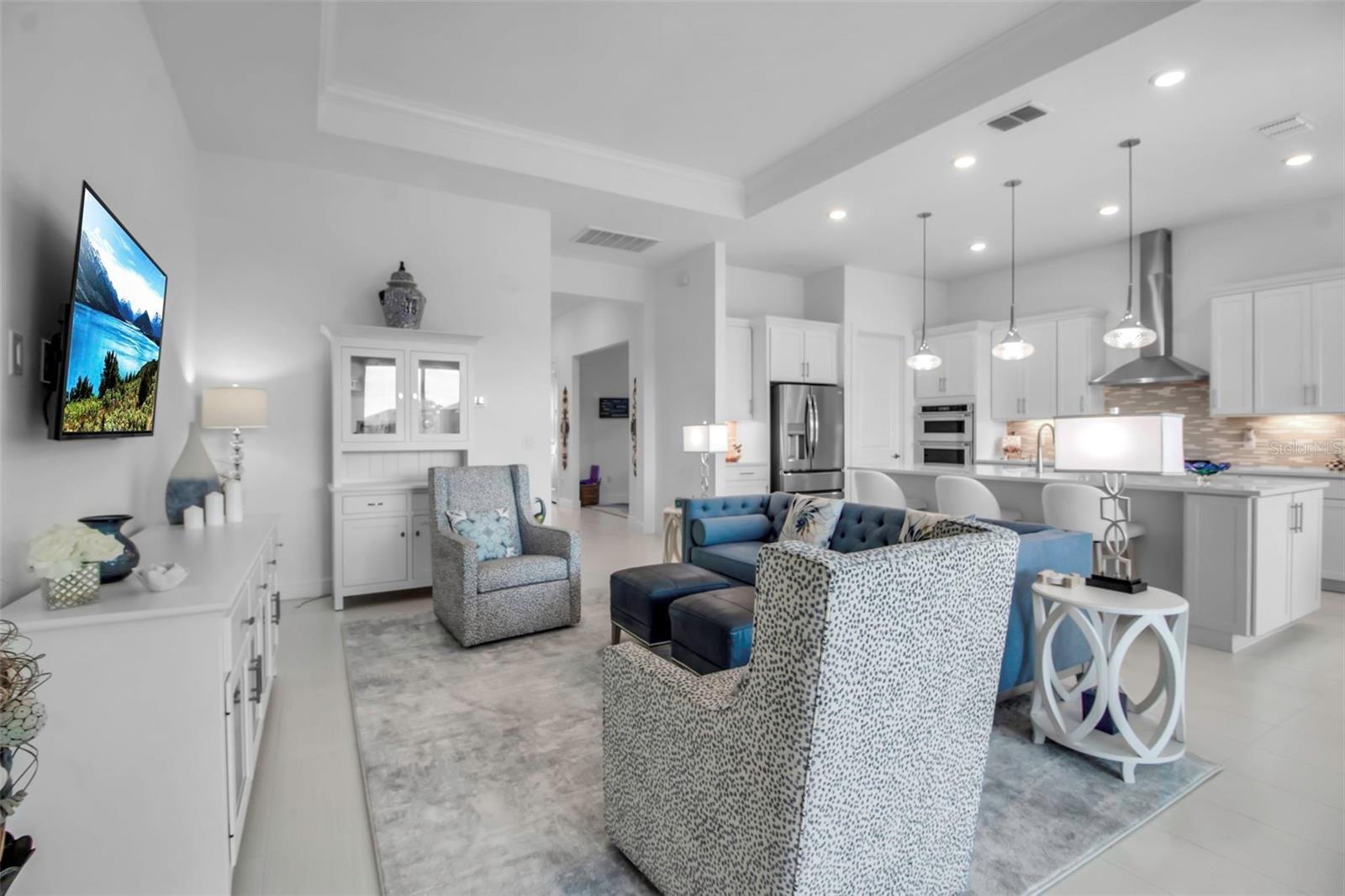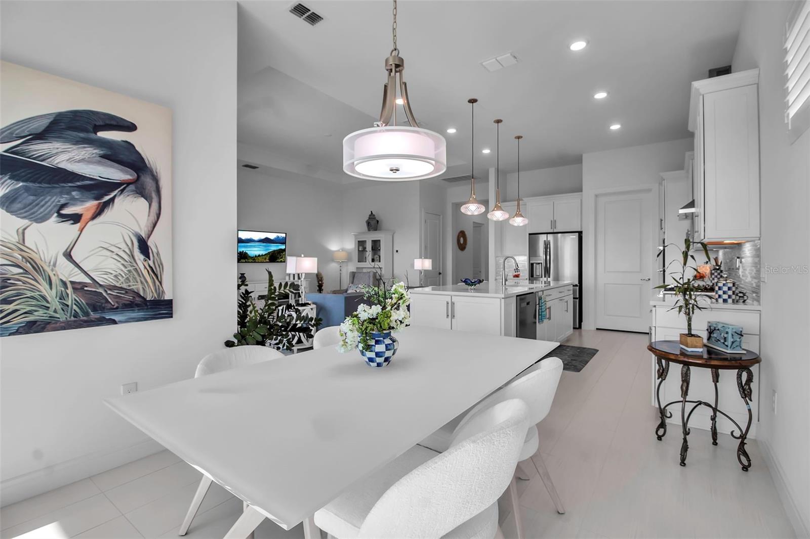 O que os vendedores amavam em sua casa? O pôr do sol especato, os armários dele e dela na suíte primária, proximidade do centro de amenidade e a leveza e abertura da sala de reuniões! A elevação do artesão, com uma varanda da frente altamente funcional, não transmite completamente o interior moderno e nítido desta casa de prestígio. Ao entrar na porta da frente, o hall de água alto e os ladrilhos largos e retangulares proporcionam uma sensação de espaço. A planta de prestígio é um espaço de dois quartos mais flexões, 2,5 banheiros que flui sem esforço de sala em sala. A cozinha possui armários com topo de quartzo, uma ilha de grandes dimensões, um forno de parede e microondas e um fogão a gás com um capuz de aço inoxidável, atendendo a cozinhar ou entusiastas. Os controles deslizantes duplos (café e sala de reuniões) permitem uma ampla luz do lado de fora, um lanai exibido convida o relaxamento. Todos os aparelhos, incluindo a lavadora e secadora, transmitem. A lavanderia é expansiva e apresenta um passe do armário primário. O piso da garagem é excepcional, verdadeiramente uma obra de arte! Situada a uma curta distância do clube de madeira e todas as suas comodidades, a localização desta casa oferece paz e tranquilidade incomparáveis. Se você ainda está pensando em comprar do construtor, talvez não saiba que os representantes dos construtores não o representam; Eles representam o construtor. Esta casa vem com garantias totalmente transferíveis, sem o incômodo de esperar por fornecedores de garantia. Os custos de fechamento são significativamente menores com uma revenda ligeiramente usada. Esta casa oferece 2080 pés quadrados de calma e serenidade. Não se esqueça da varanda encantadora, perfeita para sentar e conversar com os vizinhos.