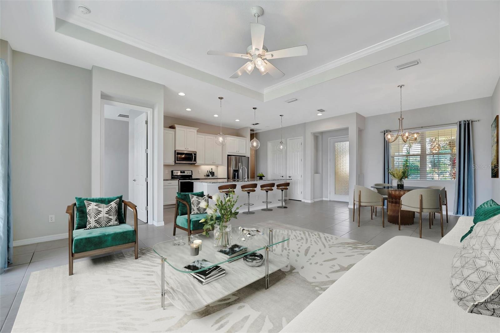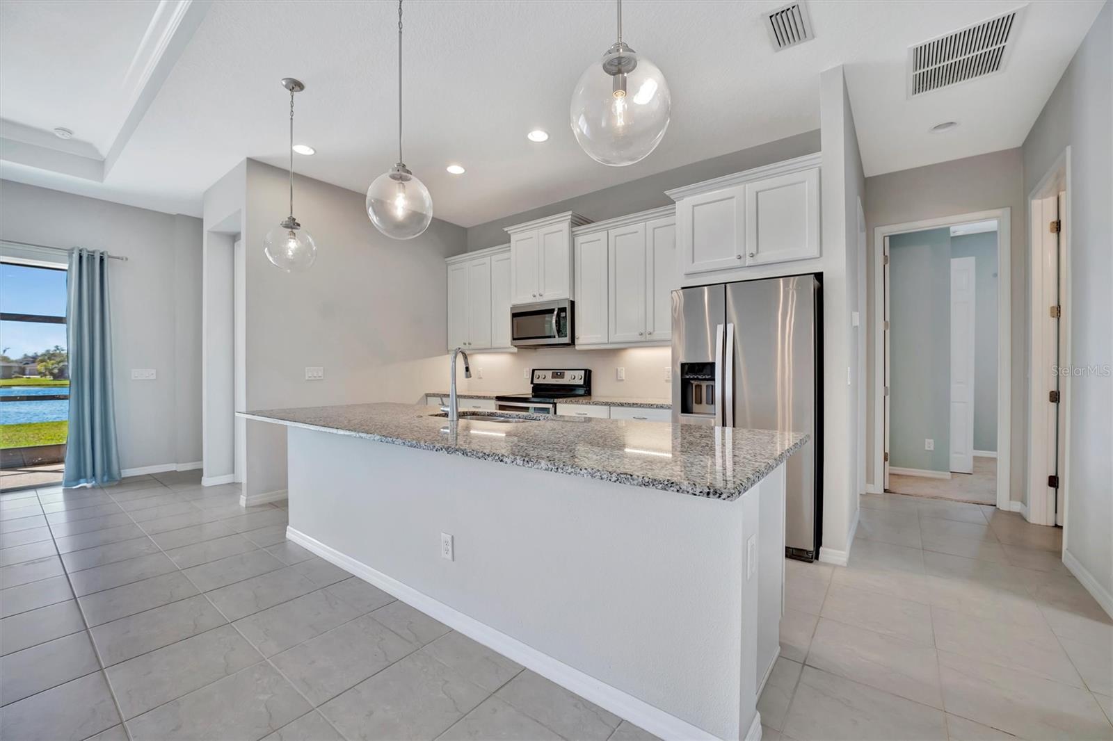 Bem-vindo a esta casa deslumbrante na desejável comunidade de Cross Creek em Parrish, Flórida. Esta moderna casa de 3 quartos e 2 banheiros de inspiração costeira oferece 1.521 pés quadrados de espaço elegante, perfeita para quem busca conforto e design contemporâneo. A planta aberta combina perfeitamente as áreas de estar, jantar e cozinha, criando um espaço luminoso e arejado, ideal para relaxar e se divertir. Lindos pisos de cerâmica fluem por toda a sala principal, adicionando um toque de elegância e fácil manutenção. A cozinha é o sonho de qualquer chef, com bancadas elegantes, uma ilha enorme, armários modernos e eletrodomésticos de aço inoxidável de alta qualidade. A espaçosa suíte master é um verdadeiro retiro, completa com closet e um luxuoso banheiro privativo com pia dupla e box amplo. Dois quartos adicionais de bom tamanho oferecem amplo espaço para a família, convidados ou um escritório doméstico. Saia para a varanda dos fundos e desfrute de vistas serenas para o mar, equipadas com um pôr do sol espetacular. O cenário e espaço perfeito para relaxar após um longo dia ou realizar reuniões ao ar livre. O encanamento foi pré-instalado para instalar sua cozinha externa e bar. Quando não estiver no conforto da sua casa, você também pode desfrutar de comodidades excepcionais, incluindo uma piscina estilo resort com raias e toboágua, um splash pad e uma área de playground para os mais pequenos. Mantenha-se ativo com uma quadra esportiva de basquete completa, proporcionando diversão para todos da família. Localizada na muito procurada comunidade de Cross Creek, esta casa oferece um ambiente sereno e ao mesmo tempo perto de tudo o que Parrish tem a oferecer. Não perca a oportunidade de tornar esta linda casa sua - agende hoje mesmo seu tour privado! Uma (ou mais) fotos foram virtualmente encenadas.
