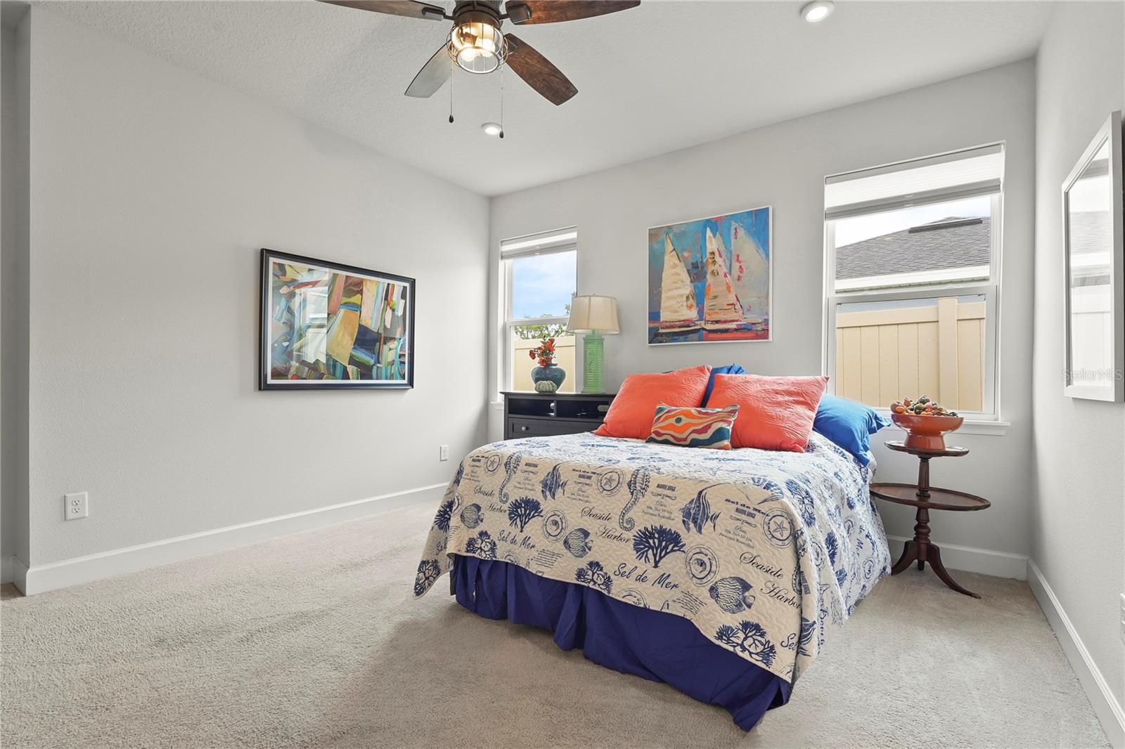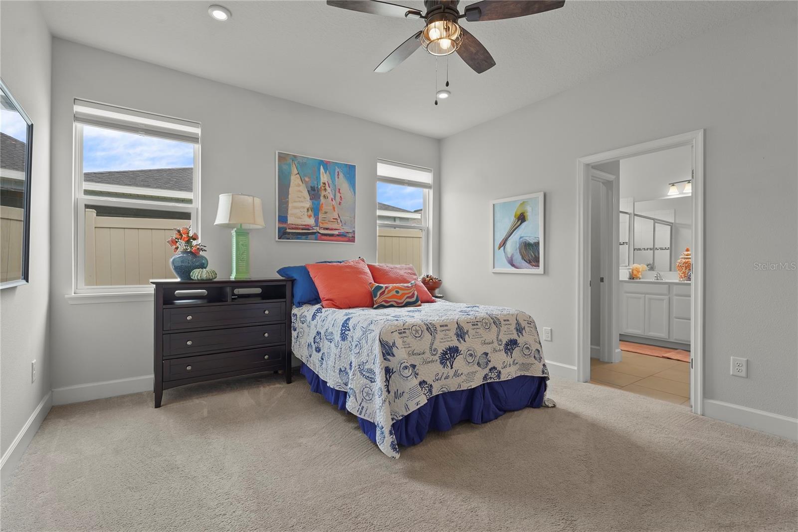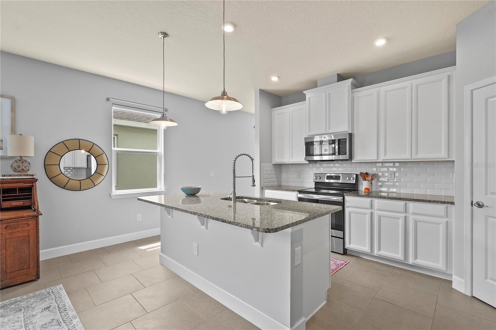 Bem-vindo a esta casa lindamente atualizada de três quartos e dois banheiros na comunidade de Summerwoods, procurada. Com uma planta baixa e arejada com tetos altos de 9'4 ", esta casa é projetada para conforto e estilo. A espaçosa grande sala flui perfeitamente para a área de jantar e cozinha, onde você encontrará bancadas de granito deslumbrantes, uma grande ilha central, ladrilho de ladrilho, backsplash de 42”, para a cozinha e a lavanderia. A iluminação pendente elegante adiciona um toque elegante, enquanto a iluminação embutida na sala de estar e no quarto principal aprimora a atmosfera brilhante e acolhedora. A tinta interior fresca, junto com as portas de frente e lavanderia recém -pintadas, dá à casa uma sensação moderna e nítida. A suíte do proprietário oferece um retiro sereno com um grande closet e um banho de banho com vaidades duplas, bancadas de corian atualizadas e paredes de chuveiro e banho de azulejos. Dois quartos adicionais compartilham um banheiro completo bem equipado, proporcionando muito espaço para a família ou os hóspedes. This home is packed with thoughtful upgrades, including durable tile flooring in the living and dining areas set in a stylish brick pattern, complemented by an upgraded trim package with 5 1/4" baseboards and nickel lever lock door handles. Stay comfortable year-round with ceiling fans in every room, including the covered lanai. The pre-wired HDMI, Ethernet/internet cables, and additional power plugs in the living room and master bedroom make it easy to Fique conectado. Saia até a Lanai coberta e aproveite a privacidade de um quintal totalmente cercado com uma cerca de 6 'de vinil, perfeita para reuniões ao ar livre ou noites relaxantes. A garagem oferece conveniência extra com uma pia de utilidade, dois racks de armazenamento pendurados de 4'x8 'e tomadas externas extras. As atualizações adicionais incluem novos alarmes de fumaça com fio, câmeras de segurança externa de alta qualidade e persianas personalizadas em toda a casa para o equilíbrio perfeito de luz e privacidade. Summerwoods é uma comunidade de estilo resort que oferece uma piscina comunitária, bloco de respingos, playground, trilhas cênicas e um parque de cães dedicado. Localizada perto da I-75 e 301, esta casa oferece fácil acesso a Tampa, St. Pete, Sarasota e favoritos locais como Anna Maria Island e Ellenton Premium Outlets. Experimente a mistura perfeita de luxo, conveniência e vida moderna - procure sua turnê privada hoje e faça deste lar excepcional o seu!
