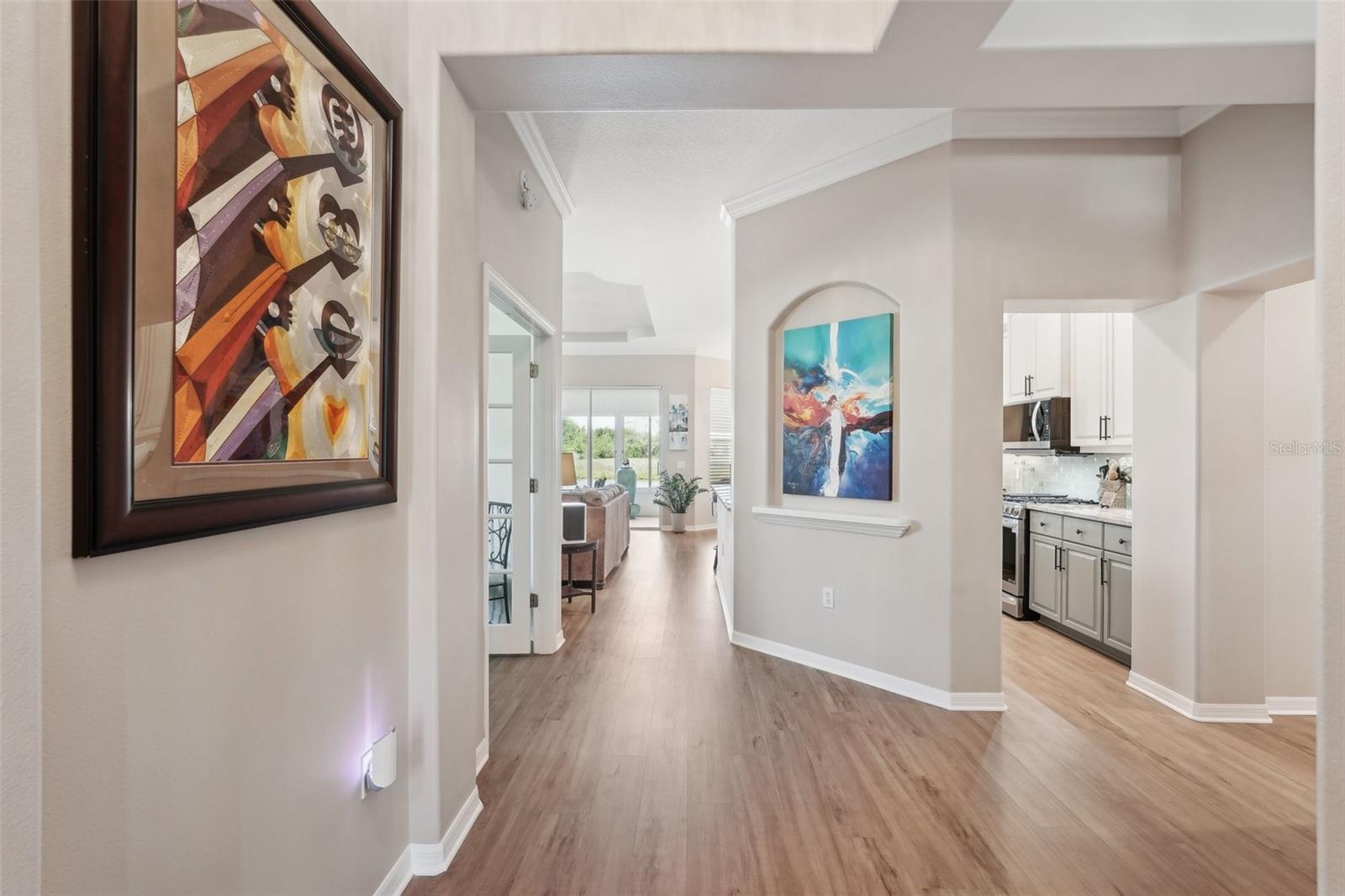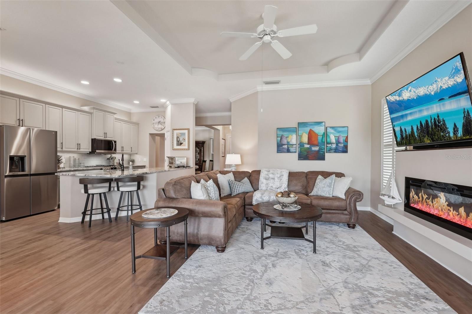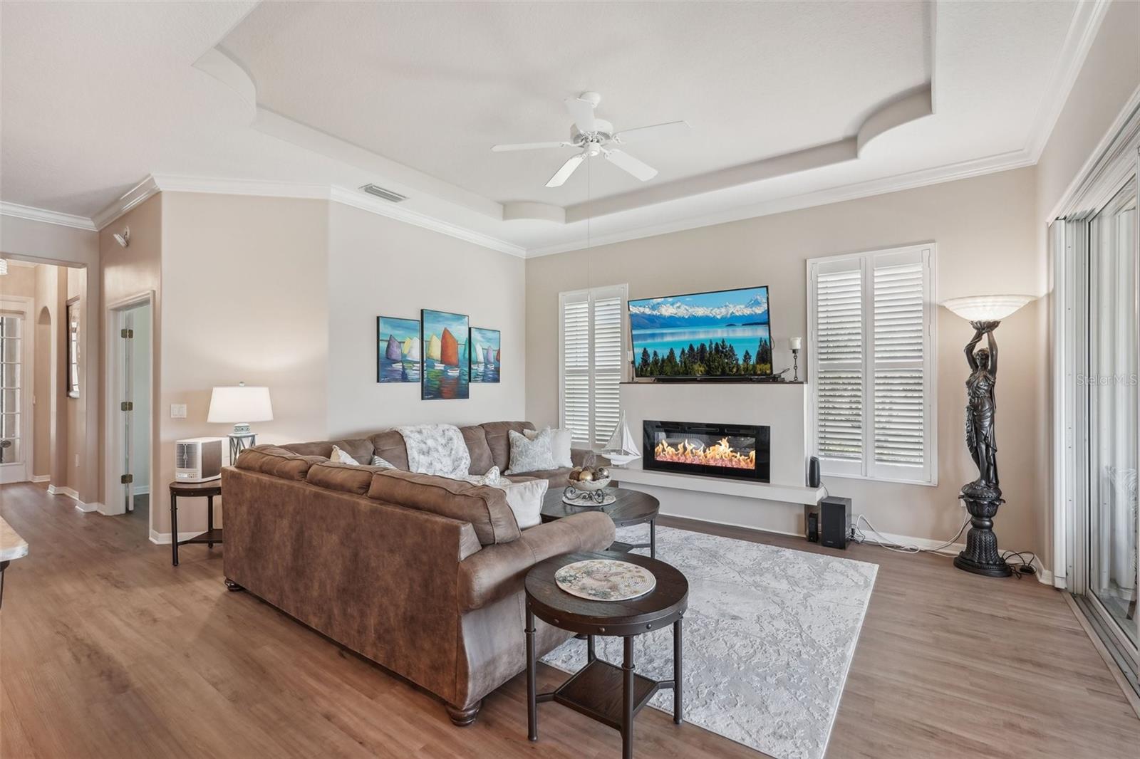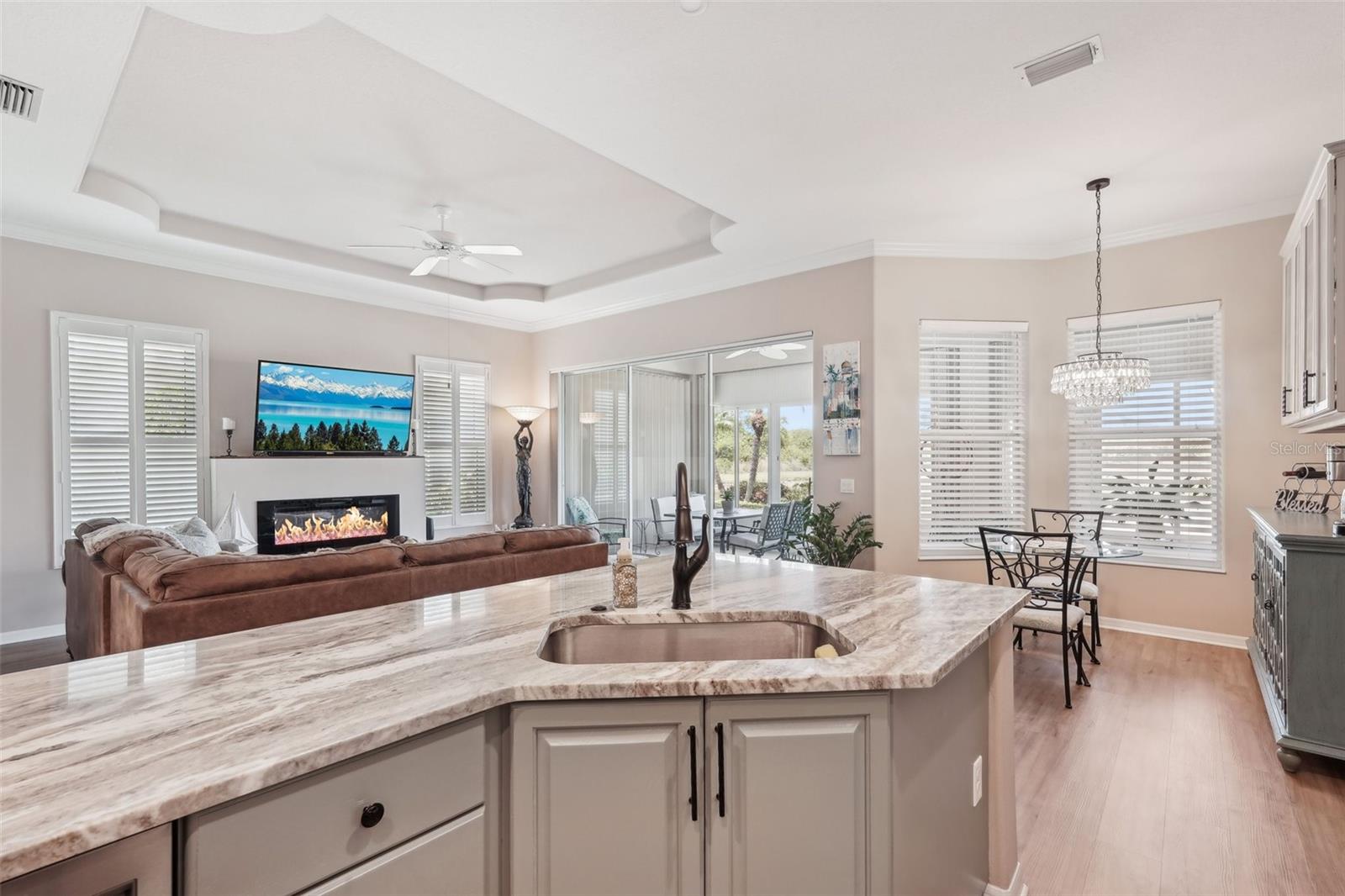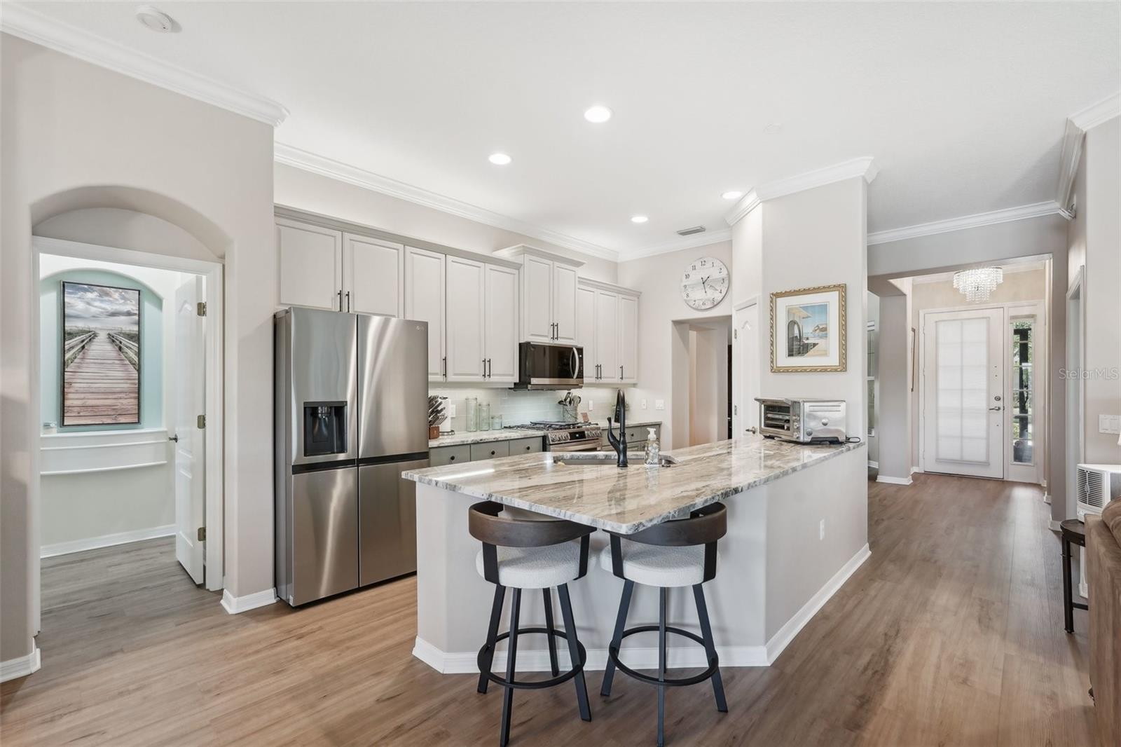 Bem-vindo à sua lindamente remodelada Villa de 2 quartos e 2 banheiros com um escritório que possui portas francesas perfeitas que levam a uma entrada expandida. Persianas de plantações por toda parte. Lanai de 3 temporadas que pode ser fechada durante uma tempestade. Privacidade total do quintal com vista para uma lagoa e preservação. A área de estar principal possui uma lareira elétrica que beleza e controle de calor. Mantle construído personalizado acima da lareira. - onde o estilo, o conforto e a natureza se reúnem perfeitamente. Nenhum detalhe foi negligenciado nesta reforma completa, desde os banheiros completamente atualizados com ladrilhos italianos até o novo piso de vinil de luxo que flui por toda a casa. O coração da casa é uma cozinha moderna e deslumbrante, com novos aparelhos, armários personalizados, bancadas em granito e hardware elegante. Build-ins consideradamente projetado e uma lareira elétrica personalizada adicionam calor e caráter à espaçosa área de estar. Cada quarto foi pintado recém -pintado, criando uma sensação brilhante e coesa por toda parte. O banheiro principal do quarto principal é novo e o chuveiro é um de cada tipo . O banho principal é impressionante. Existem 2 armários no mestre para uma grande quantidade de armazenamento. Entre na marquise com ar-condicionado e aquecido, uma extensão perfeita do espaço que oferece conforto o ano todo e vistas espetaculares. A sala de estar, o quarto primário e a marquise mostram uma vista serena e privada do lago tranquilo e do espaço verde atrás da casa - tornando esta casa um verdadeiro retiro. Esta villa pronta para se mover combina a elegância atemporal com a funcionalidade moderna, fornecendo o cenário ideal para uma vida pacífica e um entretenimento sem esforço. Esta casa foi construída para durar. Este construtor projetou uma casa de concreto sólido que resistiu a todos os últimos anos tempestades inundações de tempestades. Venha experimentar por si mesmo - você se sentirá em casa no momento em que atravessa a porta.