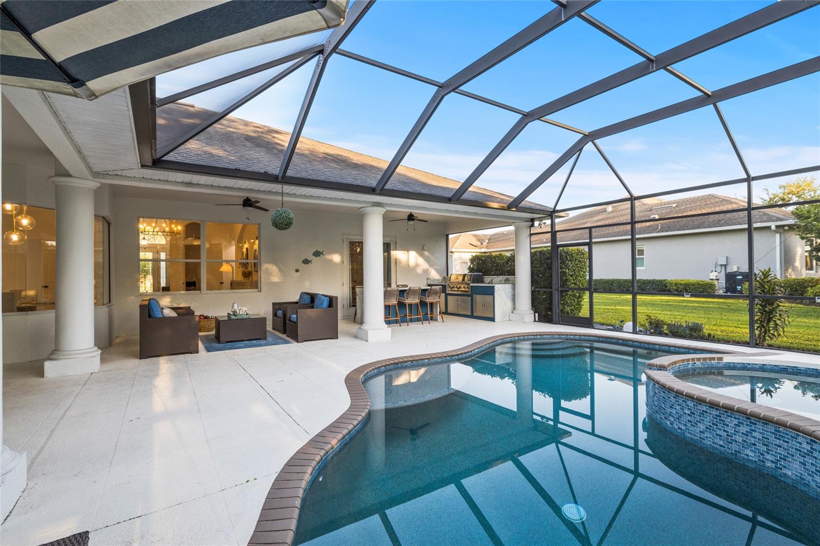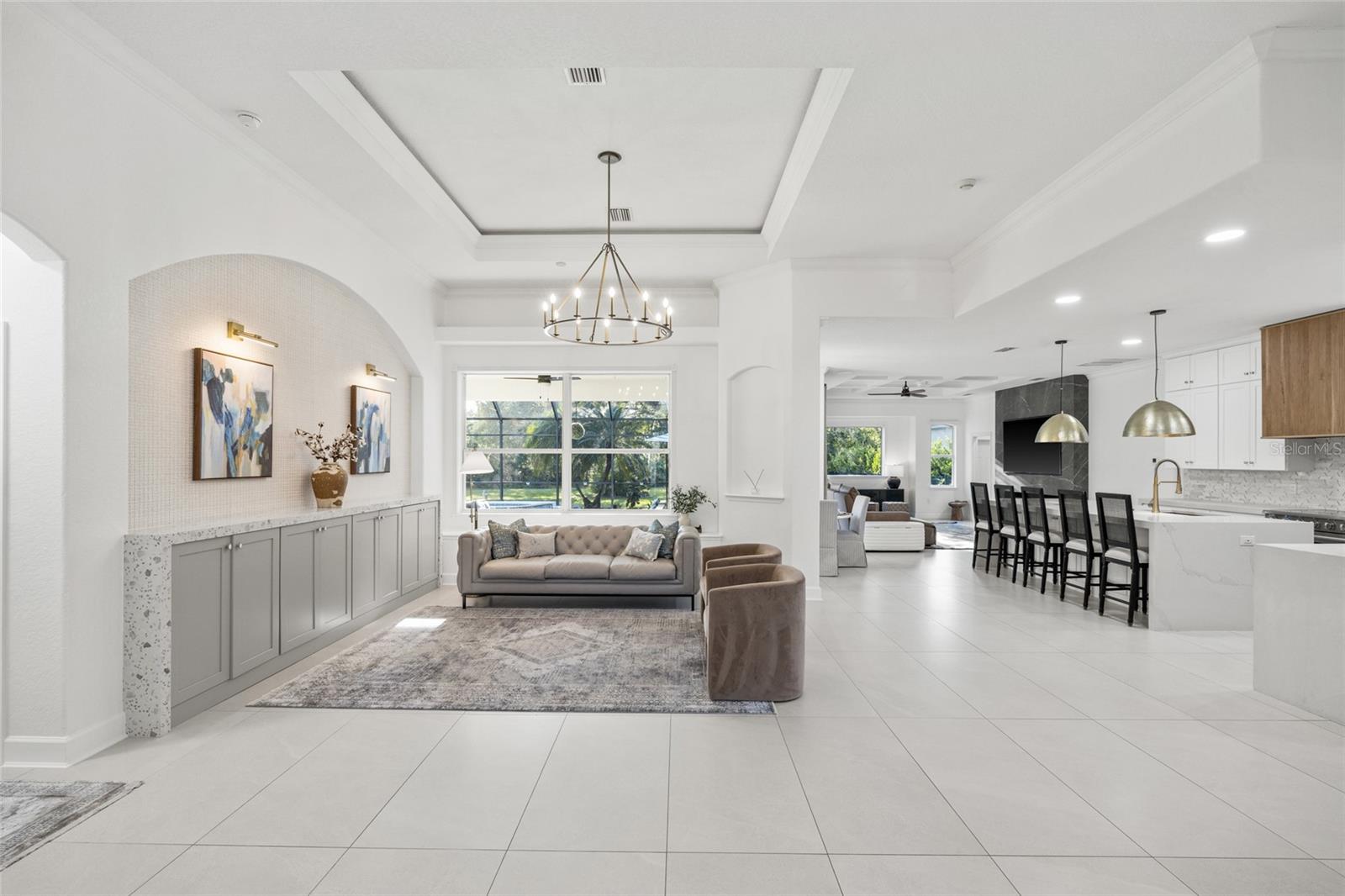Entre em um mundo de luxo incomparável com esta propriedade extraordinária, completamente remodelada em 2023 para atender aos mais altos padrões de design e artesanato. Todo detalhe desta propriedade impressionante exala sofisticação, tornando -a um verdadeiro marco de vida elegante. Ao entrar, você está instantaneamente envolvido em uma atmosfera de grandeza. A sala de estar formal oferece um cenário perfeito para o seu piano de cauda, aprimorando a elegância e o charme da casa. No coração desta residência está a magnífica cozinha do chef, com bancadas magníficas de quartzo em cachoeira que se curvam elegantemente em uma ilha espaçosa, convidando até cinco convidados a se reunirem. Equipado com aparelhos Thor de primeira linha, uma geladeira de vinho, um exaustor embrulhado em carvalho personalizado, um backsplash de mármore em espinha de peixe e luminárias de grife, esta cozinha foi projetada para elevar experiências culinárias a reuniões sociais agradáveis para familiares e amigos. O fluxo contínuo da cozinha para a sala cativa com seu design de tirar o fôlego. Uma impressionante placa de porcelana do chão ao teto ancora a sala, completa com uma lareira embutida e um centro de entretenimento. Os requintados tetos de madeira e bandeja iluminada mesclaam estilo e conforto, criando um cenário perfeito para relaxamento e entretenimento vibrante. Quando é hora de relaxar, a suíte do proprietário serve como seu santuário pessoal. Este retiro tranquilo apresenta sua própria lareira e luxuosos pisos de prancha de vinil, levando a um armário de sonho adornado com armários personalizados, oferecendo 360 graus de armazenamento - ideais para mostrar seu guarda -roupa. O banheiro privativo do tipo spa transforma o relaxamento em uma forma de arte, com bancadas duplas de quartzo dupla, uma banheira espaçosa e um chuveiro embelezado com ladrilhos deslumbrantes do chão ao teto. Para entretenimento, a área de estar ao ar livre é simplesmente de tirar o fôlego. Abra os controles deslizantes expansivos para mesclar espaços internos e externos harmoniosamente. O Lanai é o sonho de um artista, com uma cozinha ao ar livre a gás com belos balcões de mármore, uma grelha, uma pia, uma geladeira e um amplo armazenamento. Envie os jantares da família na Ilha Quartz, que acomoda confortavelmente seis, enquanto desfruta do feliz ar da primavera. Após o jantar, mergulhe na sua piscina e spa recém -ressaltada, completando a experiência do relaxamento final. Situado em quase três quartos de um hectare, esta propriedade fornece uma fuga serena, envolvida pela beleza da natureza. Recursos adicionais notáveis incluem uma espaçosa garagem de 3 carros, um sistema de alto-falantes para casa, persianas motorizadas, banheiros totalmente atualizados, três quartos adicionais, um espaço de escritório generoso, uma garagem de pavimentação e um novo telhado em breve, juntamente com inúmeros outros aprimoramentos. Aninhado na comunidade de Twin Rivers, que oferece taxas baixas de HOA e sem taxas de CDD, esta propriedade fornece acesso exclusivo a uma rampa de barco fechado que leva ao rio peixe -boi, uma casa do rio comunitário, duas docas, basquete e quadras de vôlei, um campo de futebol, vários playgrounds, lagos serenos e trilhas da natureza - em espera para explorar! Não perca a chance de reivindicar a casa dos seus sonhos - faça uma exibição hoje e abraça o estilo de vida luxuoso que você sempre desejou!