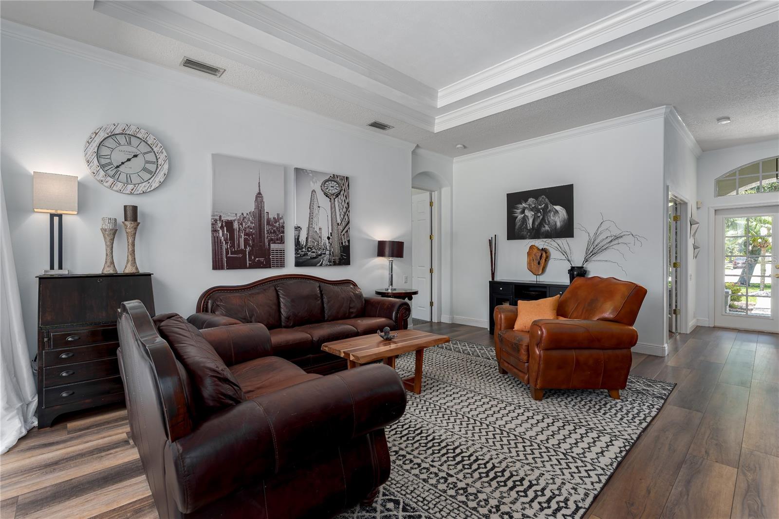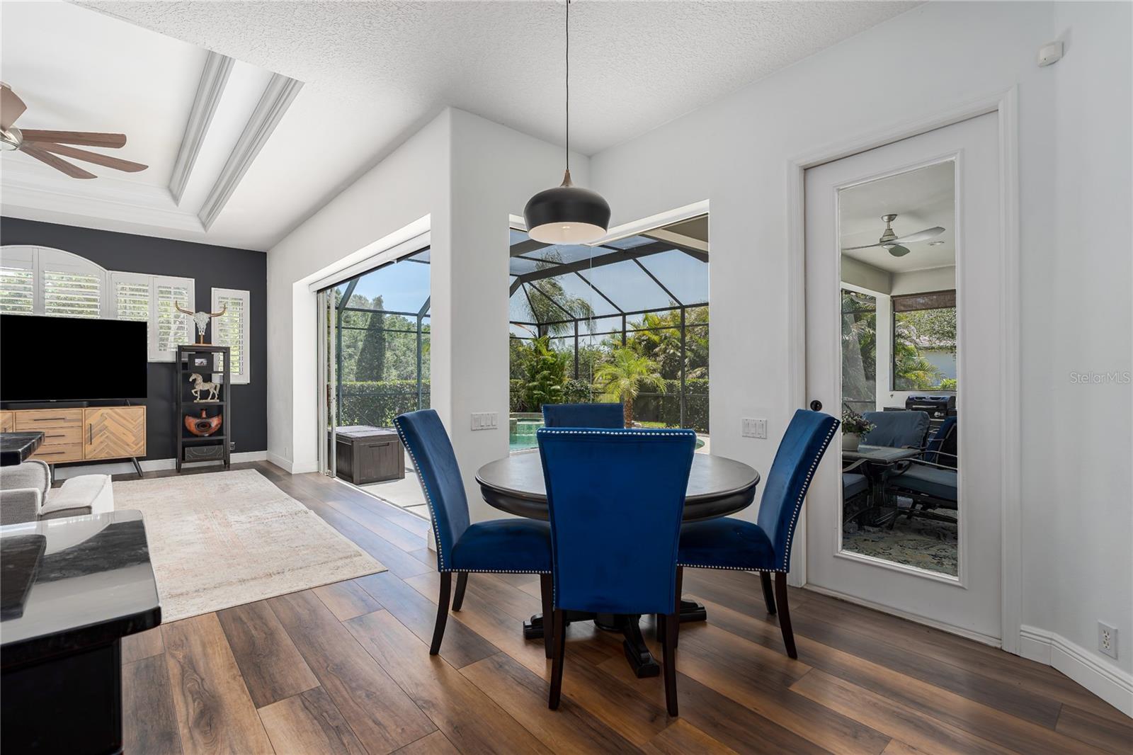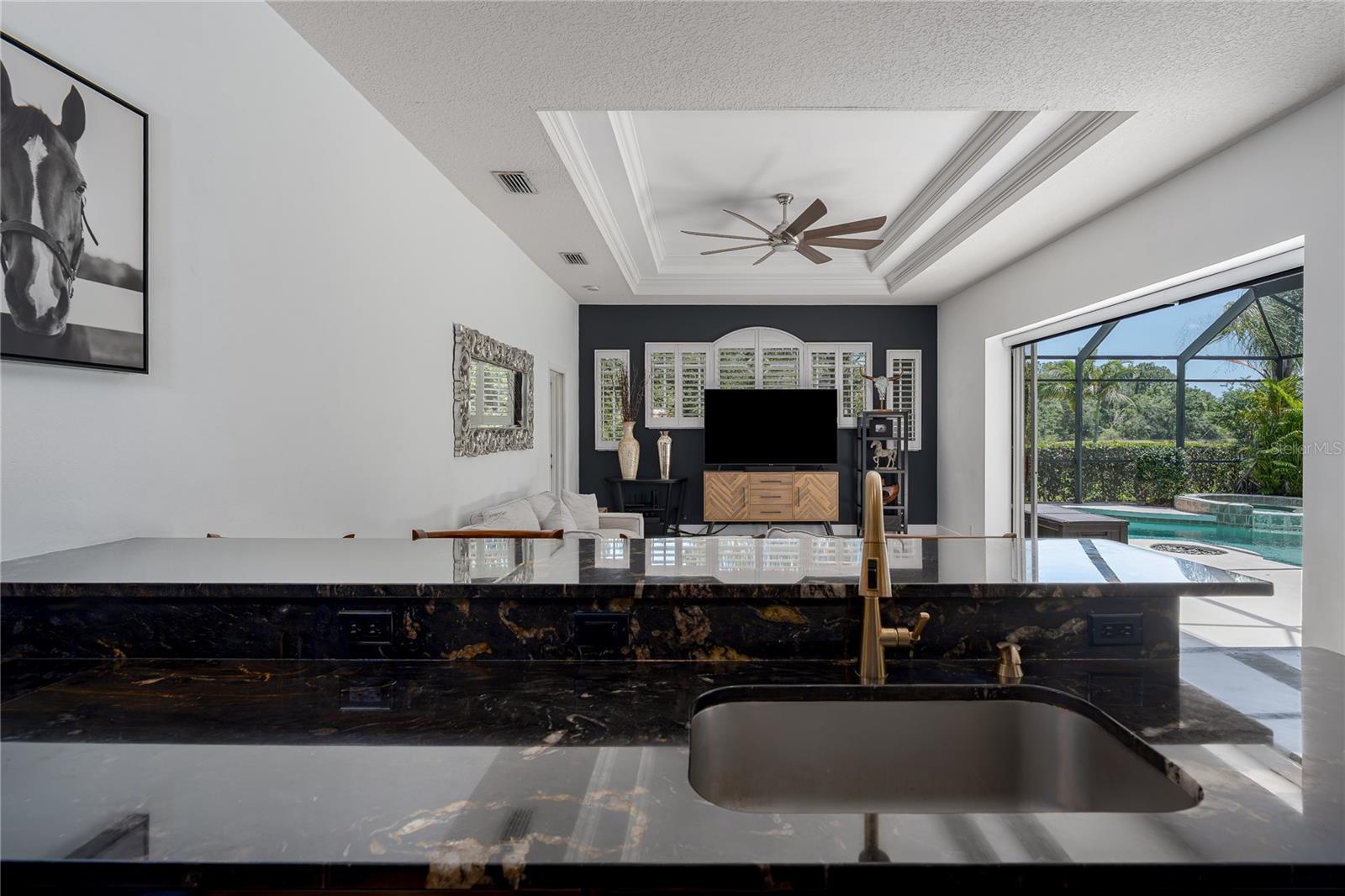 Aninhado em um lote de 0,72 acres, com vistas deslumbrantes de reserva e água, esta espetacular e espaçosa jóia contemporânea, projetada e construída pelo construtor personalizado local Arthur Rutenberg, permanece como um testemunho da elegância, design inovador e qualidade. Construído em 2004, a casa possui uma planta baixa que combina perfeitamente a vida interna e externa. Esta propriedade extraordinária possui excelente apelo ao meio-fio, garagem de três carros de entrada lateral com armazenamento no sótão e uma garagem ampla. O exterior foi recentemente pintado em 2020, telhado 2022 e HVAC 2017. Ao entrar em casa, observe a requintabilidade de portas arqueadas, nichos de arte decorativos, tetos de bandeja dupla, moldagem por coroa e tetos de 10 pés. A planta baixa possui 4 quartos, 3 banheiros, um escritório, refeições formais e salas de estar. As atualizações recentes incluem novos pisos de vinil de luxo em todas as áreas de estar e carpete novo nos quartos, banheiros de piscina e hóspedes totalmente atualizados, incluindo novos pisos, ladrilhos, pias e hardware, portas de chuveiro de vidro, banheiros e iluminação. O Lanai foi repintado, é encantado para uma cozinha ao ar livre, uma nova iluminação em todos os quartos e a lavanderia tem uma nova pia, bancada e hardware. A cozinha é uma delícia de chef com novos utensílios de aço inoxidável pretos, fornos duplos, bancadas de pedra, armários de madeira, muito espaço de balcão e uma ilha para uma área adicional de preparação de alimentos. A jantar com uma janela de aquário tem vista para a área da piscina. A enorme sala da família tem acesso direto à área da piscina através de controles deslizantes de bolso que possuem novas persianas motorizadas. Ao lado da sala da família, há um grande quarto privado ou uma suíte de sogro/adolescente com banho completo e entrada privada. Ele também serve como o banho de piscina. A planta oferece amplo espaço para relaxar e se divertir formalmente nas salas de jantar e de estar e trabalhar em casa no escritório particular. O quarto principal é enorme, tem acesso privado à área da piscina e apresenta pias duplas, cano de entrada, banheira de jardim e chuveiro separado. Esta bela casa oferece uma experiência de vida incomparável, combinando beleza estética com atualizações práticas. Suas características únicas e melhorias recentes o tornam uma propriedade de destaque em Twin Rivers. A subdivisão de Twin Rivers oferece aos moradores recuperaram água para irrigação, um lançamento de barco particular para o rio Manatee, prateleiras de caiaque/canoa, parque comunitário, mesas de piquenique, doca de pesca, quadra de basquete, vôlei, futebol e playground. As taxas HOA são razoáveis e não há CDD. Programe sua exibição particular em breve!