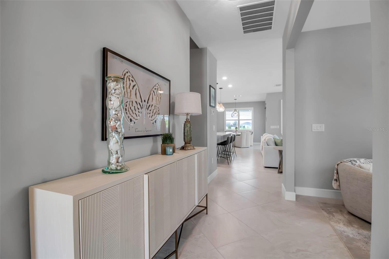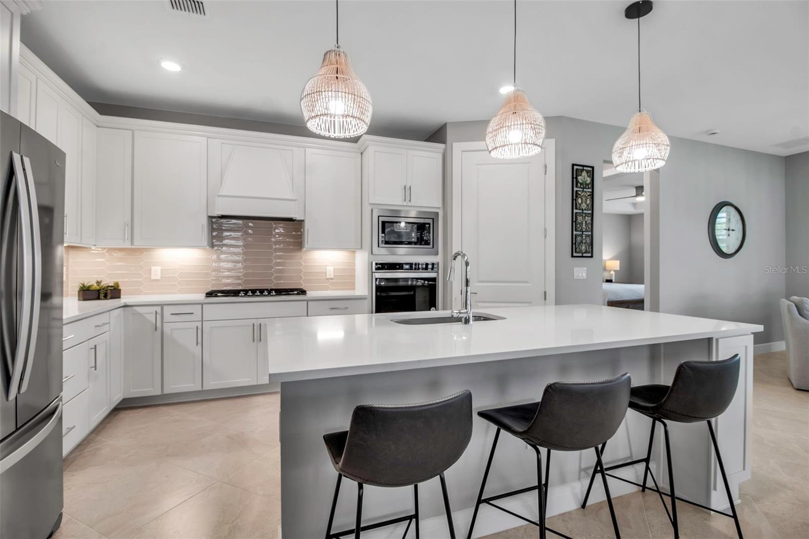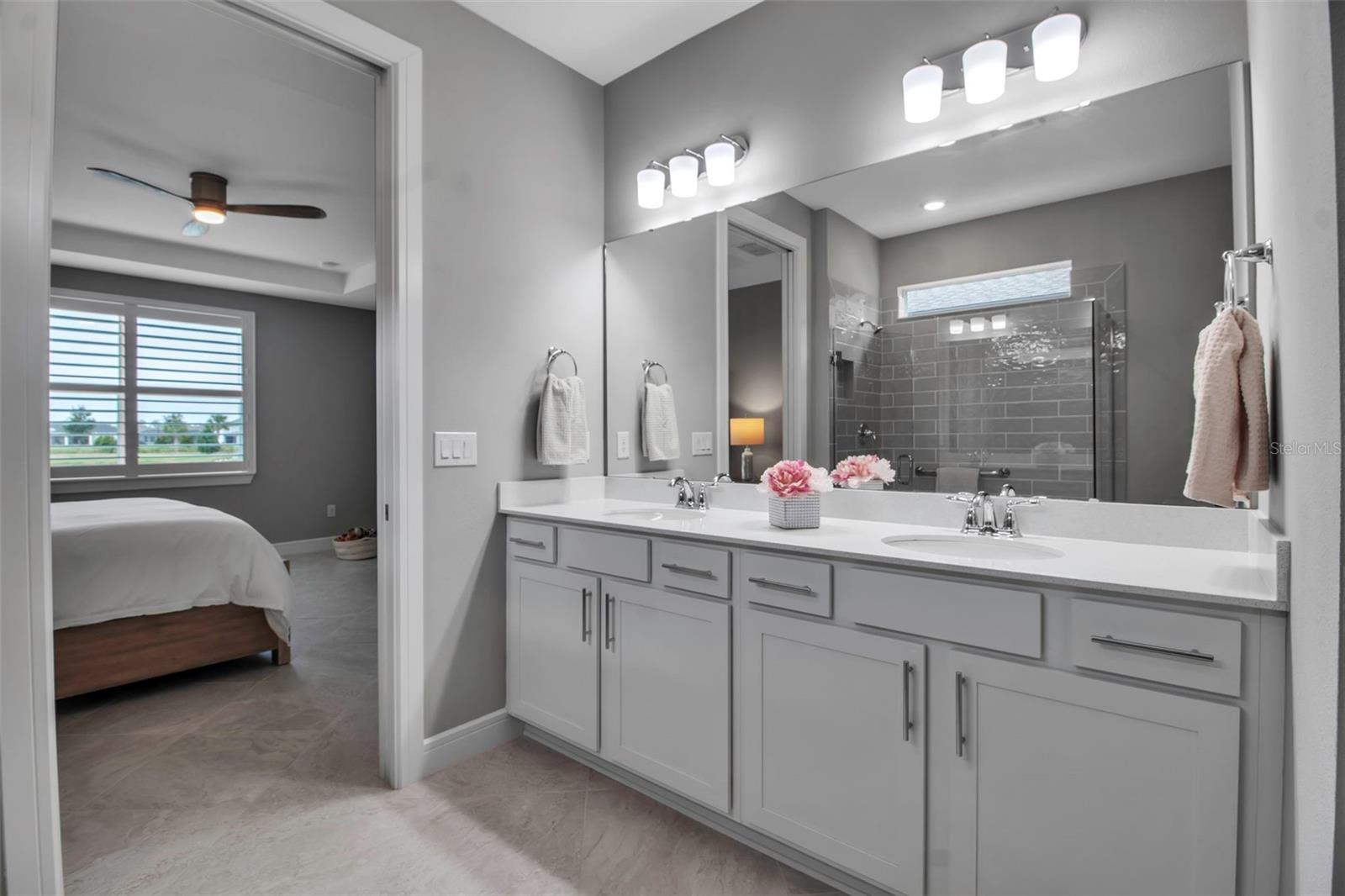 Esta casa cuidadosamente habitada e meticulosamente cuidada em Del Webb Bay View já está disponível. O primeiro andar apresenta a muito procurada planta Mystique, que inclui um quarto de hóspedes completamente separado e um quarto principal, uma lavanderia espaçosa, um espaço flexível e um espaço aberto com sala de reuniões, área de café e cozinha do chef. A casa possui piso de cerâmica em todo o primeiro andar e venezianas em todas as janelas. As escadas e o segundo andar são acarpetados com estofamento atualizado para maior conforto. O andar de cima surpreende com um terceiro quarto privativo, banheiro completo e espaço adicional perfeito para vários arranjos de móveis ou brinquedos. Ao ar livre, a varanda voltada para o norte oferece vistas deslumbrantes do céu e do lago. A casa também está pré-instalada e pré-instalada para uma piscina. A garagem inclui espaço para carrinho de golfe, oficina ou arrumação extra, tornando a planta Mystique ainda mais desejável. Del Webb Bay View é um condomínio fechado localizado a menos de três quilômetros da interestadual, com acesso conveniente às praias, três aeroportos, lojas e à crescente área de Parrish com duas lojas Publix. Dentro da comunidade, os residentes podem desfrutar de comodidades de resort, incluindo pickleball, bocha, tênis, shuffleboard, academia, piscina ampla, banheira de hidromassagem, piscina olímpica, cabanas, horta comunitária, dois parques para cães e um restaurante no local. Existem também vários clubes e atividades para os residentes desfrutarem.