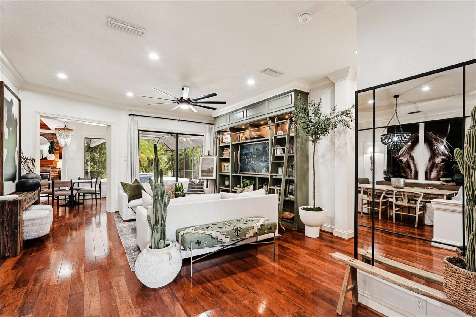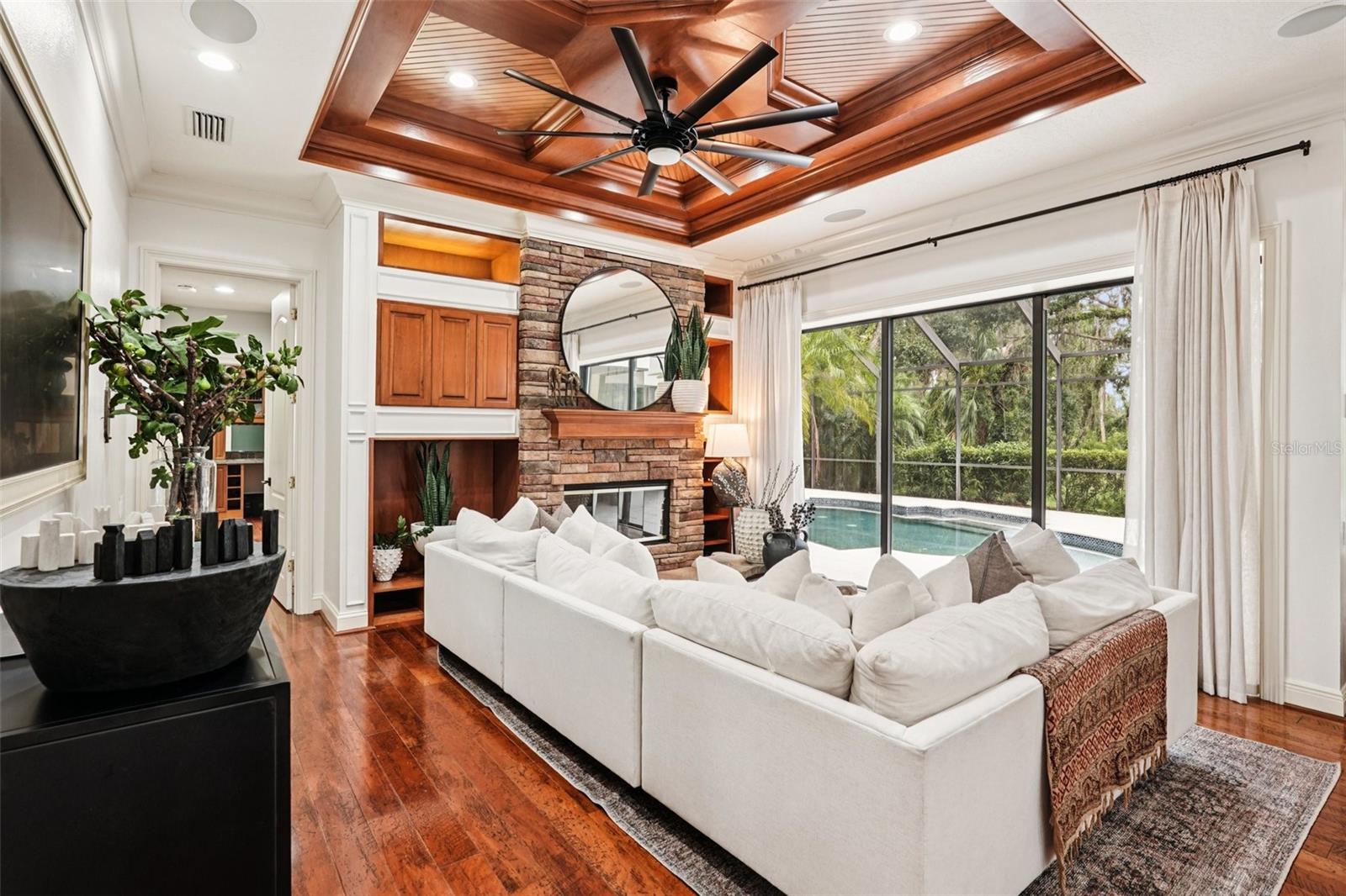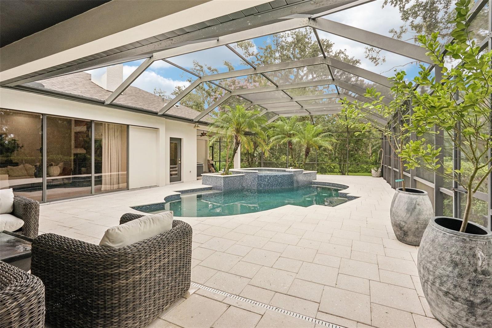 Bem-vindo a este ex-modelo Showstopper, uma casa de Arthur Rutenberg, construída personalizada, que é realmente única! Esta residência impressionante possui 5 quartos, 3 banheiros, escritório, sala de bônus e uma bela piscina e spa, todos situados em um hectare de terra. A casa possui detalhes requintados por toda parte, incluindo uma cozinha gourmet remodelada equipada com lindas bancadas de quartzo e ilha, acessórios e iluminação totalmente novos e um cooktop de indução de ponta. Os armários de madeira reais de cor clara com gavetas e portas de close suave adicionam um toque de elegância. Entre as muitas características incríveis, você encontrará uma lareira de pedra encantadora, tetos embutidos de madeira, tetos de bandeja, INS personalizados e belos pisos de madeira, criando uma atmosfera quente e convidativa. Esta casa espetacular oferece muito espaço fabuloso, perfeito para divertir amigos e familiares. O espaçoso quarto principal inclui um closet de grandes dimensões, proporcionando amplo armazenamento. A sala de bônus, completa com embutidos, é perfeita para um escritório ou espaço de jogo. O quarto de hóspedes apresenta um closet. Cercado por belas árvores, esta casa oferece um alto grau de privacidade. Desfrute da extensa Lanai estendida com uma cozinha ao ar livre, perfeita para entretenimento, juntamente com uma piscina e spa grandes para relaxar. Como parte da comunidade de Twin Rivers, você terá acesso privado ao rio, juntamente com campos de basquete, vôlei e futebol. Com belas trilhas para caminhada pela natureza, taxas baixas de HOA e sem CDDs, esta casa notável é o lugar perfeito para desfrutar de um estilo de vida pacífico e ativo. Não perca a oportunidade de tornar este próprio requintado em casa!