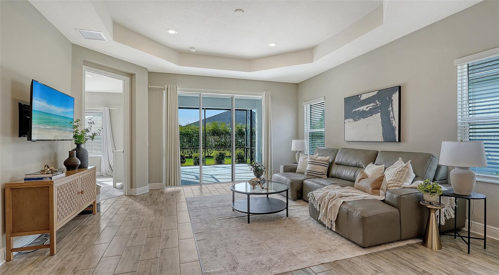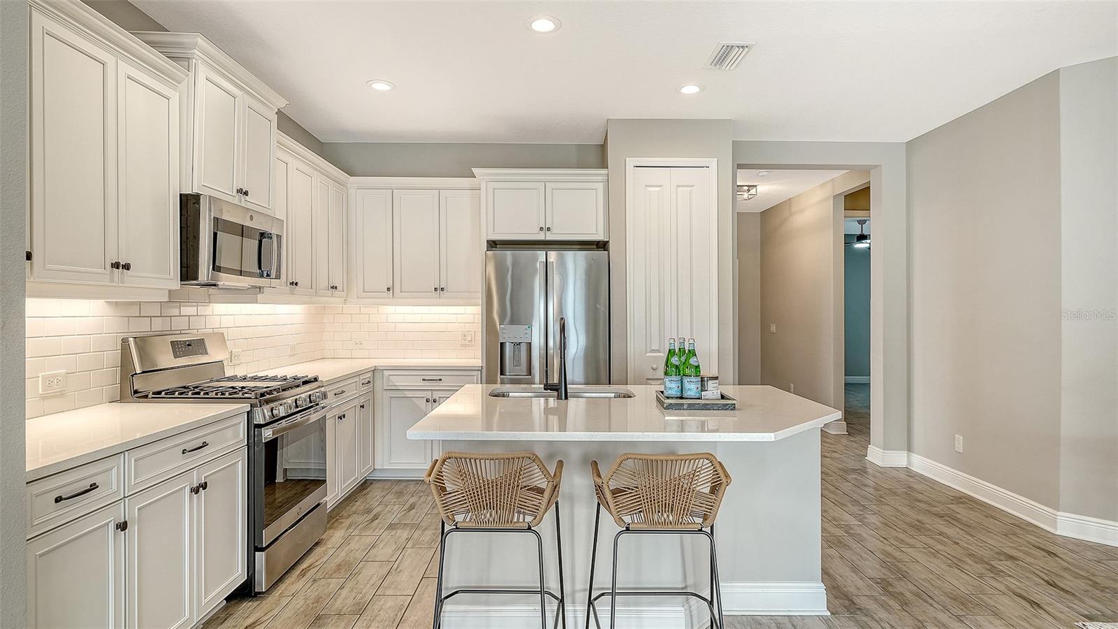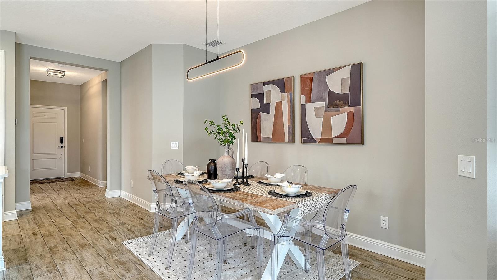 Descubra o epítome da elegância nesta villa lindamente brilhante, posicionada em um lote interior premium com o lago sereno e vistas exuberantes de paisagismo. Construído pelas comunidades Neal, esta vila está em uma nova condição e exala charme com sua madeira como telha e tetos de 9'4 "adornados com portas de 8 pés. A área de estar apresenta tetos divididos que aumentam a sensação espaçosa da planta baixa. Ao entrar, as portas duplas o levam a uma cova de azulejos, perto do vestíbulo, perfeita para um escritório em casa ou um retiro aconchegante. A cozinha e os banheiros possuem continuidade com bancadas e armários de quartzo branco, complementados por bronze da moda e luminárias negras e ventiladores. A suíte do proprietário é um verdadeiro santuário, oferecendo dois armários, incluindo um generoso walk-in, vaidades separadas duplas e um chuveiro lindamente azulejo. O segundo quarto também possui um ventilador de teto e um armário para armazenamento amplo. Desfrute de uma vida ao ar livre no lanai estendido e rastreado equipado com uma conexão de gás para o seu prazer de grelhar. Canoe Creek oferece aos residentes comodidades exclusivas, incluindo duas piscinas- uma com uma banheira de hidromassagem, área de grelhar e cozinha ao ar livre a poucos passos da seção da vila. O condomínio fechado também possui um grande centro comunitário perfeito para hospedar eventos, uma fogueira, quadras de pickleball, um parque de cães e um coordenador de eventos em tempo integral. Os membros da vila se beneficiam da manutenção externa e da corte de gramado, libertando você para adotar o estilo de vida sem manutenção. Localizado na área vibrante de Parrish, você está a poucos minutos das compras, refeições, academias e lojas, com viagens fáceis para São Petersburgo, Tampa e Sarasota. Venha experimentar a mistura perfeita de luxo e conveniência nesta impressionante vila.