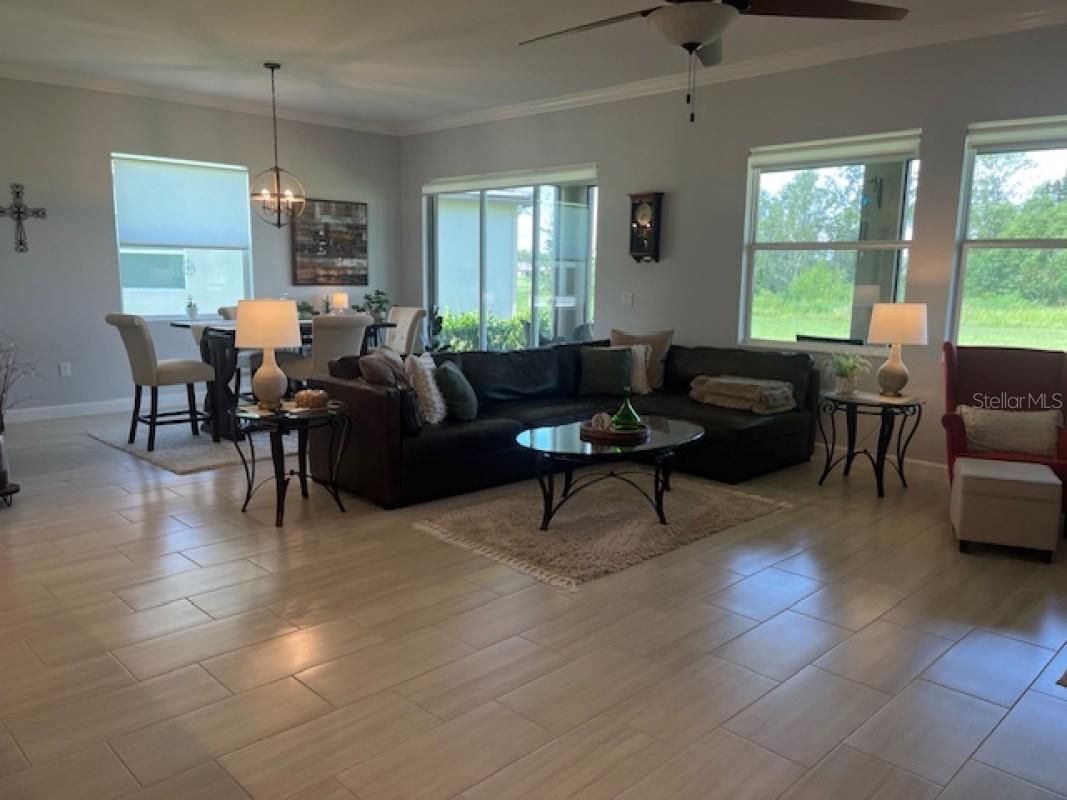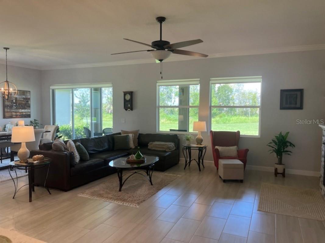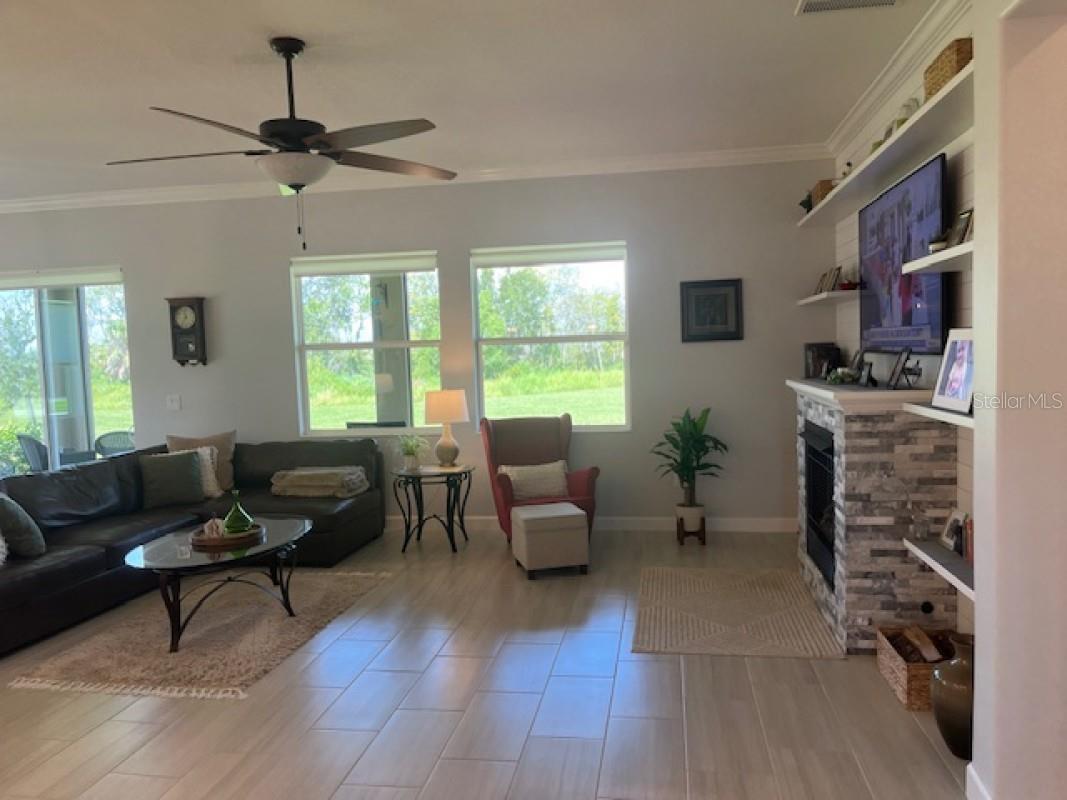 Esta casa de 2218 SF em um lote premium está se movendo pronta e tem todas as atualizações personalizadas que realmente a diferenciam. Bem -vindo a este lar executivo em Prosperity Lakes Parrish. Esta casa possui a vida contemporânea nesta bela comunidade adulta ativa, onde a diversão nunca termina. Construído em 2023, esta casa oferece 2 quartos e 2,5 banheiros com espaço flexível para tornar essa planta aberta com vista para a conservação da natureza um lugar para relaxar e desfrutar. A cozinha é elegante e funcional, com bancadas de quartzo, uma ilha espaçosa com iluminação pendente, uma despensa de grande tamanho personalizada, backsplash de designer completo por toda parte. A sala da família tem uma lareira a gás personalizada com prateleiras flutuantes, criando um belo centro de entretenimento. Azulejo de cerâmica em toda a casa com piso de bambu nos quartos. Também moldagem por coroa e cantos de drywall de touros em toda a casa. O espaço ao ar livre é ideal para divertir dia ou noite, com o Lanai exibido com piso de pavimentação e a área de conservação. Toques acentuados adicionais incluem uma garagem de 2 carros com armazenamento no sótão que não há escadas necessárias e uma garagem prolongada. Viver em medley significa acesso a comodidades incomparáveis, incluindo um clube particular com uma piscina aquecida no estilo resort, bar à beira da piscina e café, salão de baile, cartas e quartos de bilhar, fitness center, pickleball, tênis, quadras de bocha, parque de cães e muito mais. A comunidade é amigável com carrinho de golfe, com internet de alta velocidade, atendimento ao gramado e pintura exterior, tudo incluído nas taxas do HOA.